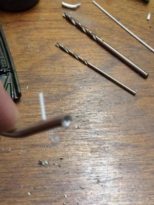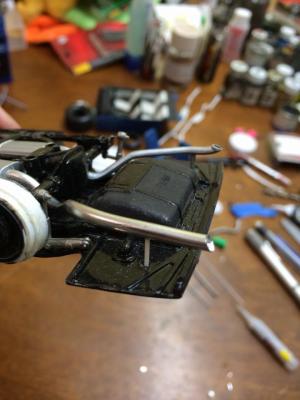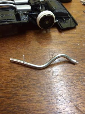 Here ya go. I used silver solid core lead free solder. 3mm which is about the same as 3 inch tailpipes in scale. Roughly bent it up same as stock pipe. Drilled the slash cut end. I would paint that black inside if it were on a model. Measured where kit hole was for mount and figured out length. Added a pin to mount in muffler. Took me 10 mins tops.