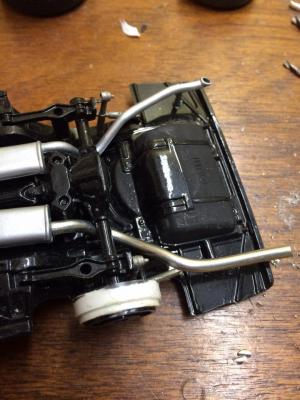 I make the over axle part out of solder and polish it. Make a hangar where the hole is in the chassis like the 1:1 has
