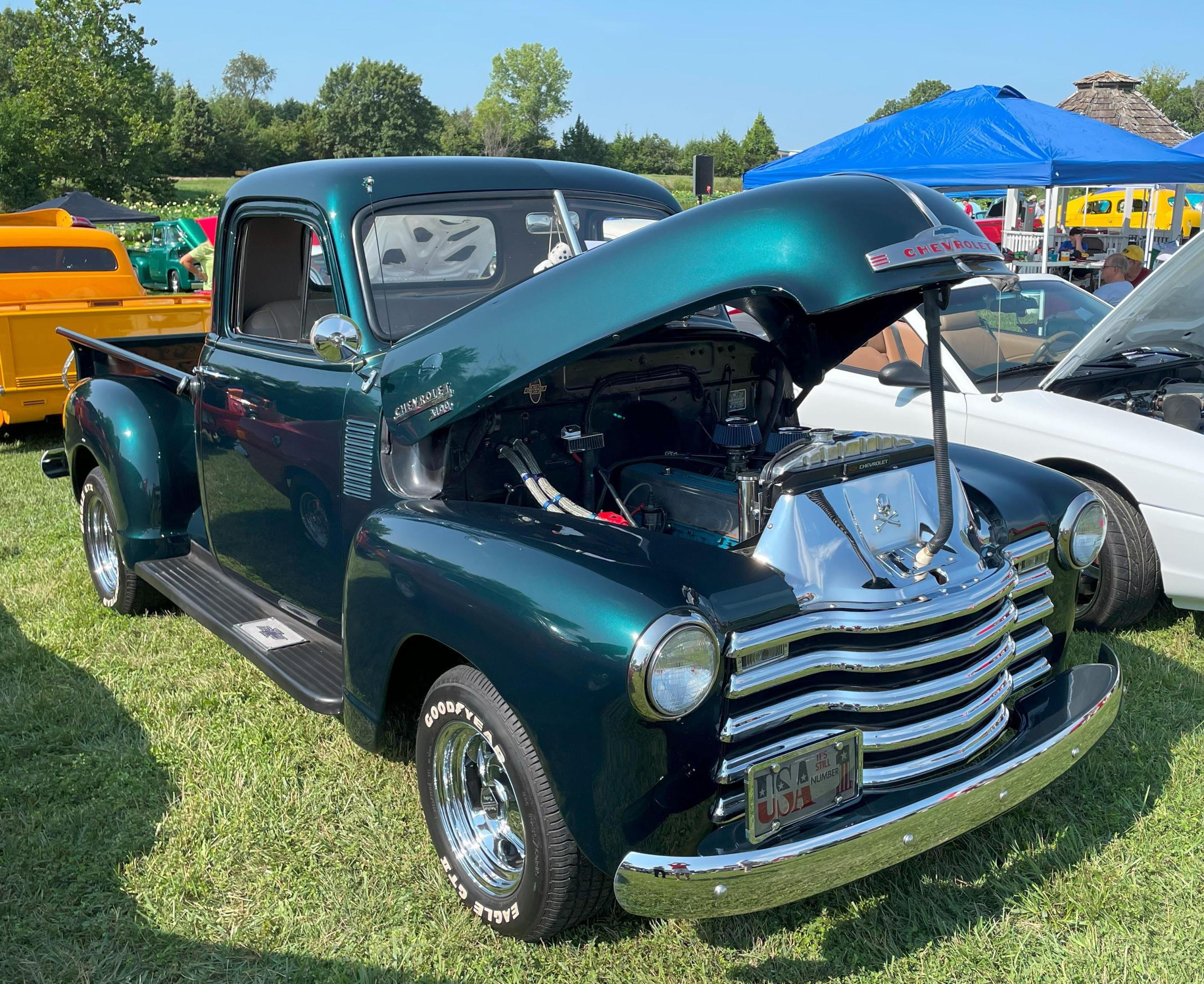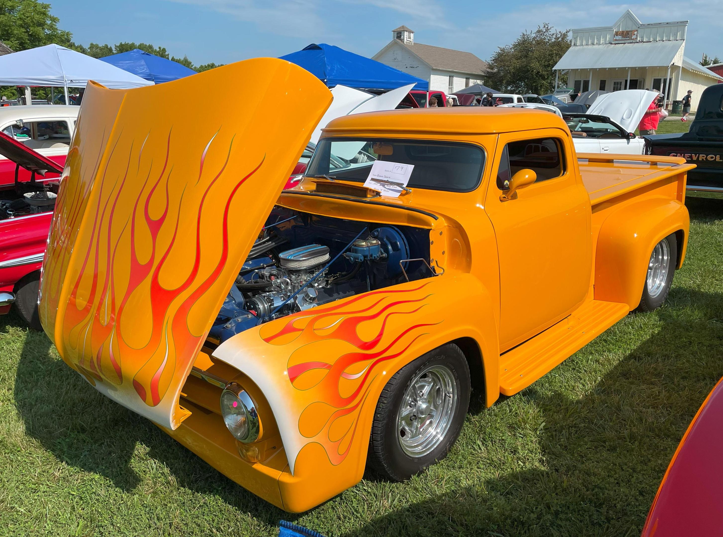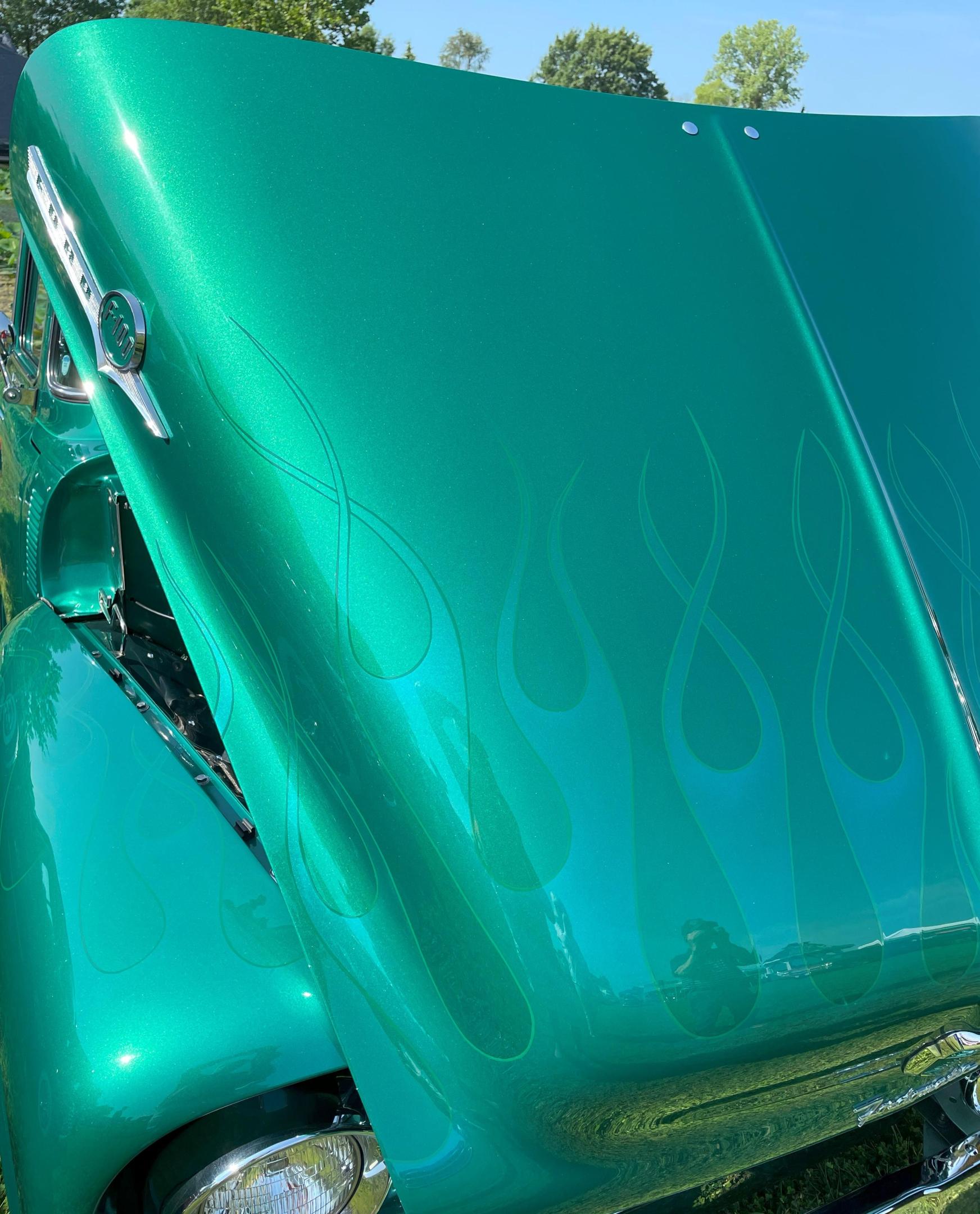 Thankyou for looking, and you're correct about the hood. I think it may have gotten one less coat of blue since I was trying not to get a run as I was spraying a little more than I should have. Since it's more noticeable in bright lights I would repaint it if I ever put it a show.
