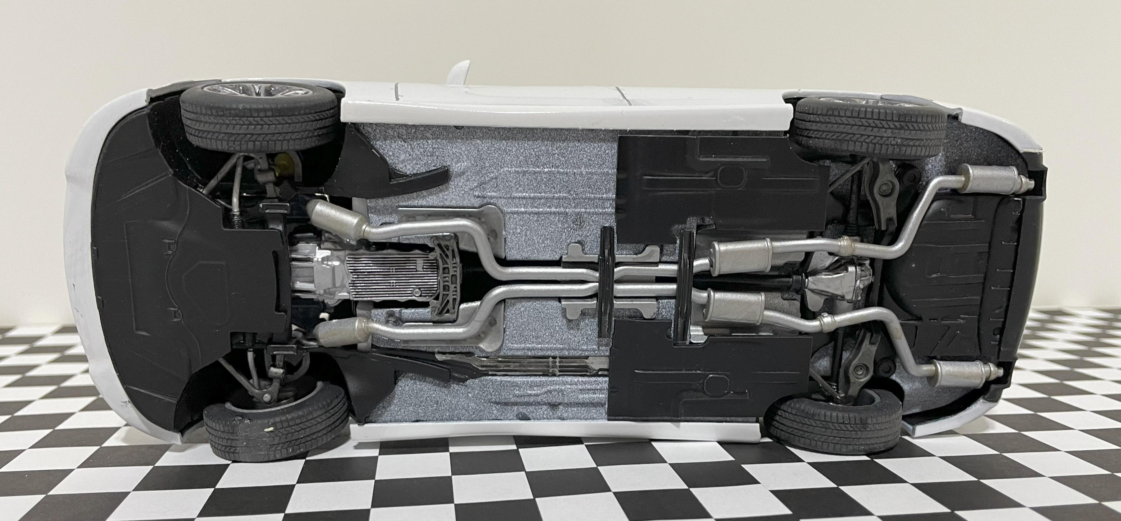 11. Built out of box. Body color is TS-26 Pure White with TS-13 Clear. Interior is TS-6 Matt Black with black flocking for floor and rear package tray. The Wheels are TS-42 Light Gun Metal with the heel lip and spokes highlighted with a chrome Gundam Marker. TS-71 Smoke was used for window tinting.