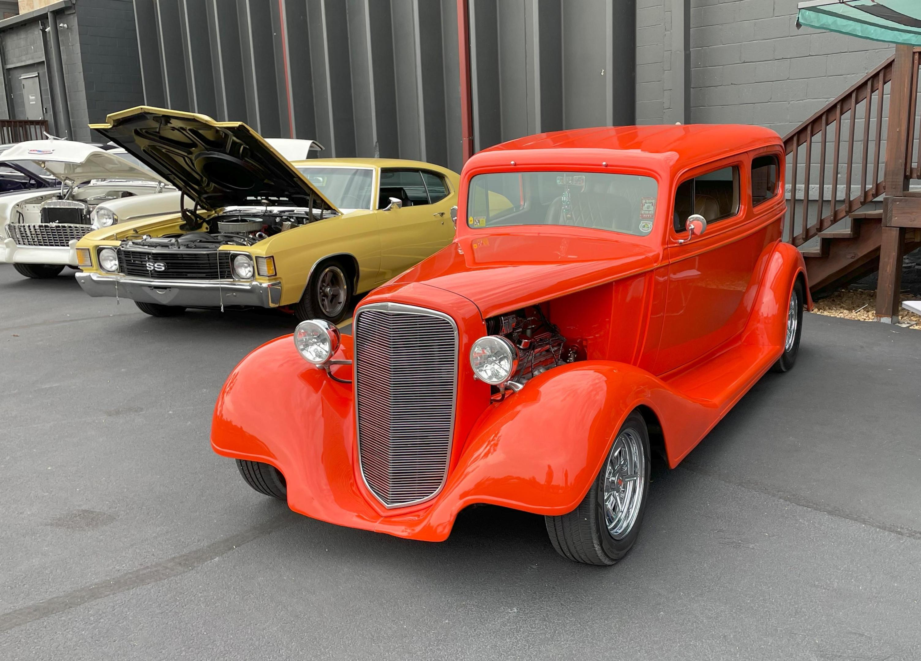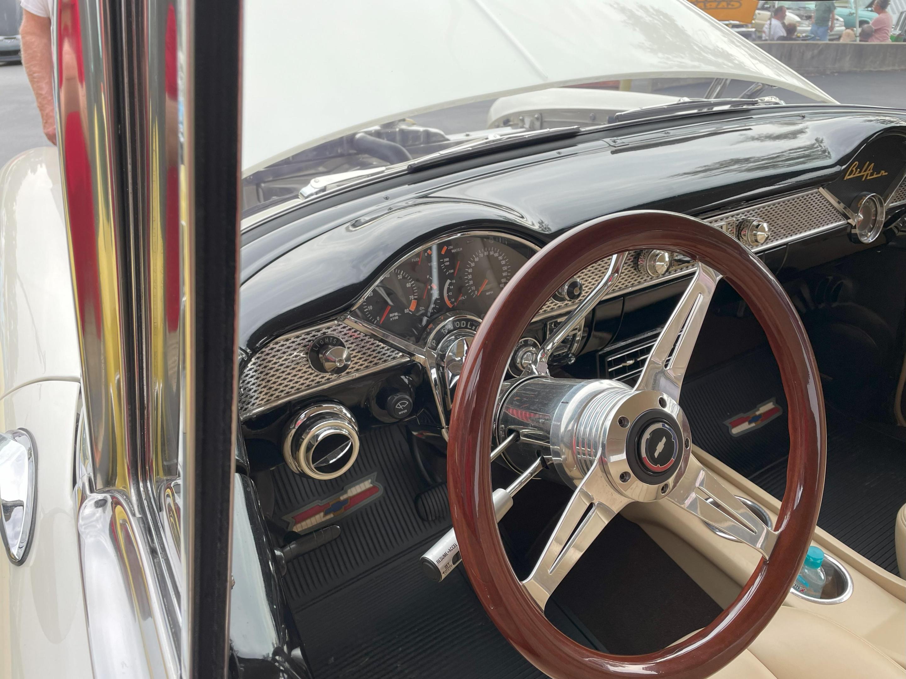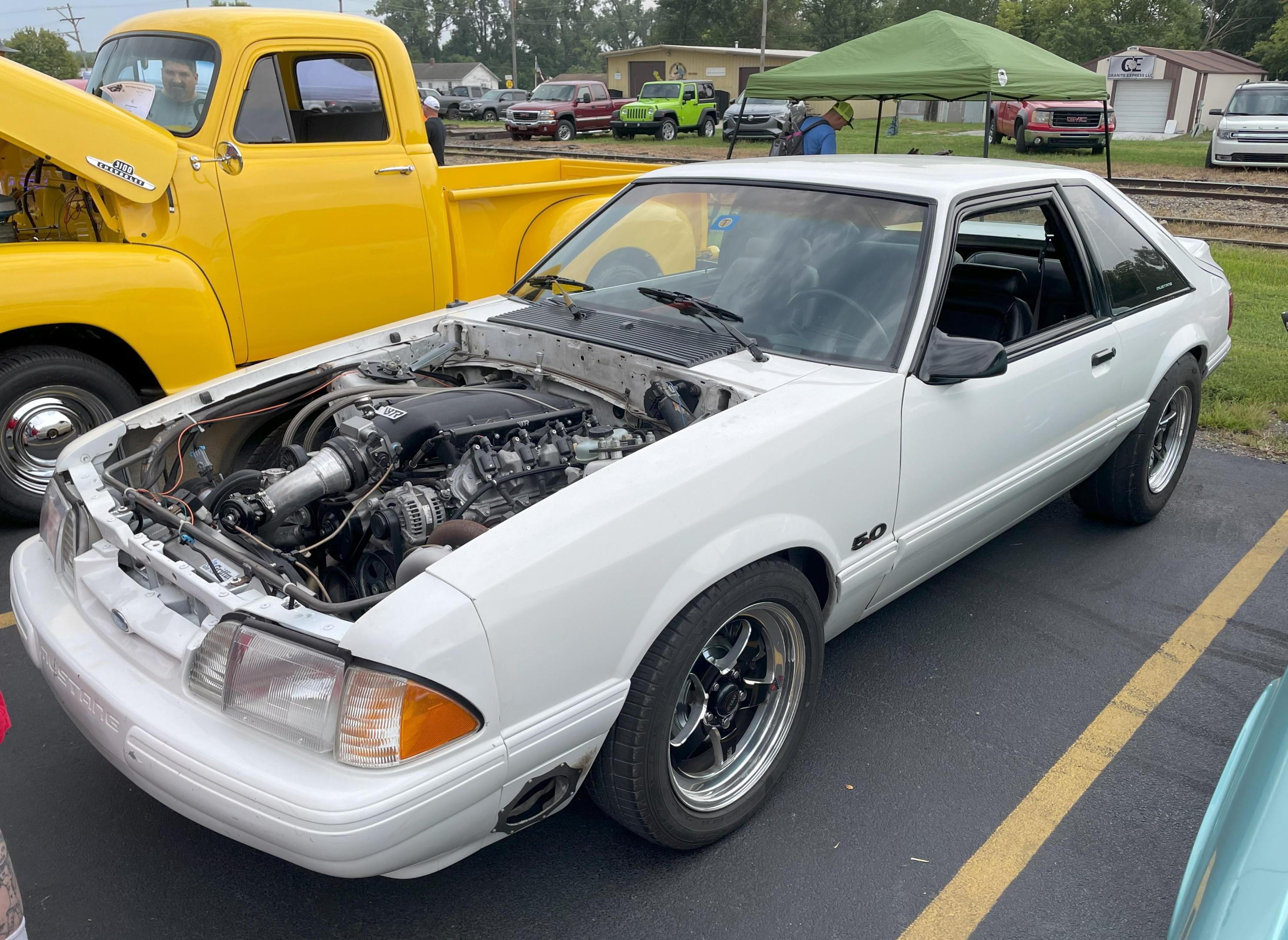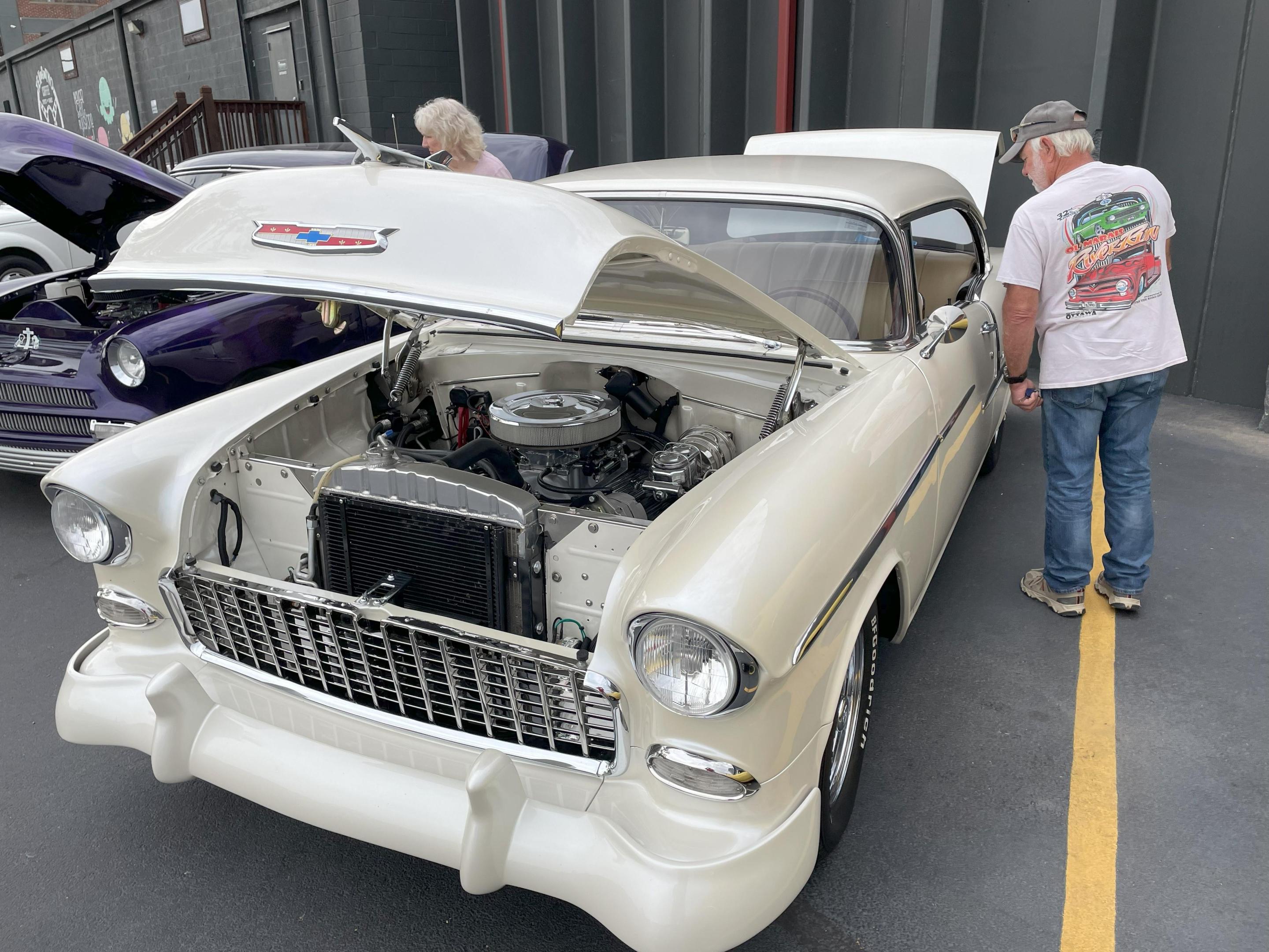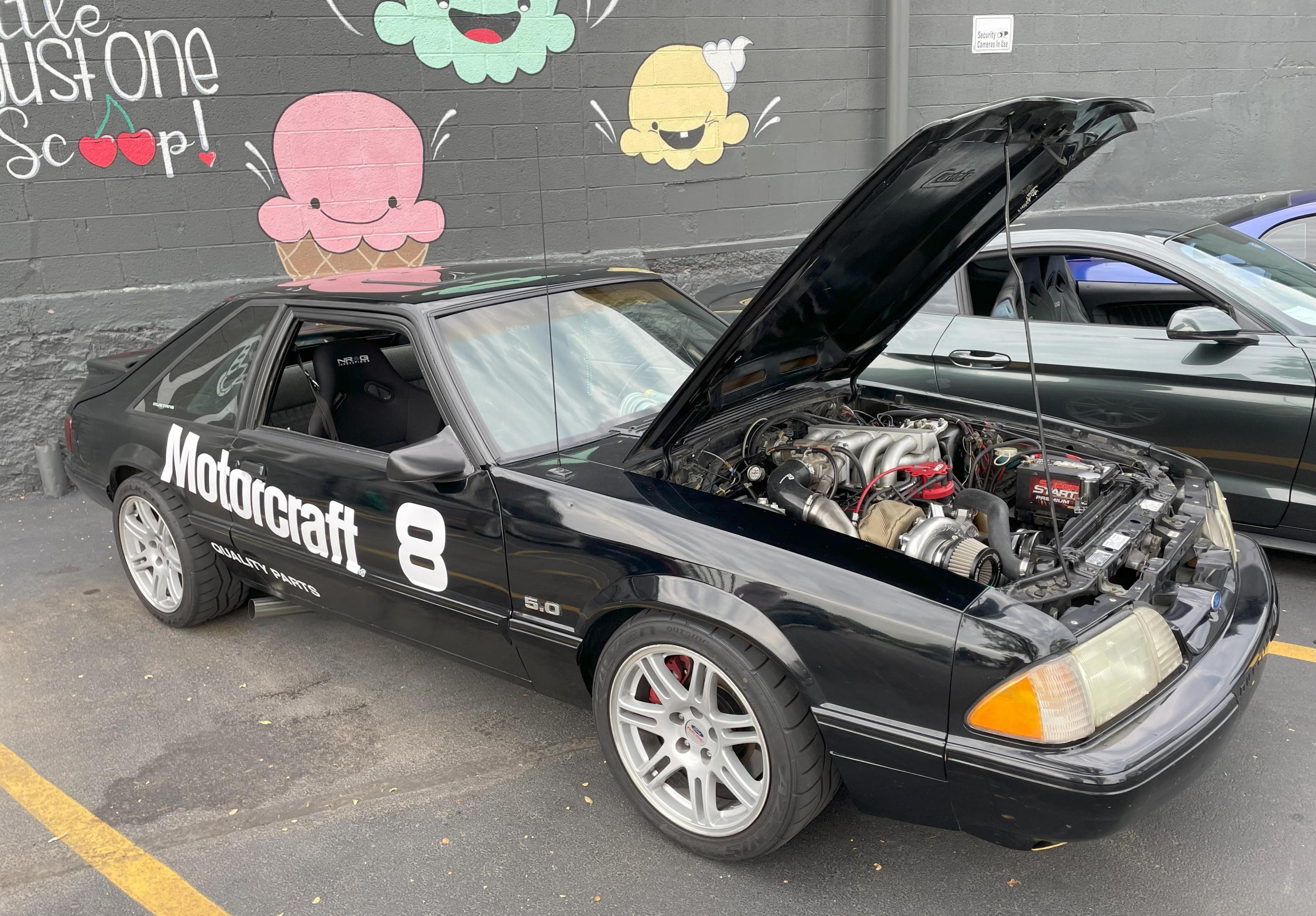 I'm also fond of '56 Chevys. If you're referring to the black premiered '56 at the beginning, it's a real sedan delivery along with the shiny black '55 as well as the double Nickel '55 Chevy. There were several really nice-looking Mustangs, and they all had extensive engine work or even a replacement engine. The white one with the turbo had an LS3 engine.
