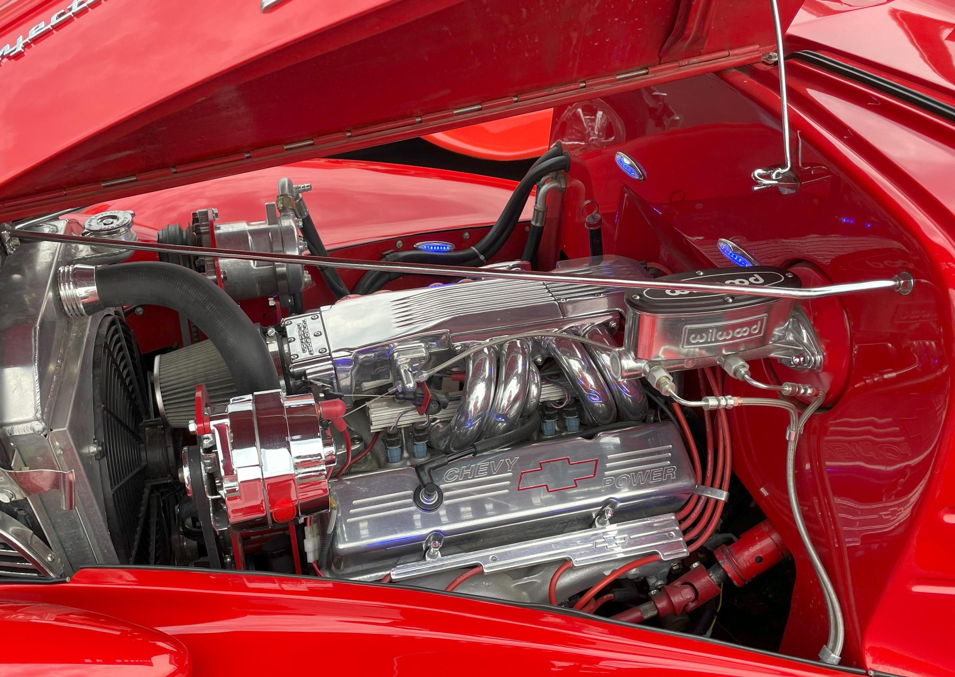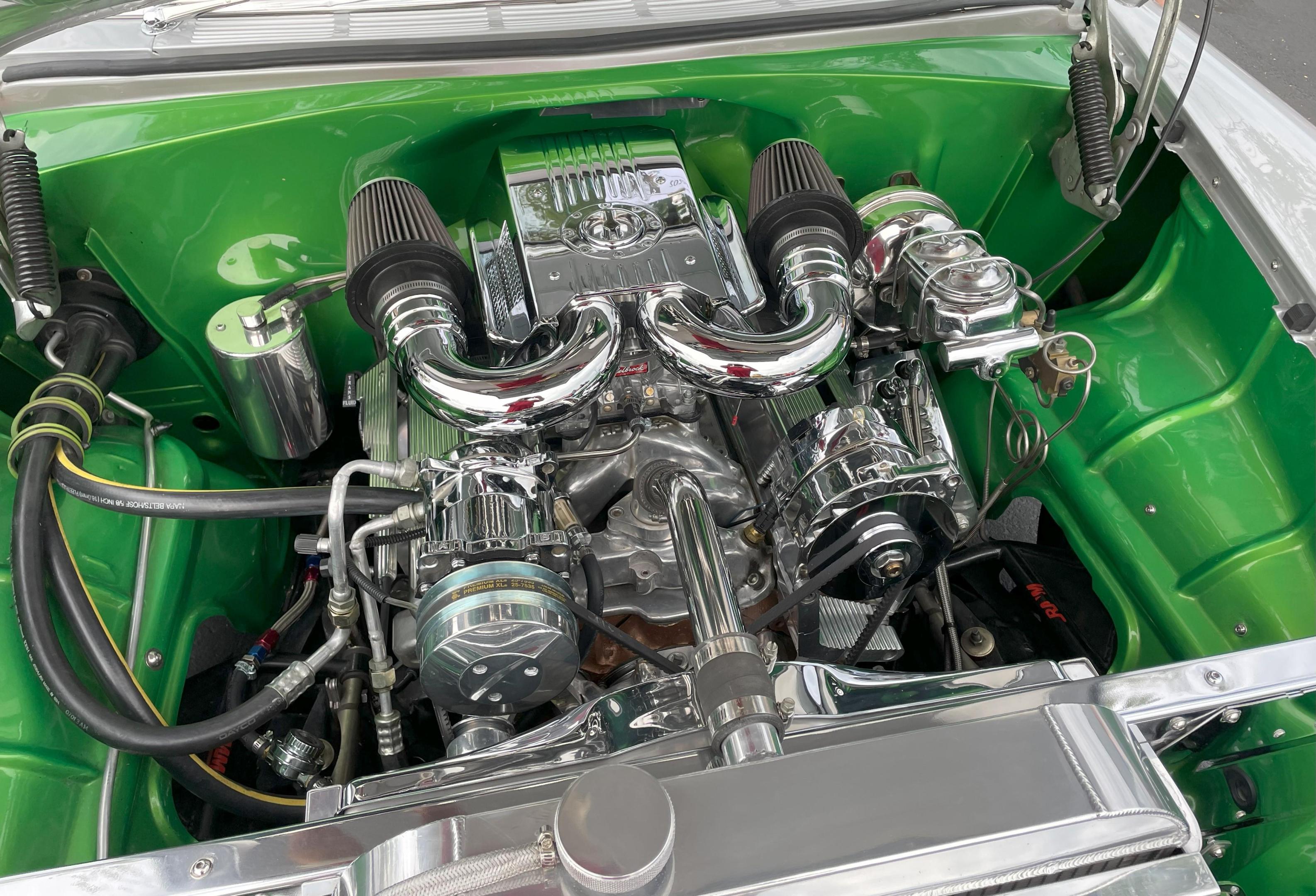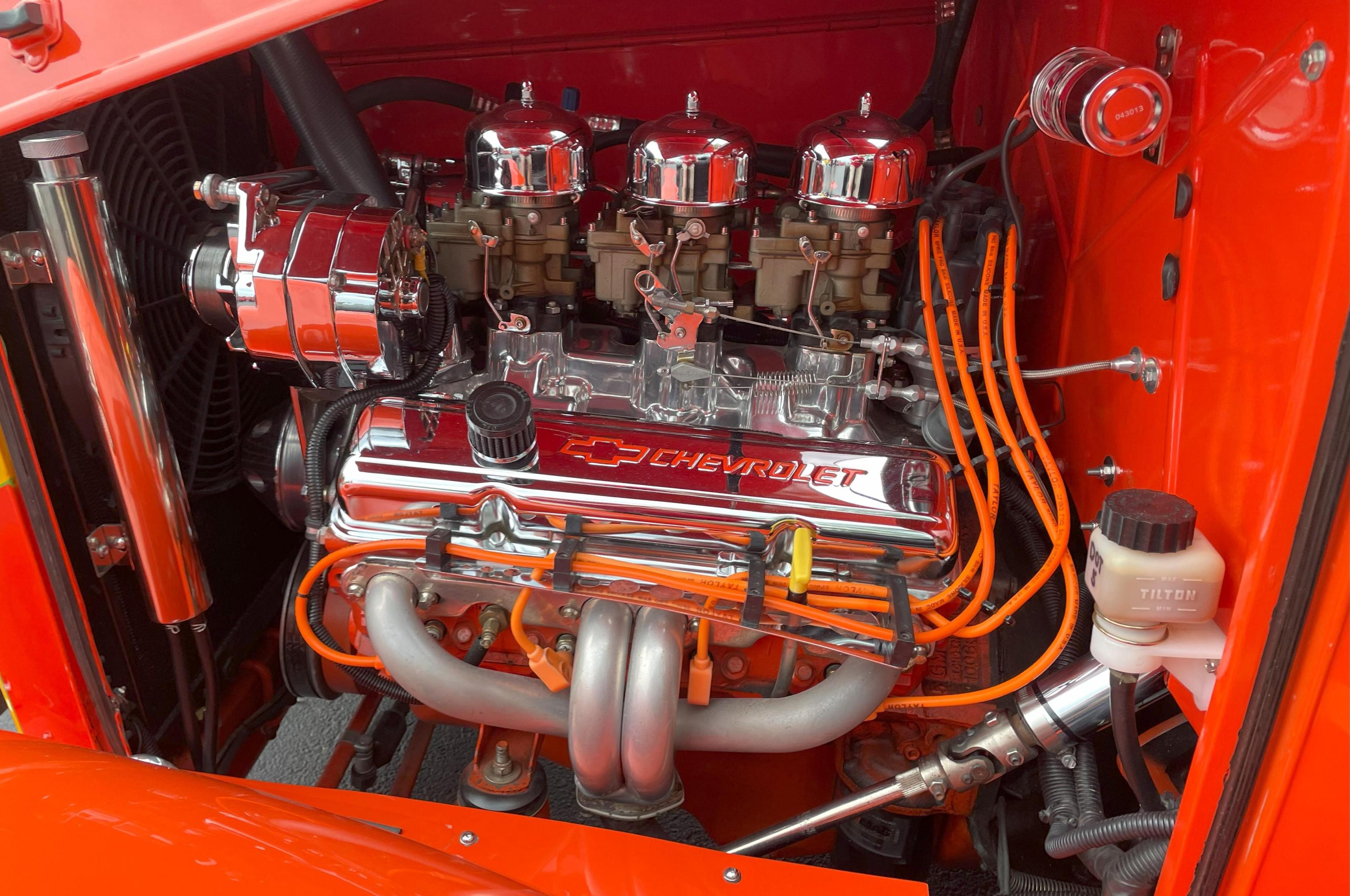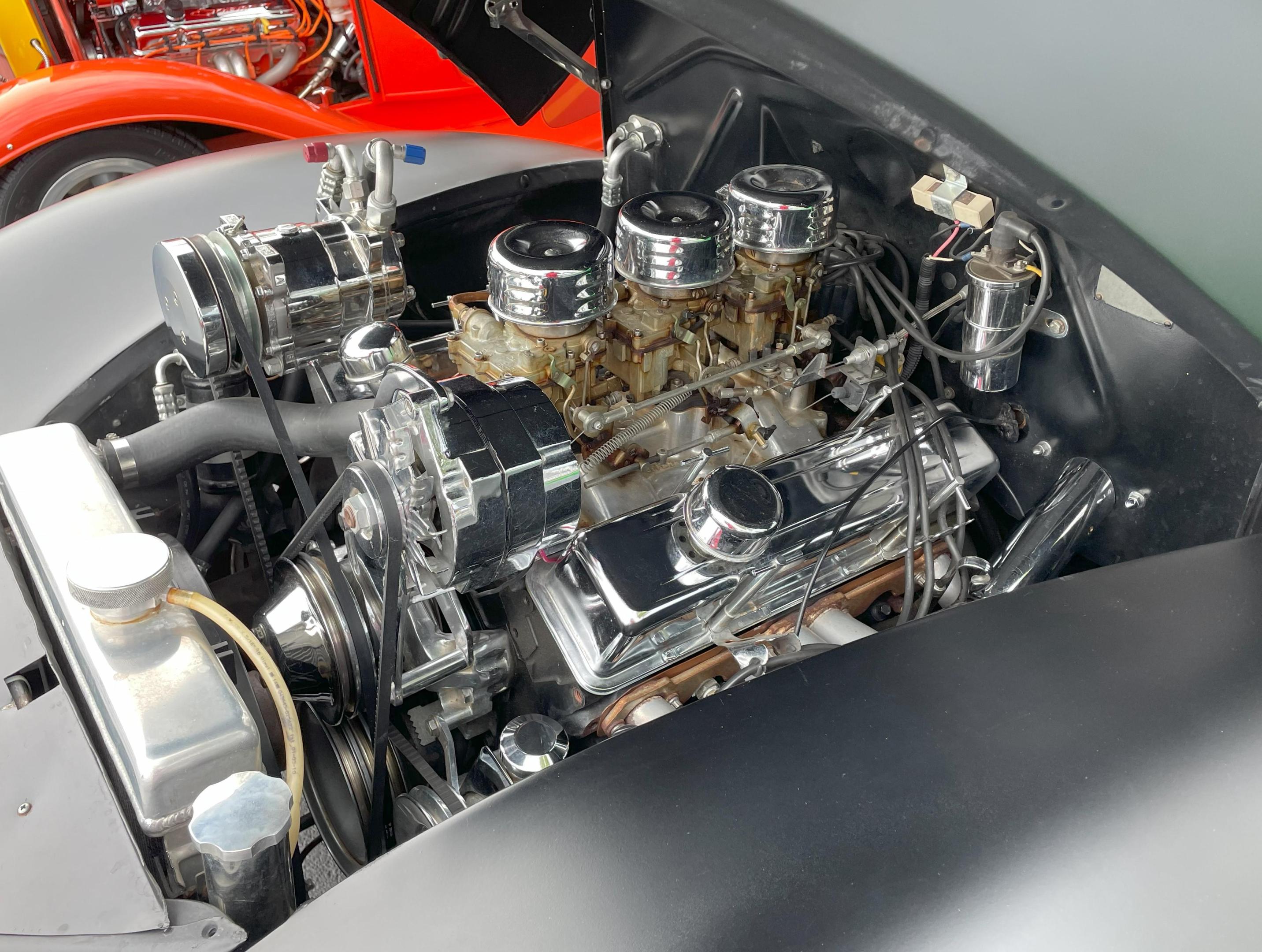 Great looking paint color and finish along with the stripping. Almost a shame to cover up the 3x2's with an air cleaner. Like the chassis and extensive engine detailing.
