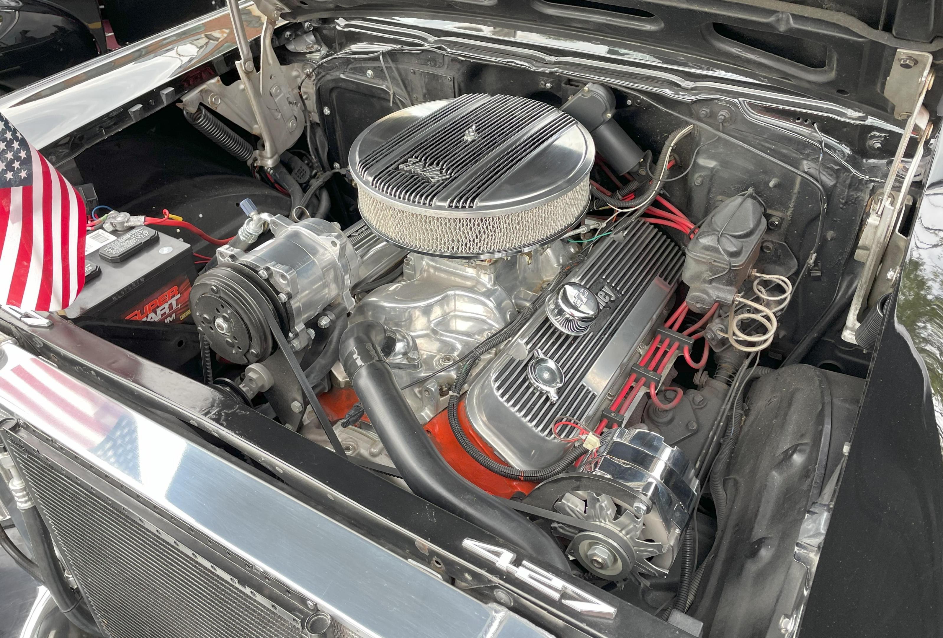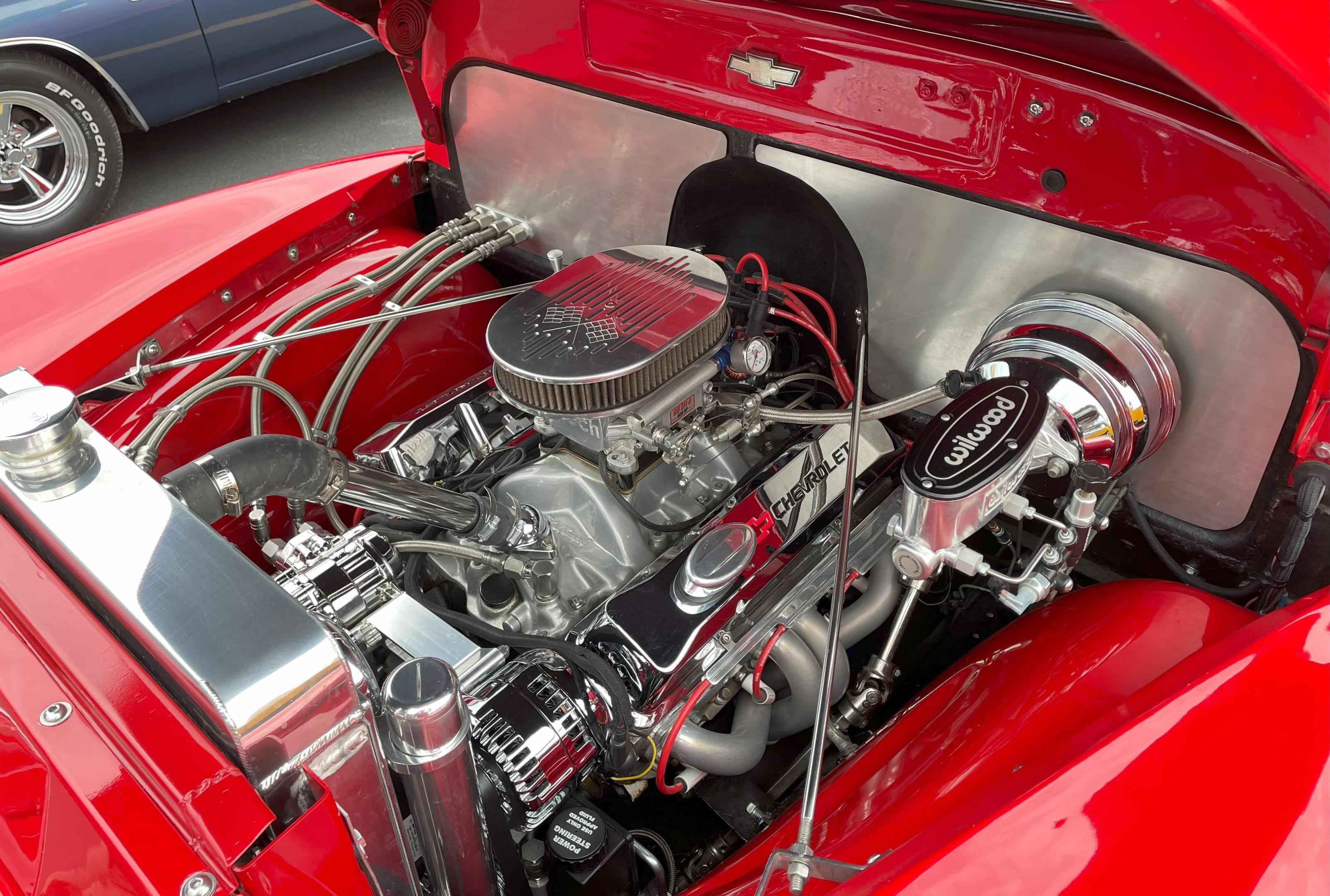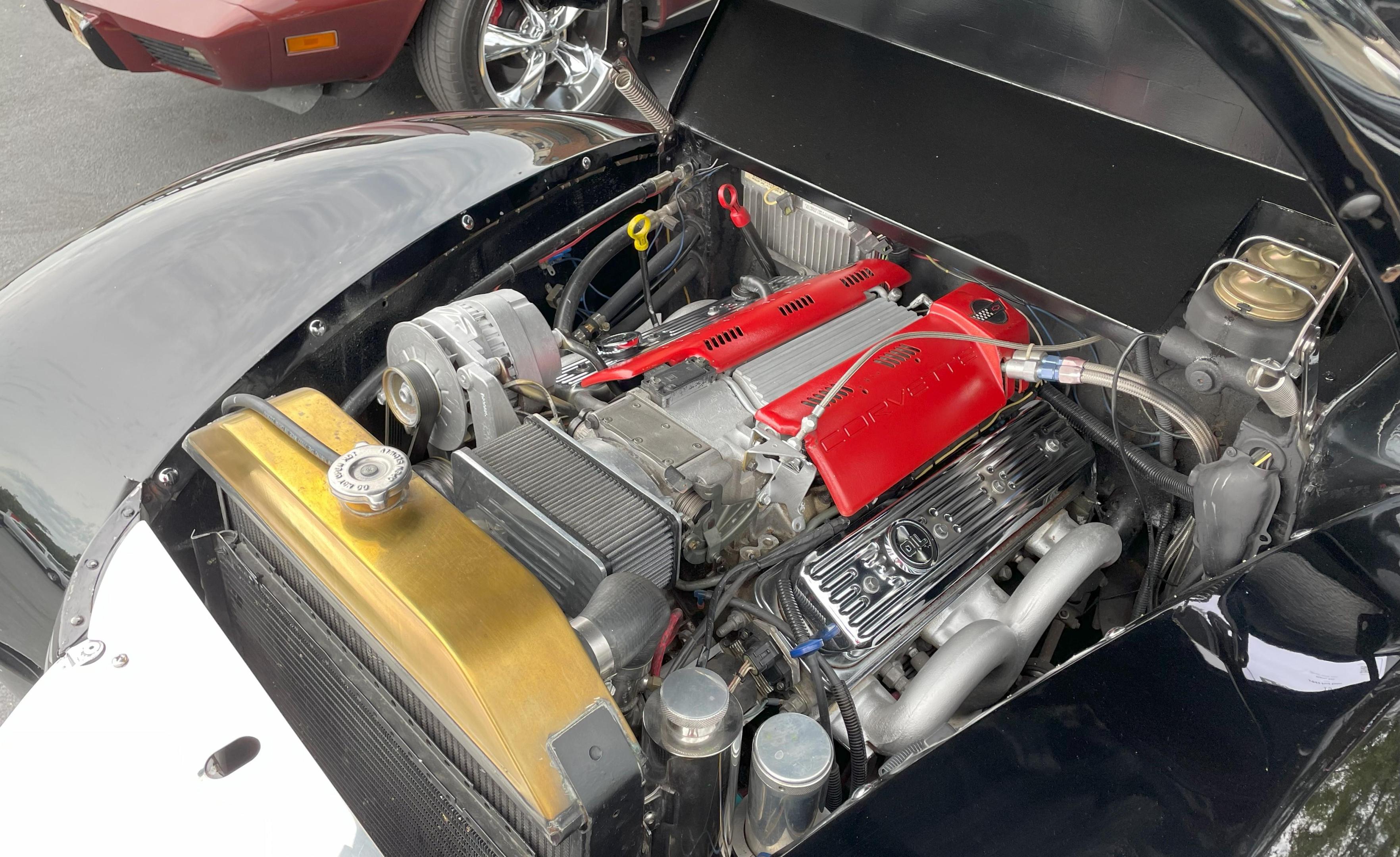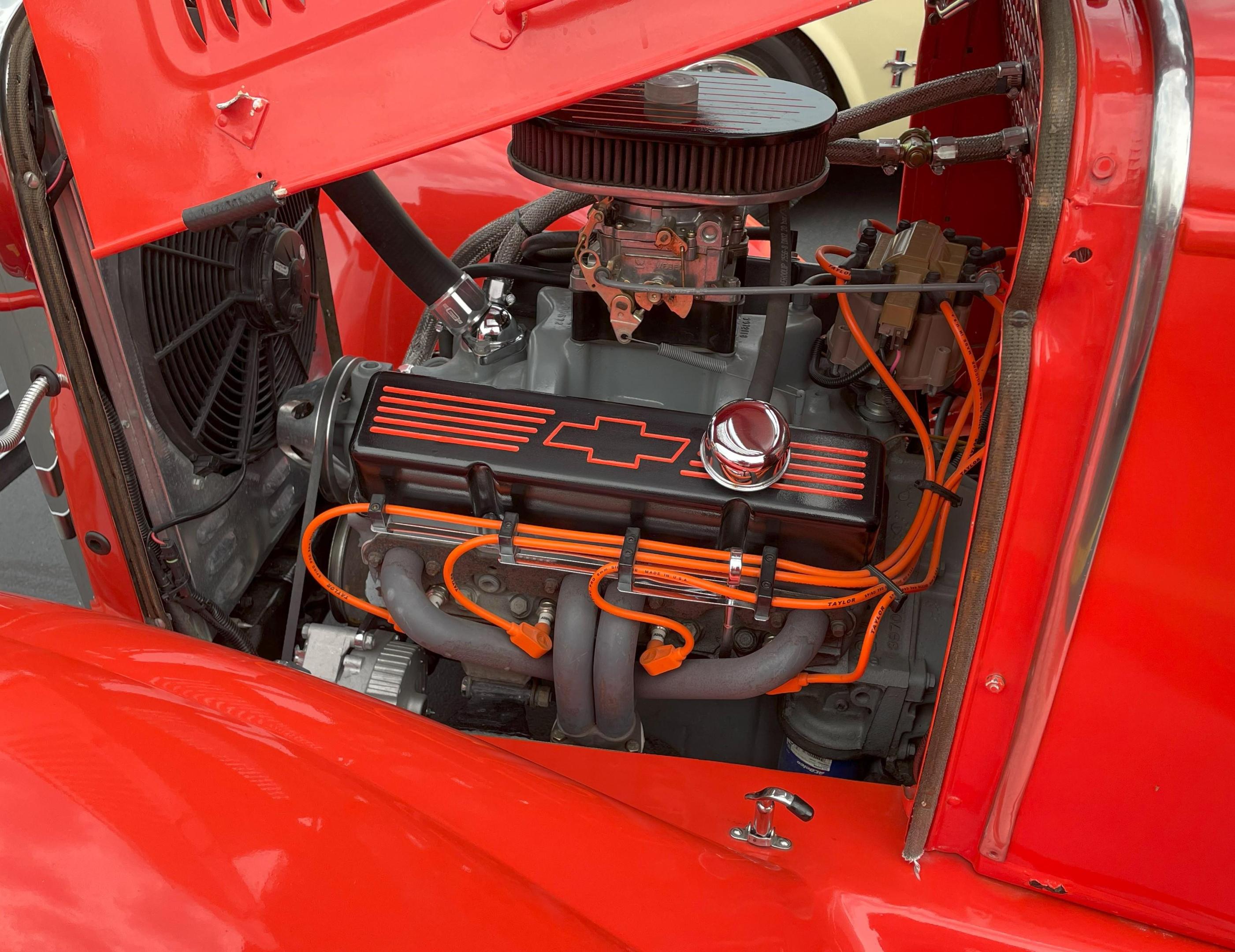 Great looking paint color and finish along with the stripping. Almost a shame to cover up the 3x2's with an air cleaner. Like the chassis and extensive engine detailing.