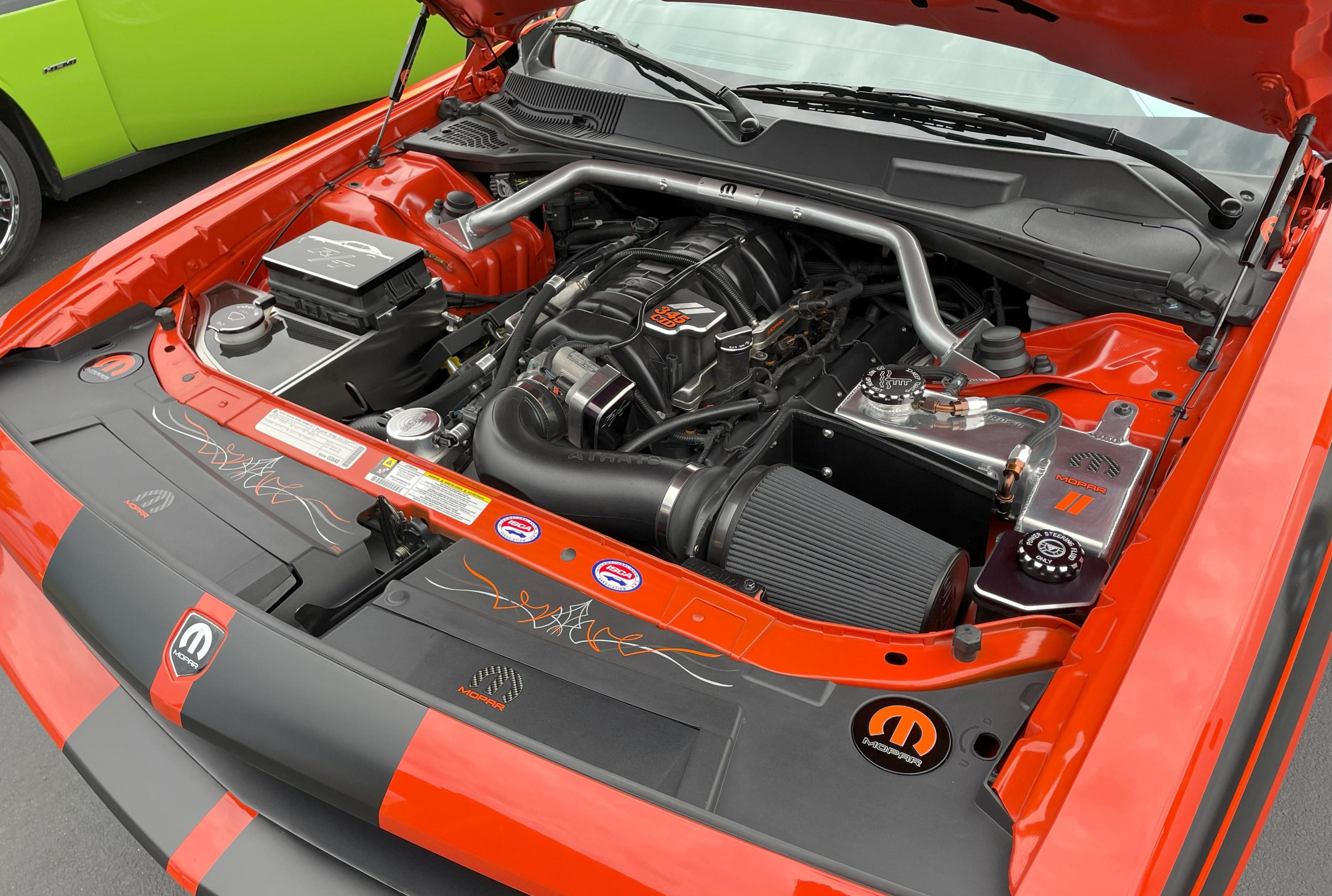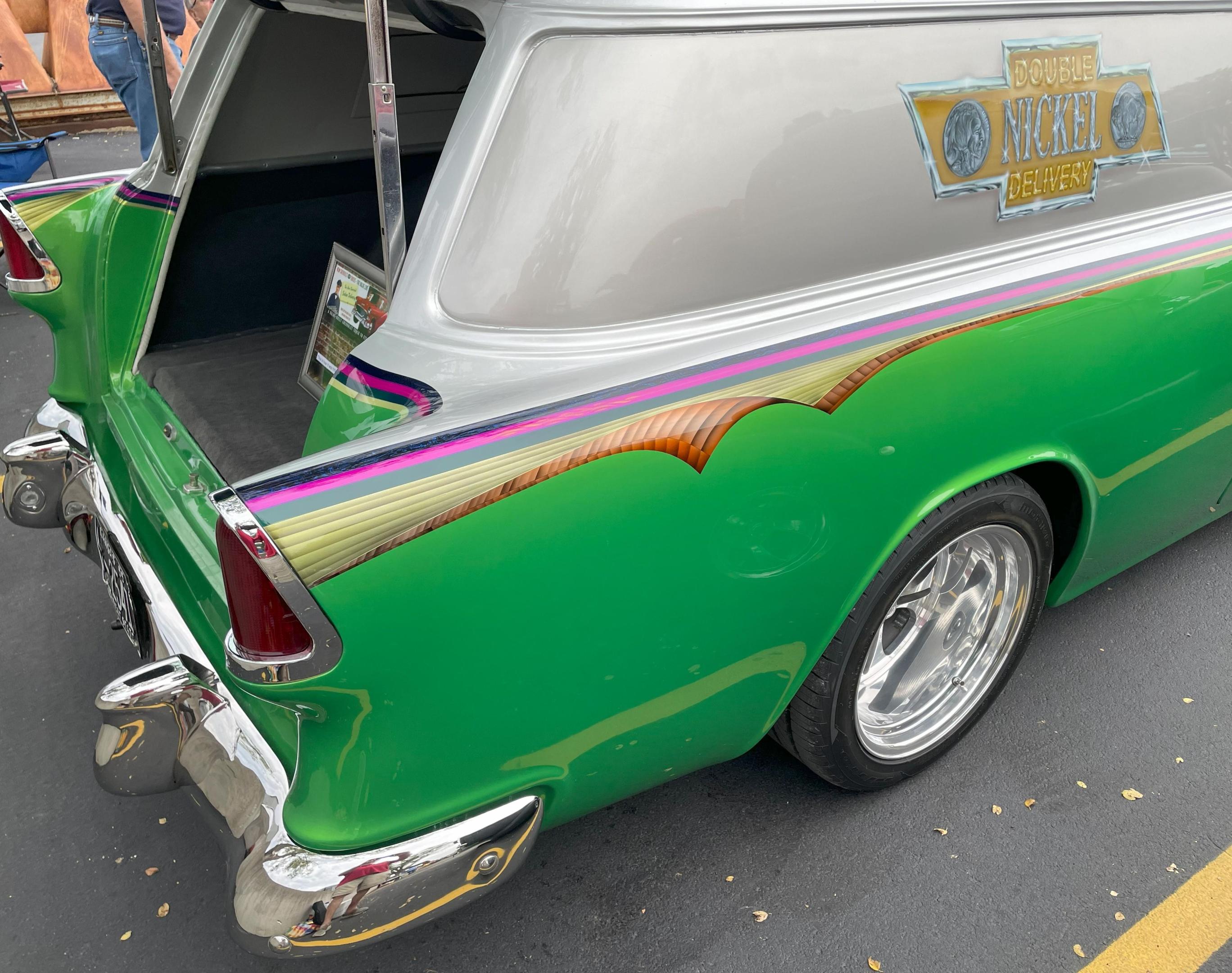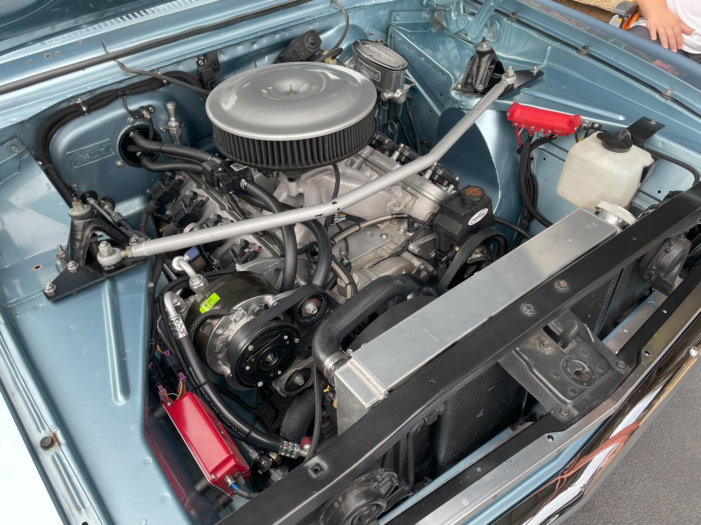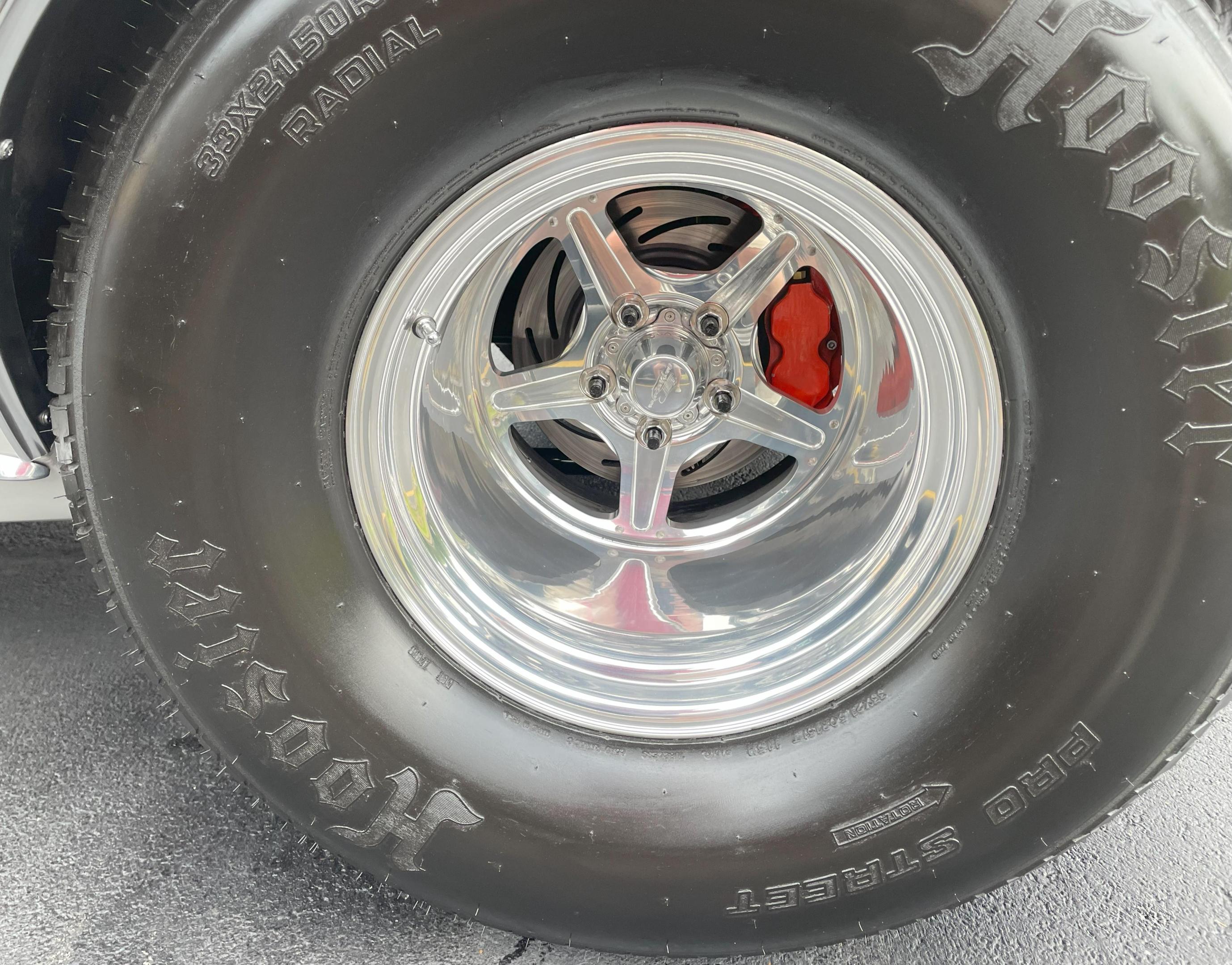 Great looking paint color and finish along with the stripping. Almost a shame to cover up the 3x2's with an air cleaner. Like the chassis and extensive engine detailing.
