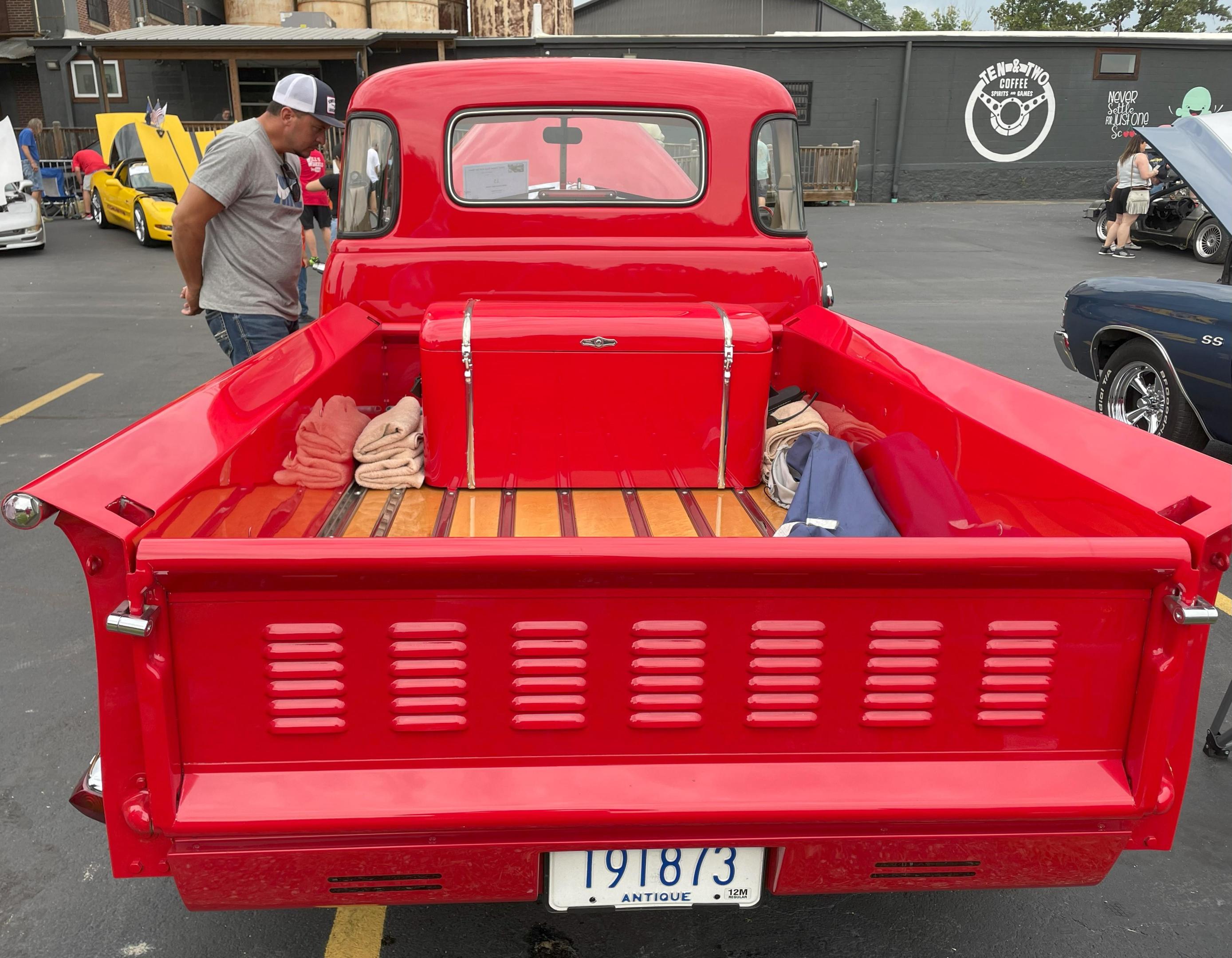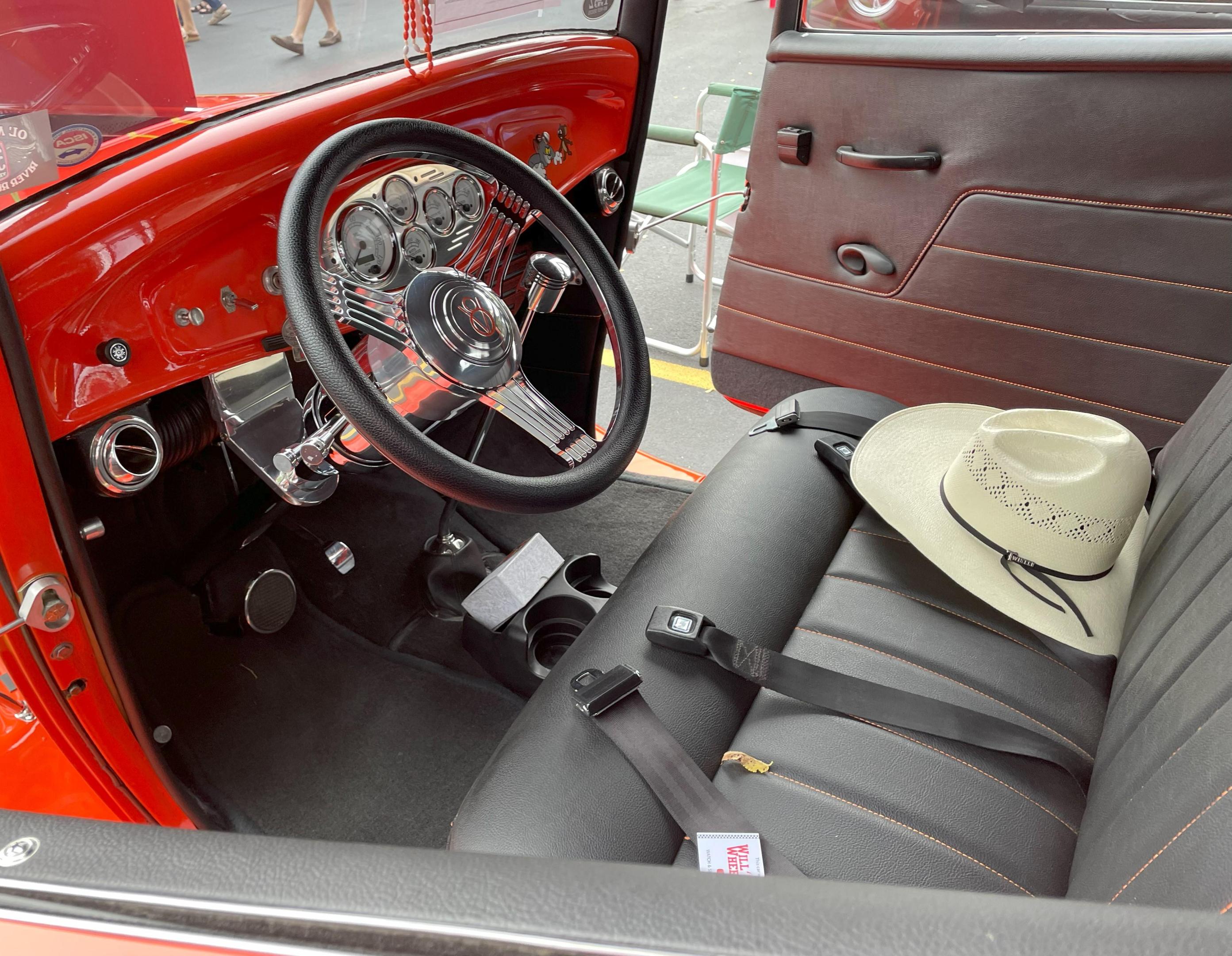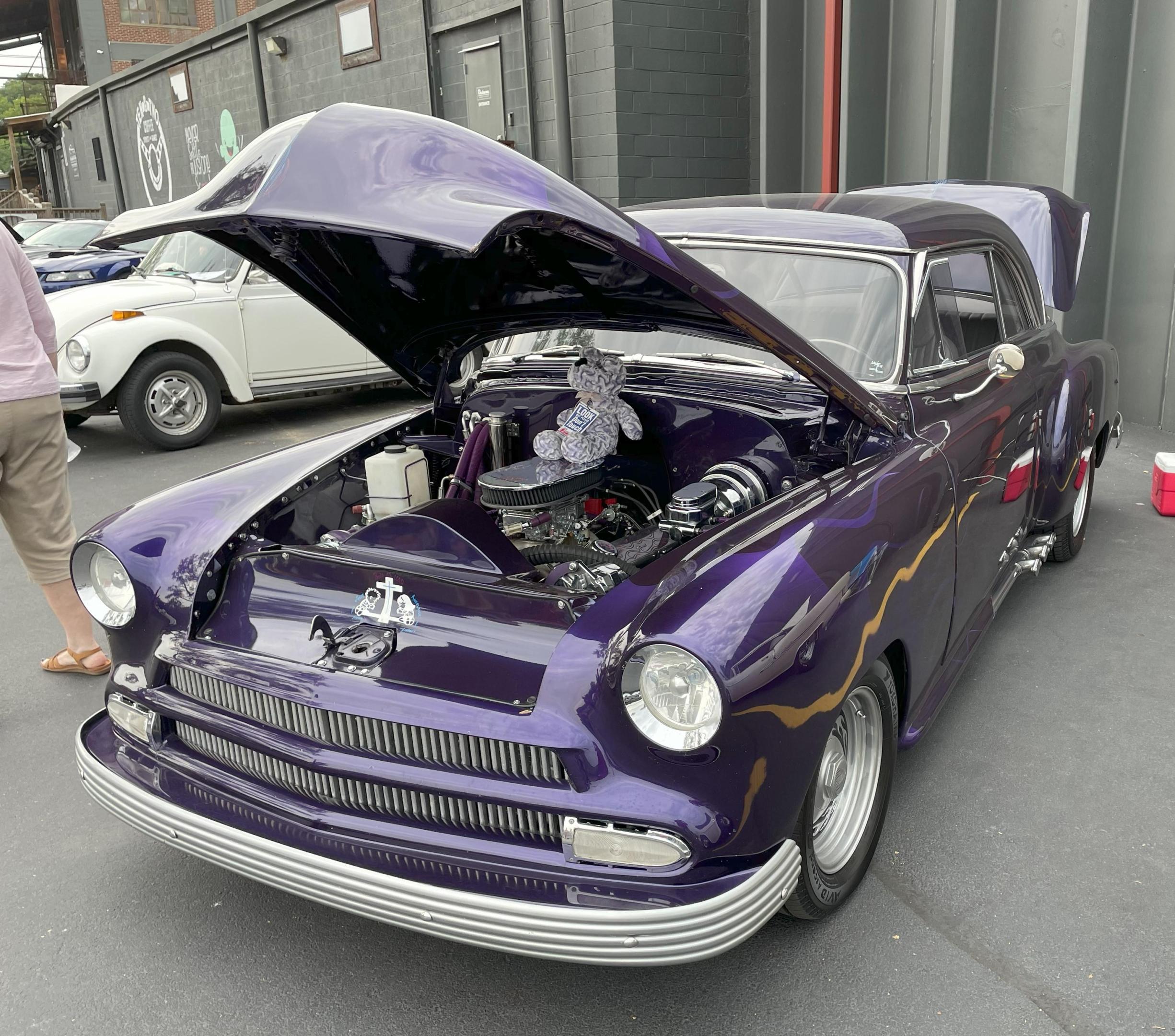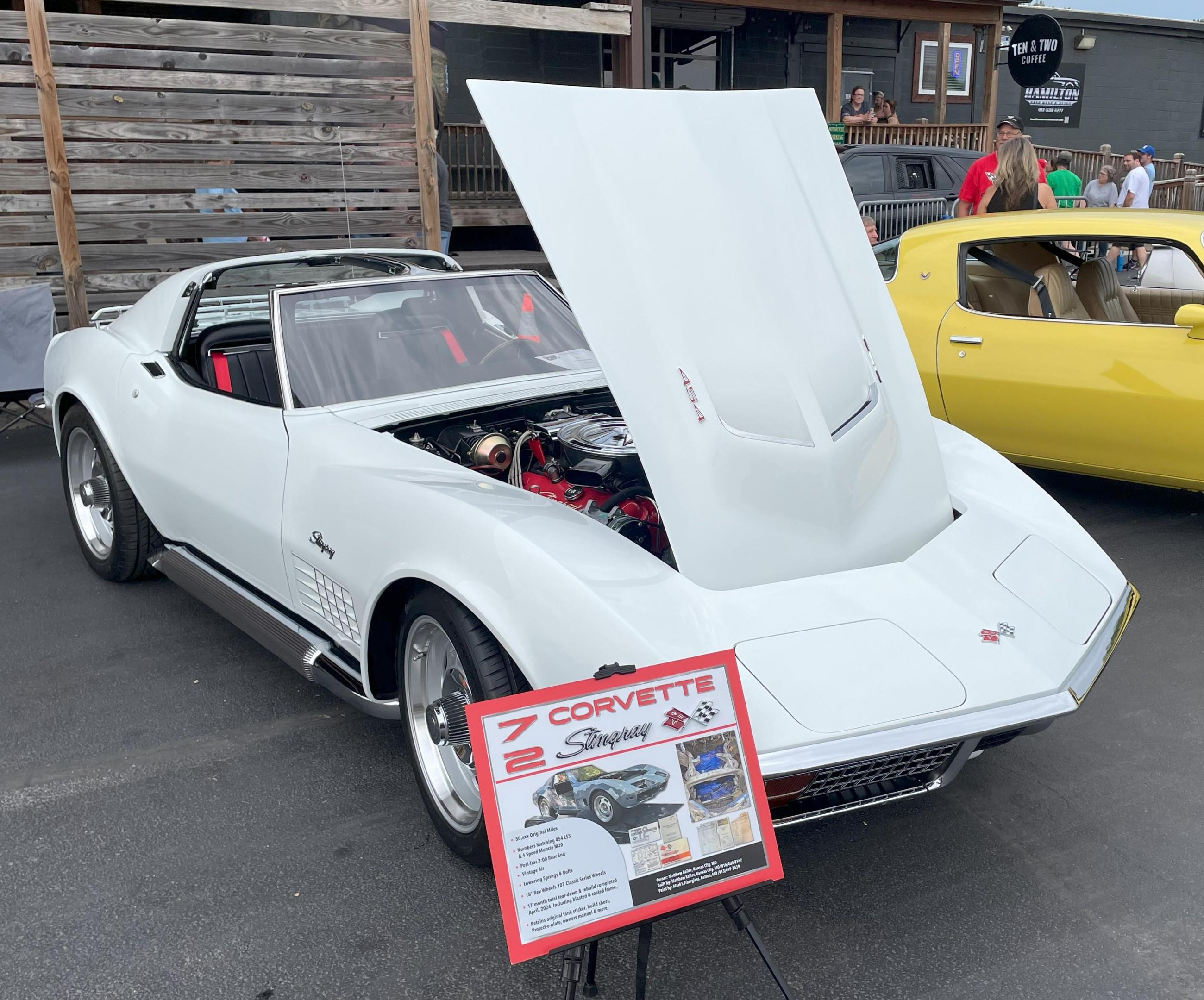 Great looking paint color and finish along with the stripping. Almost a shame to cover up the 3x2's with an air cleaner. Like the chassis and extensive engine detailing.