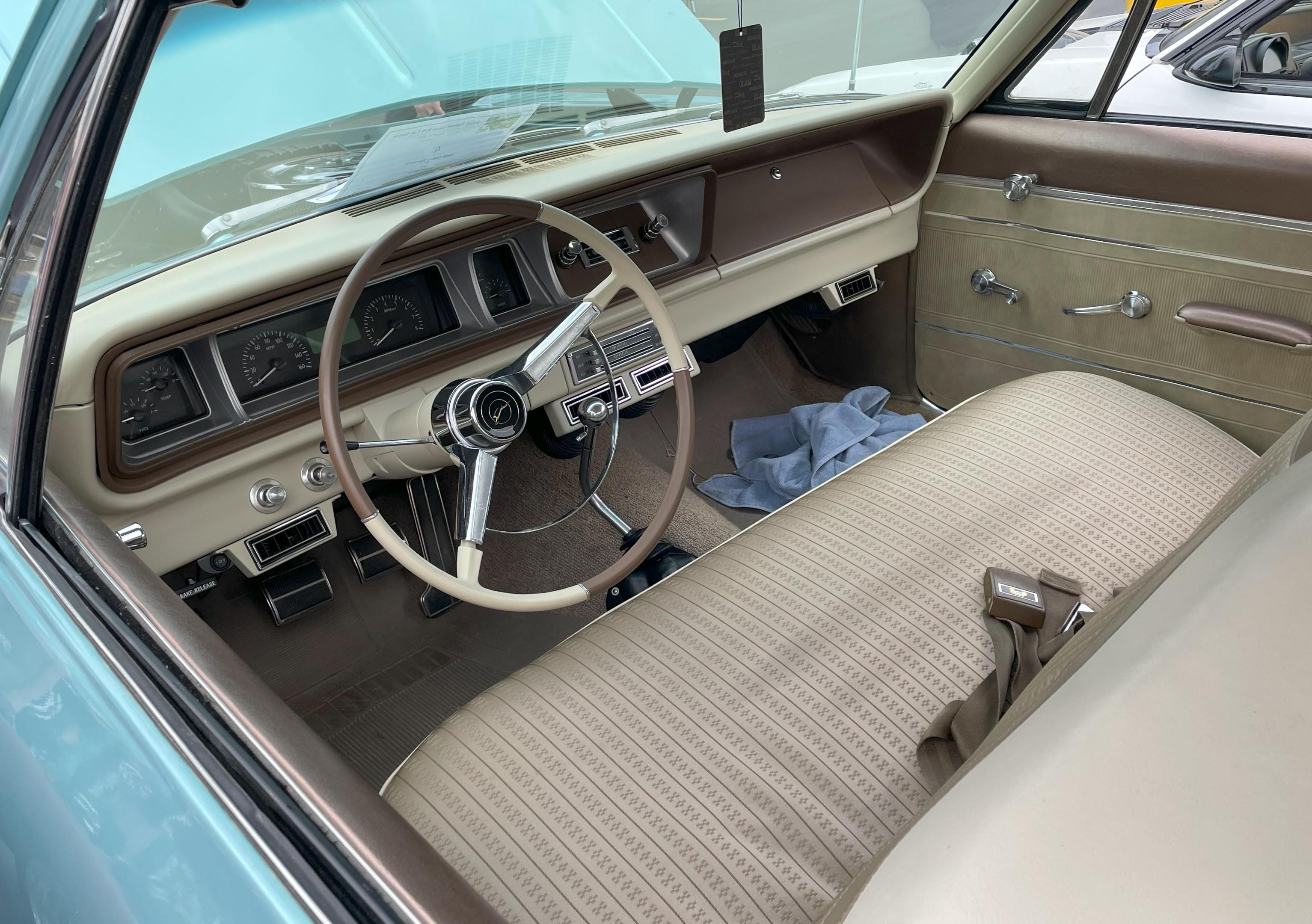 Great looking body and trim. The paint colors reflect a common color combination of the time. Nice interior detailing.