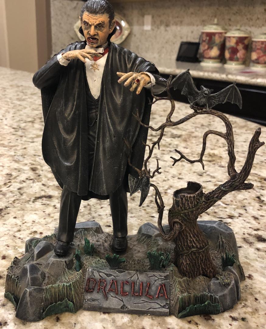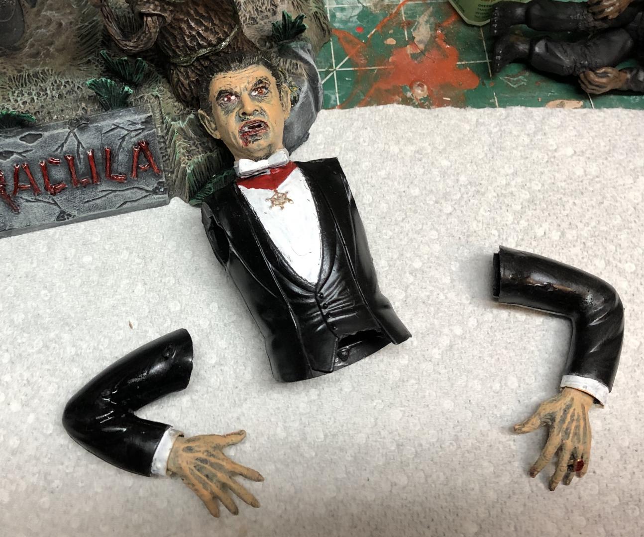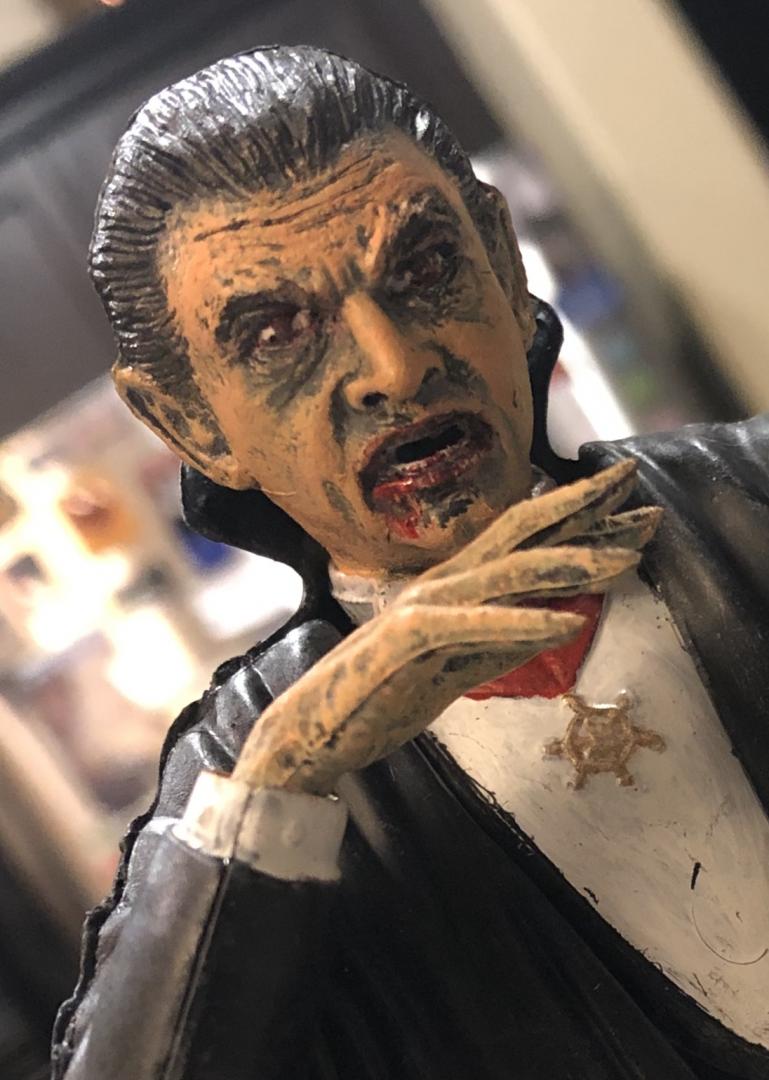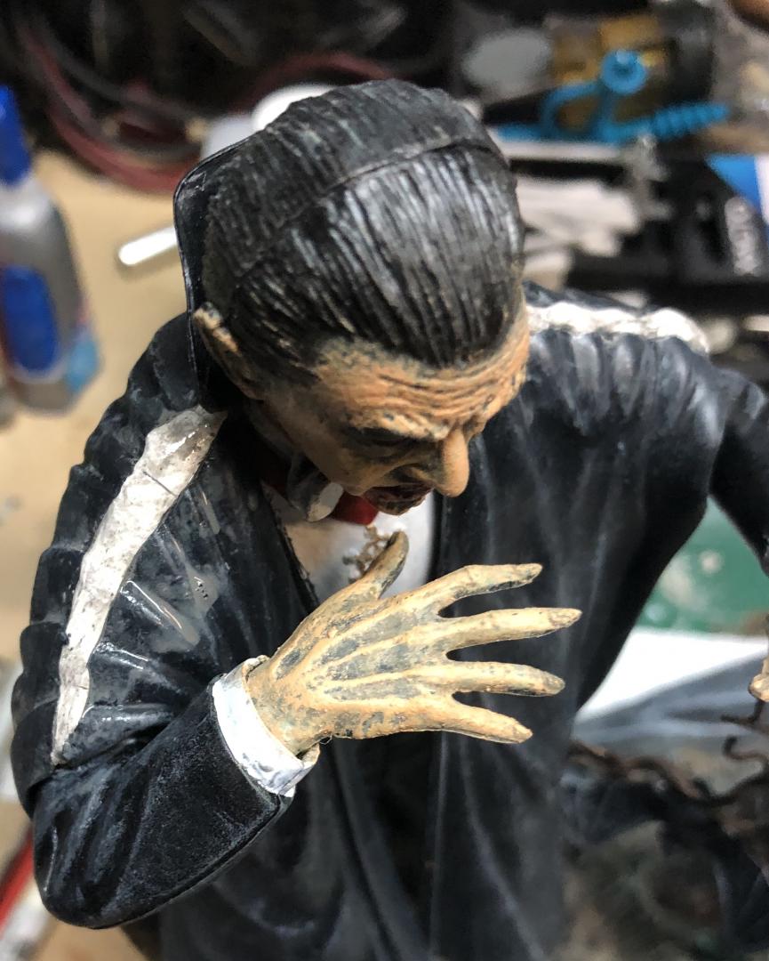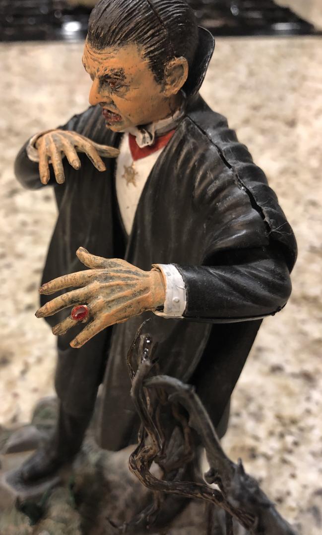 And here’s the Count, but not finished. Since this is a restoration of a 1962 original, there was heavy glue on the front and back pieces of the cape. I forgot to trim that off after I stripped the model and separated the parts. The end result was a significant gap at his shoulders that I didn’t like. I fixed that with some Miliput and will repaint. -
