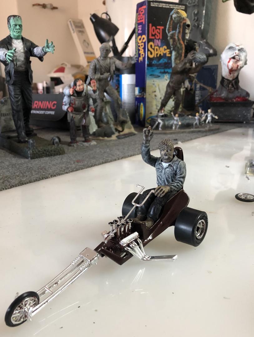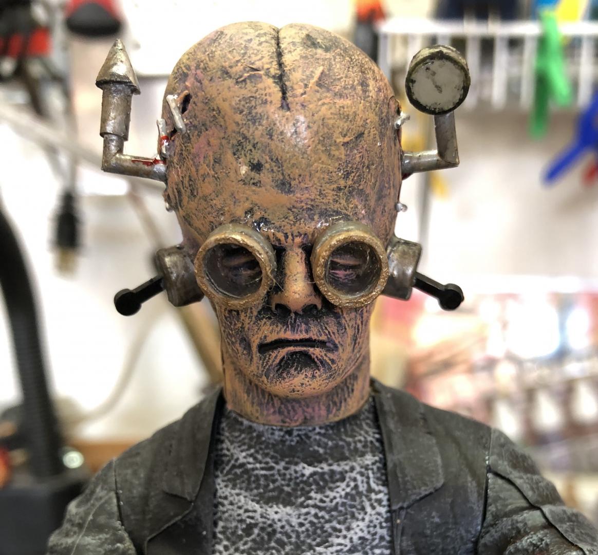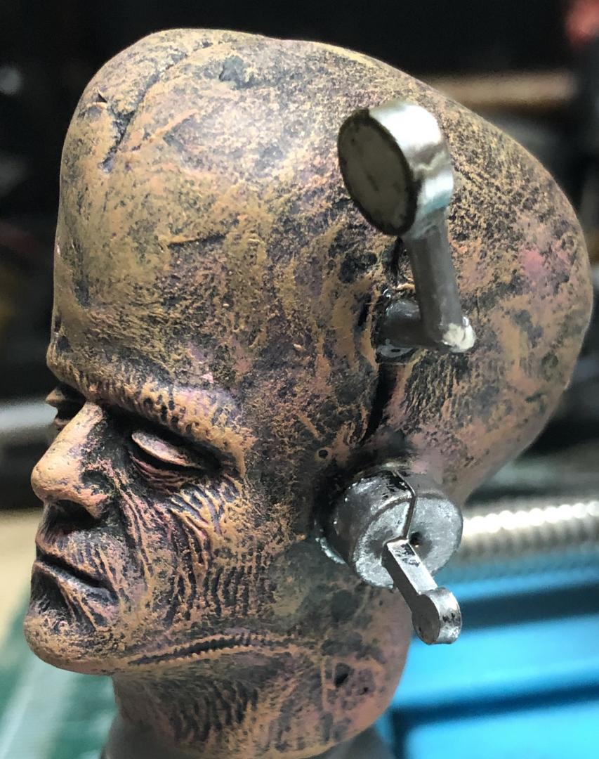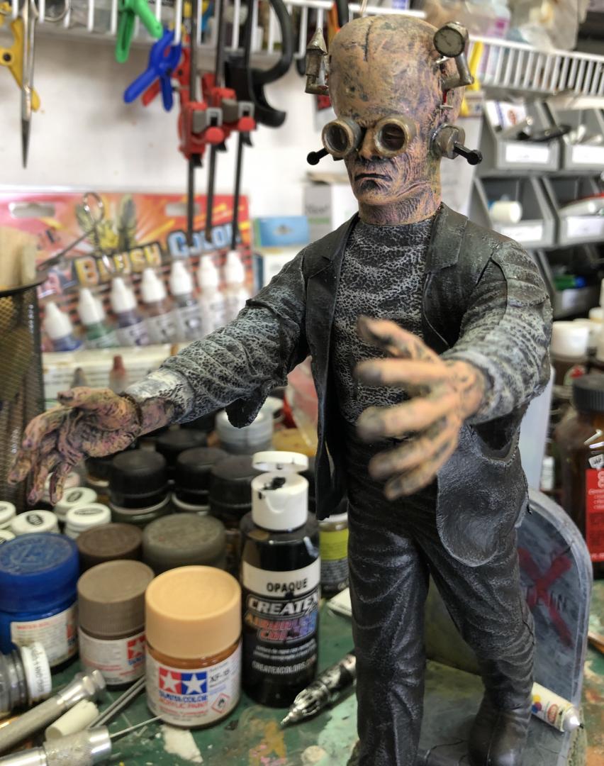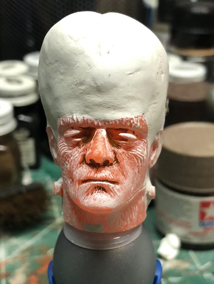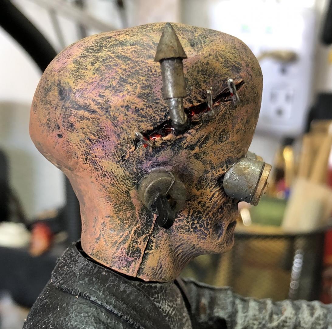Used a Monogram Luminators Frankenstein Kit for this one. At first I had imagined doing it in the same solid colors as those on the cereal box, including the base and tombstone. I planned to have him holding an open cereal box, but since I went in this darker direction with him I will just have one lying around crushed somewhere. Anyway here are some shots of the clay work, painting and placement of parts.