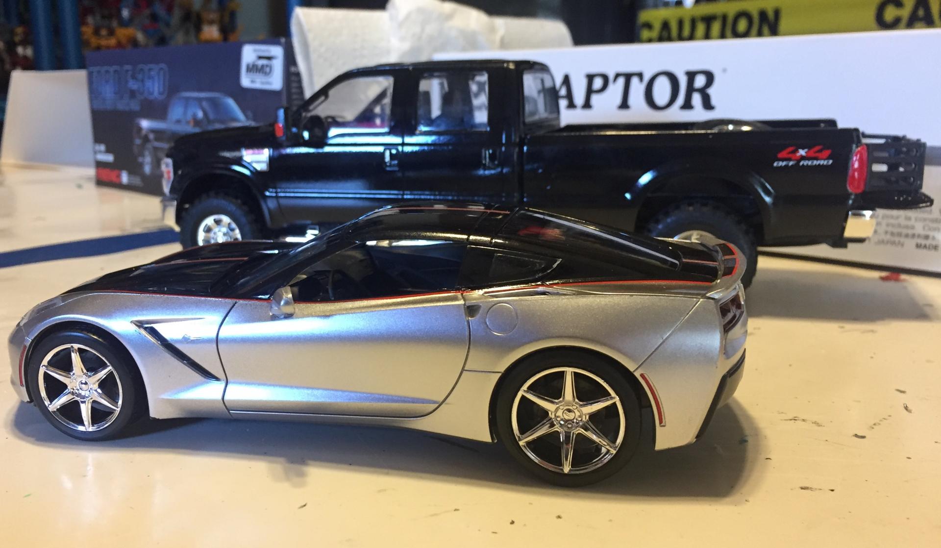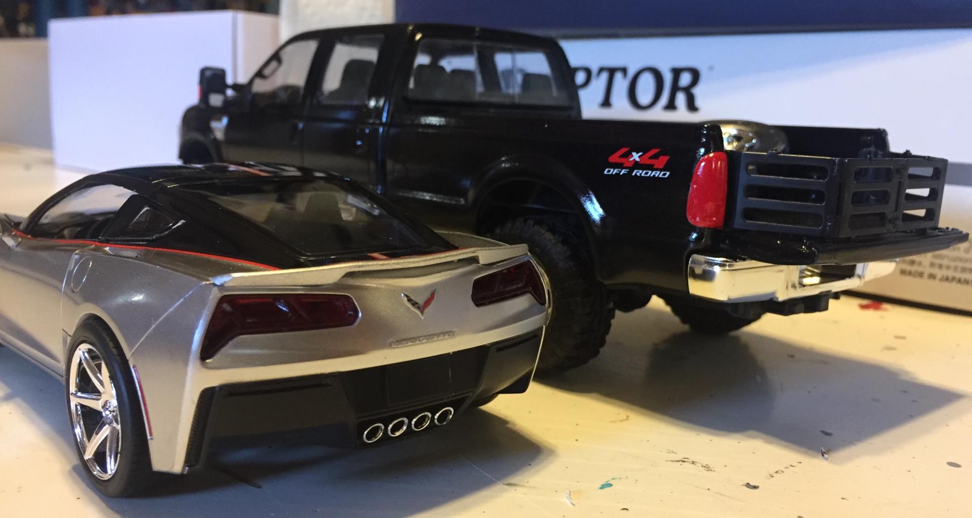 Quick build due to pre-painted body and charcoal gray chassis. Great decals to add the finishing touches. The F-350 is it's work bench buddy build.