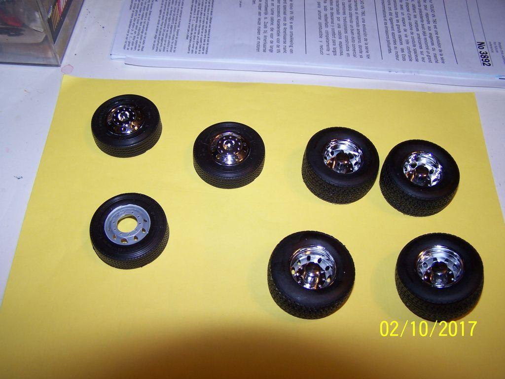 Last week: 1/24 Italeri Volvo VN 780 4 sets of wide tractor/trailer tires ("super saver") Moebius 53' smooth side -