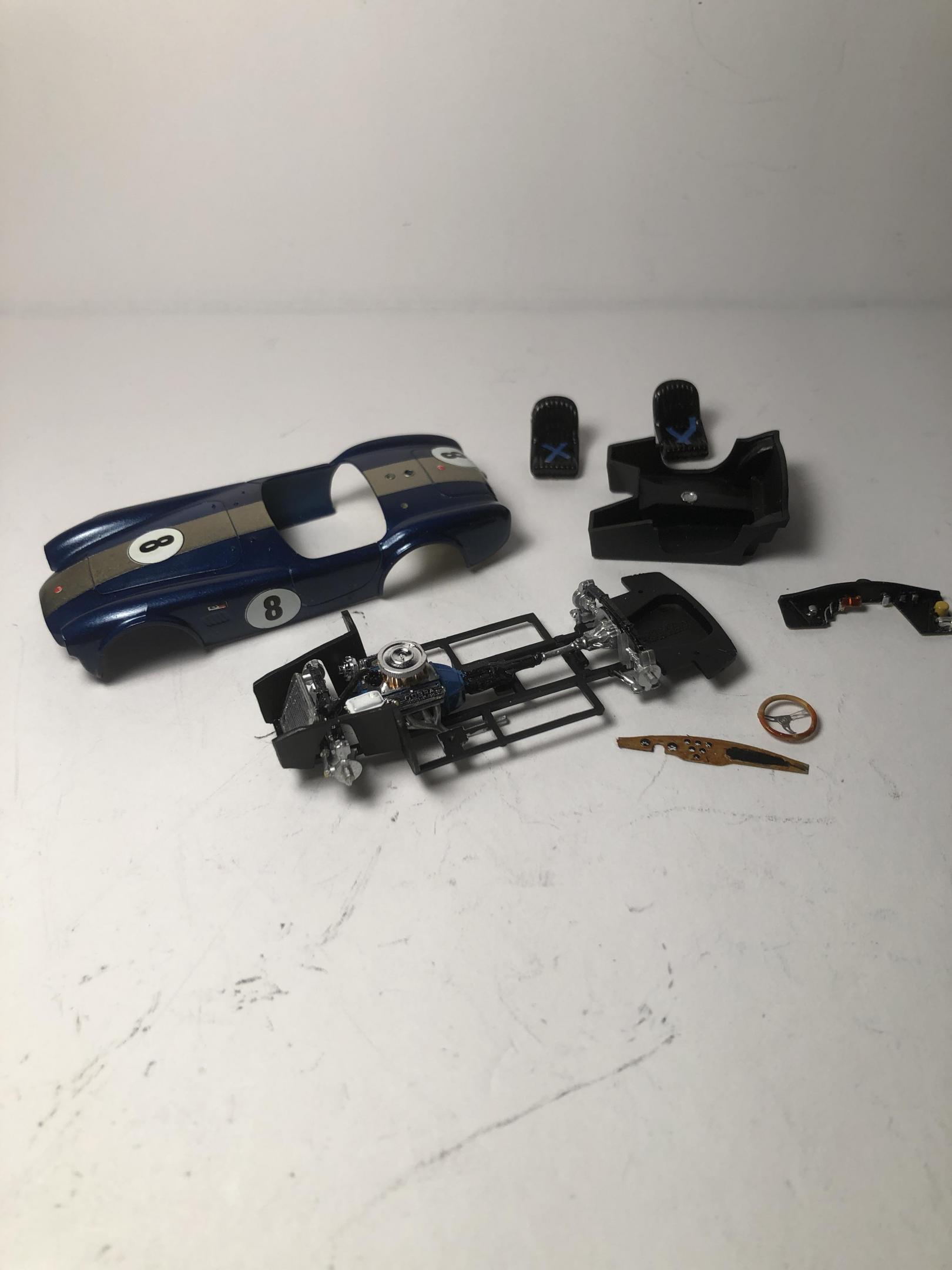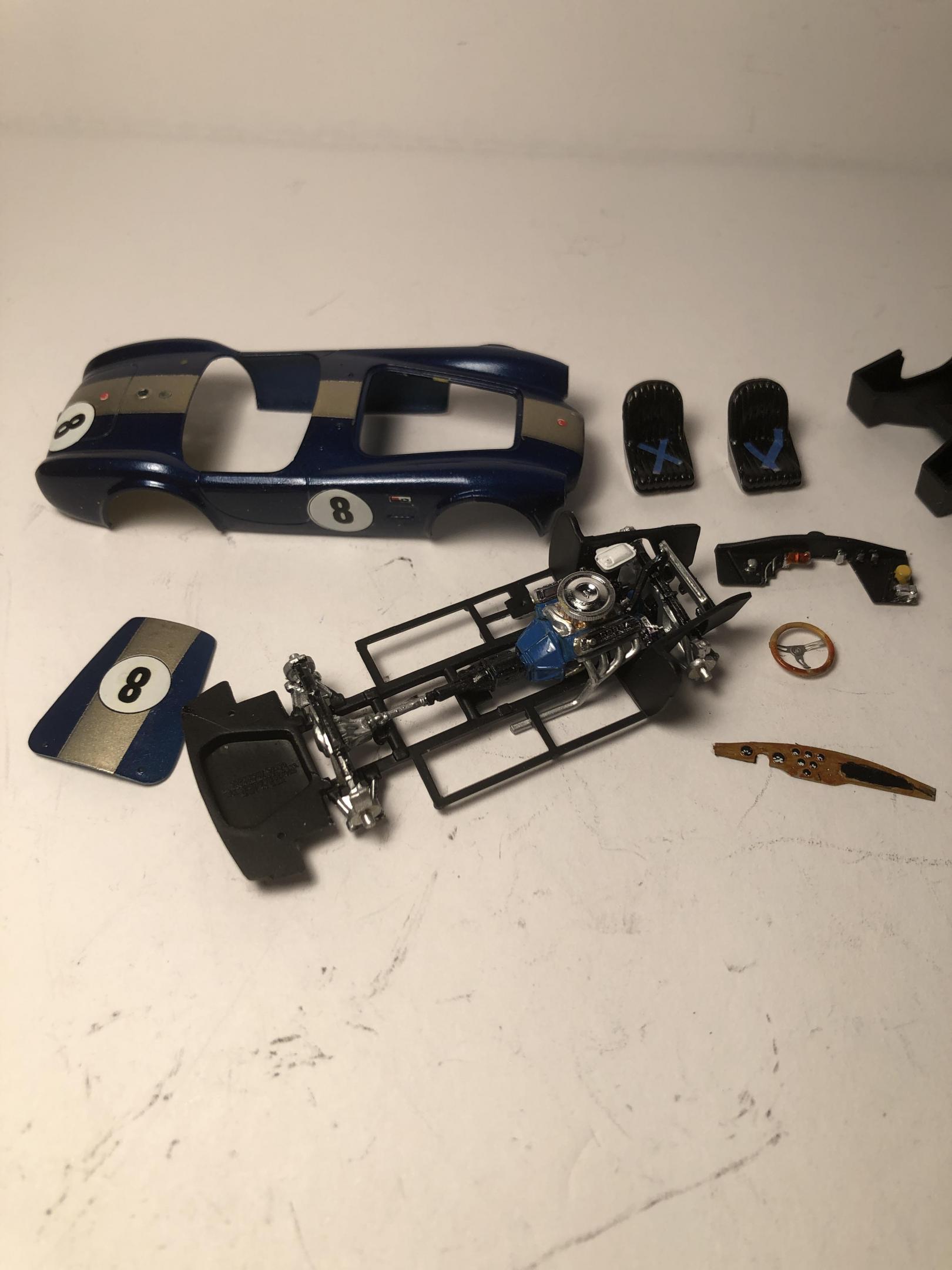 Finished this little kit a bit go . Any white glue you may see is Kristal Klear and will disappear . I love this little kit but this will be the last time I will attempt one . My old eyes had a tough time with some of the tiny PE parts . Painted Pearl Blue with Tamiya paint . Tamiya gold was used as the center stripe . Then cleared . I made a roll bar .