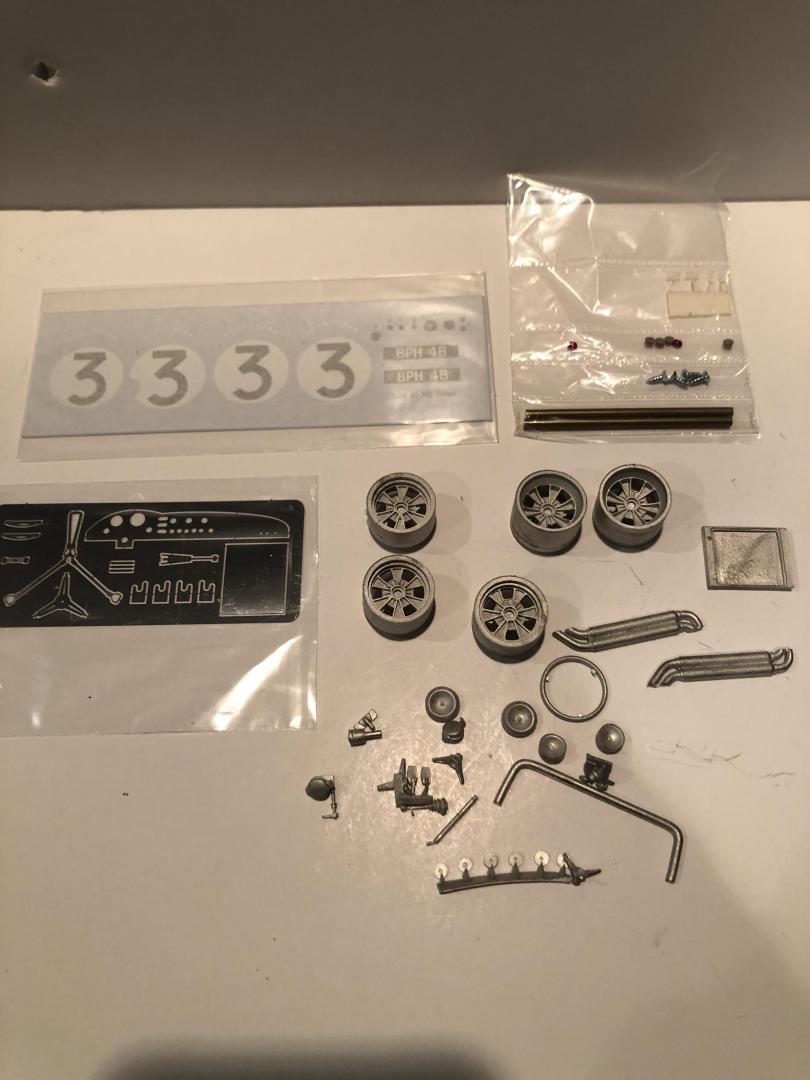 Short look at this resin kit . The body looks great . Nice and clean as is all the parts . No engine or chassis detail , just a curbside . Instructions look pretty simple . Vacuform Windows , nice decals and several metal parts plus nice rubber tires .