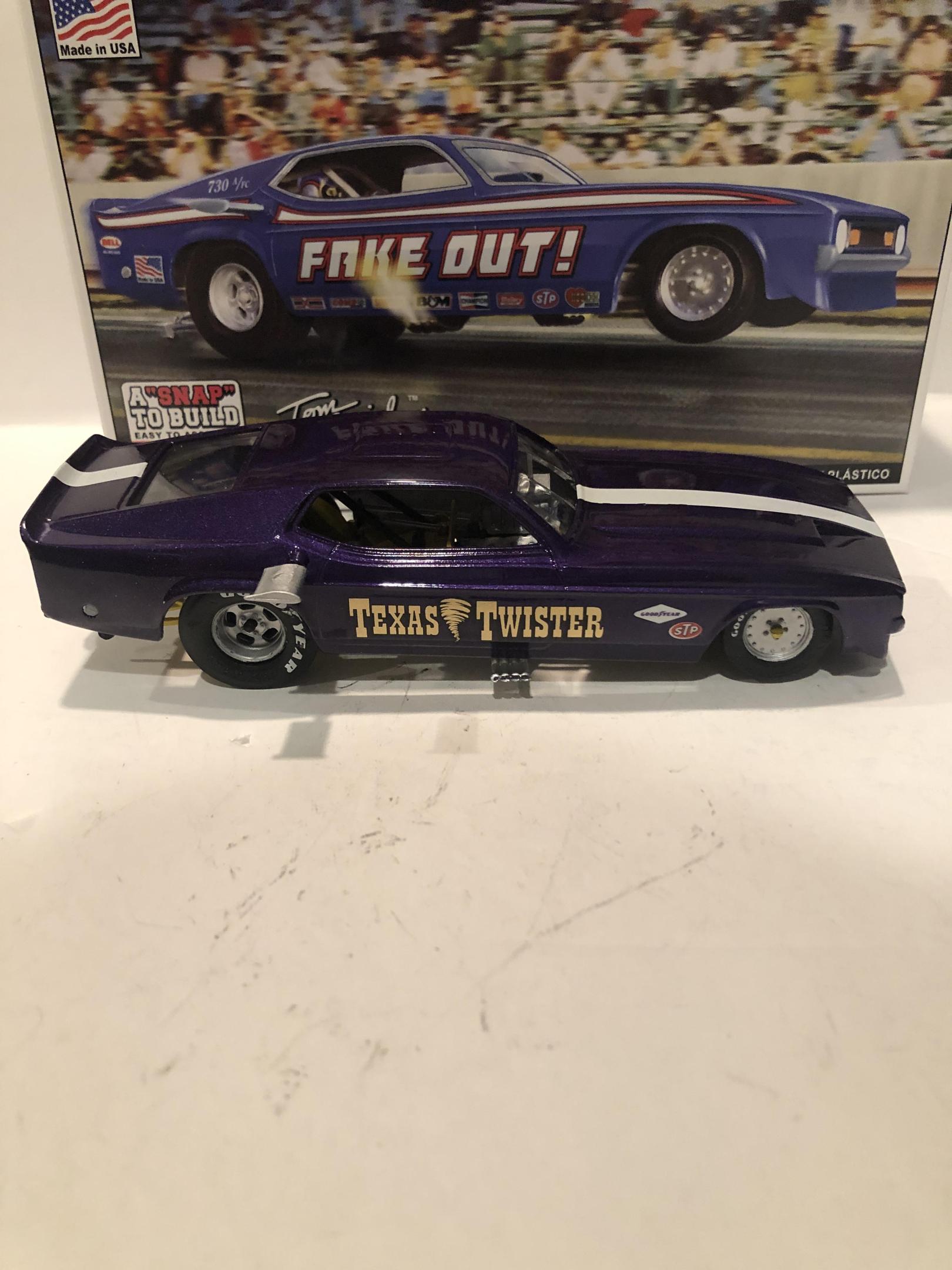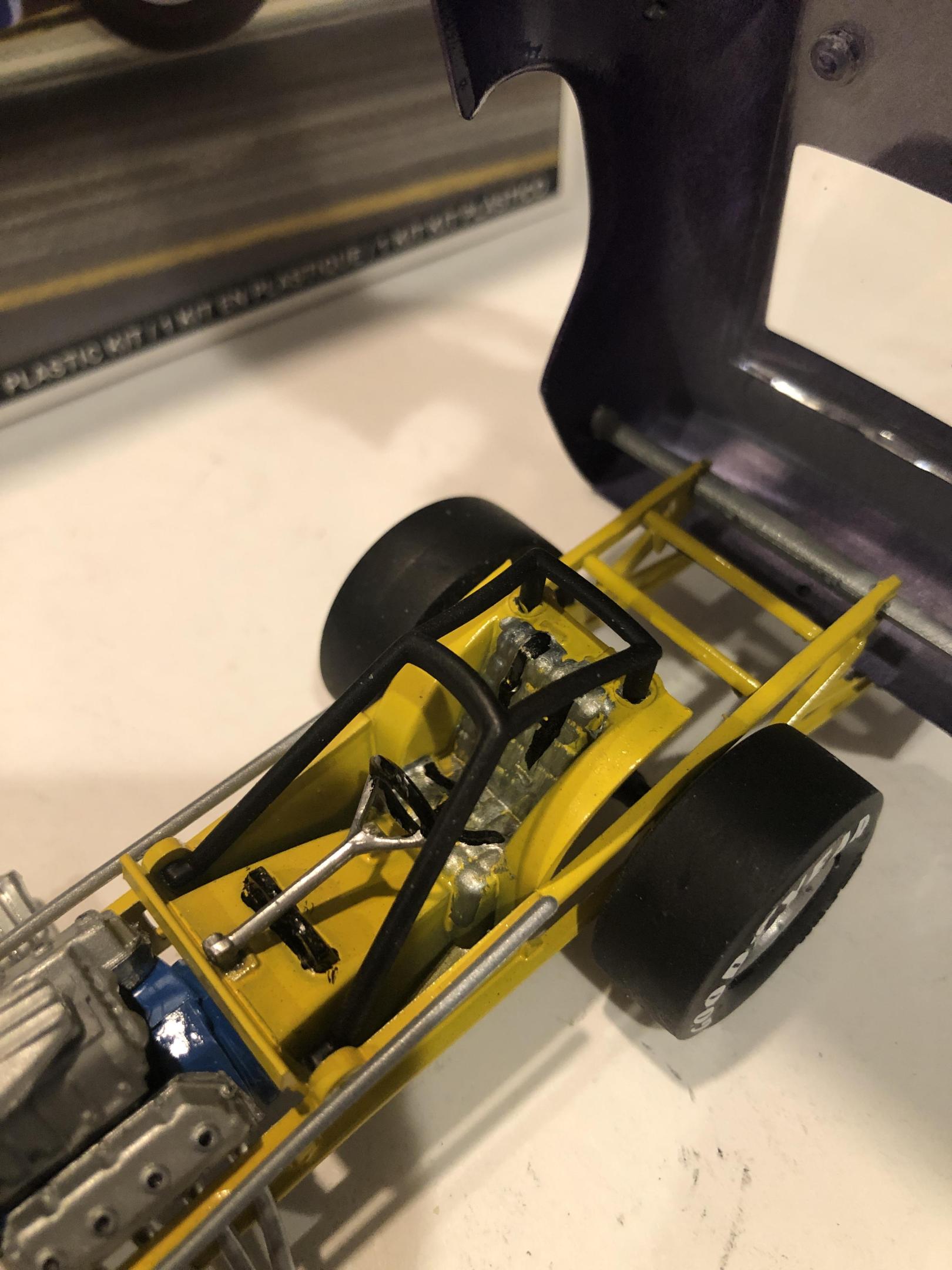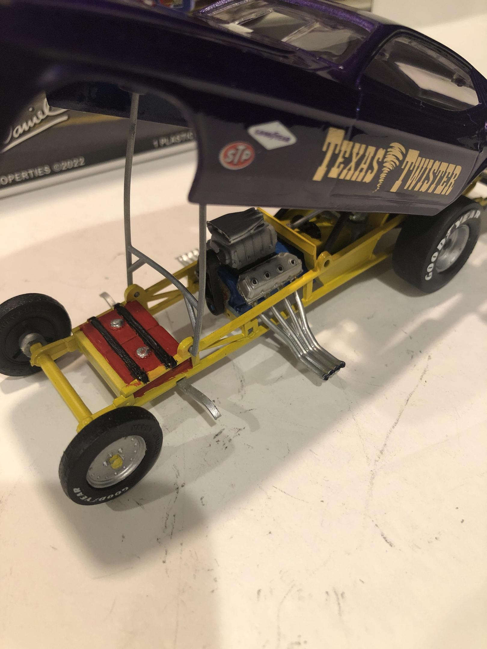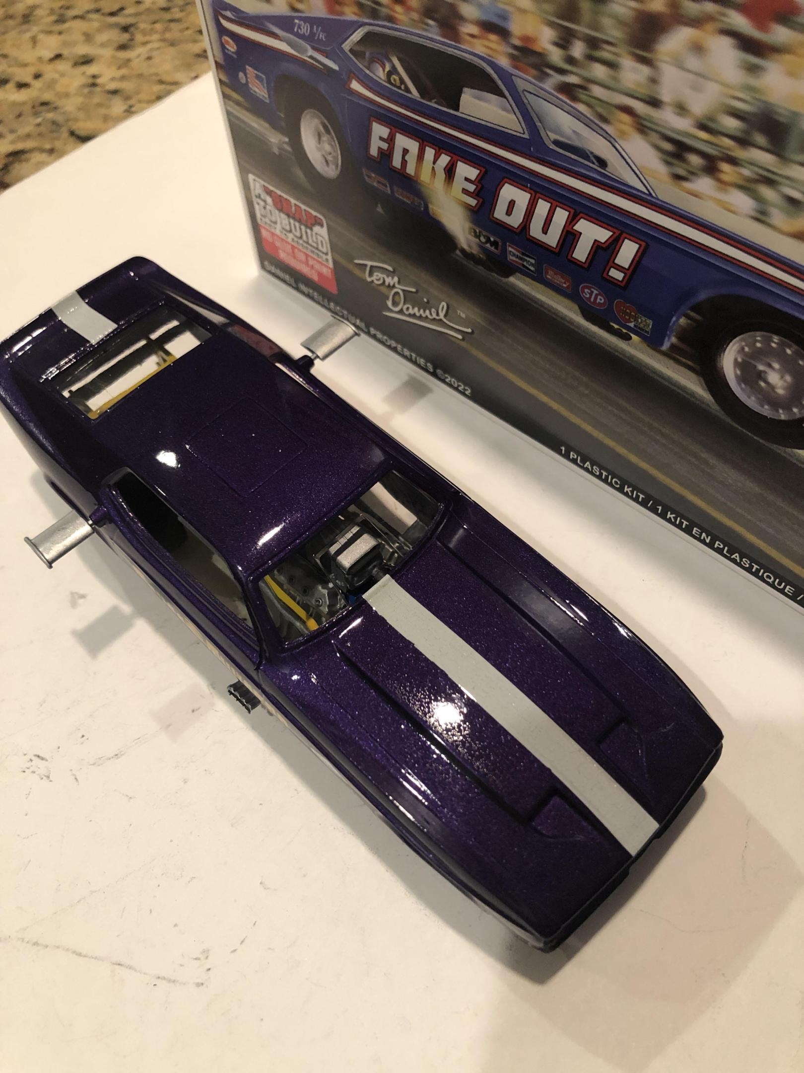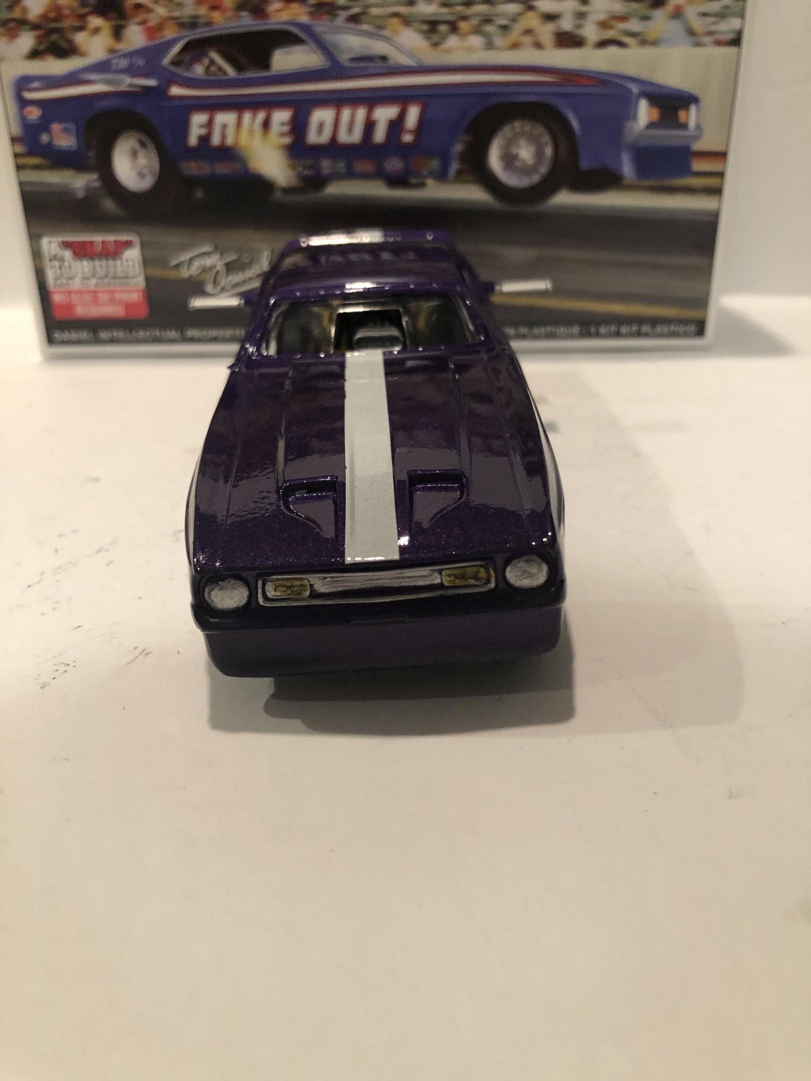 A simple little between project that can be done in days . 3 in this case . Wings are dumb but I thought about cutting the posts off an filling but as I wanted simple and it is for my grandson I passed on that . I did fill the sink hole in the hood a bit . Used some tire decals and other decals I had in my decal box . Paint is Testors Purple with Duplicolor 1 K clear . I pretty sure my grandson won’t grasp the idea of display only and it will be back to parts in a matter of minutes .