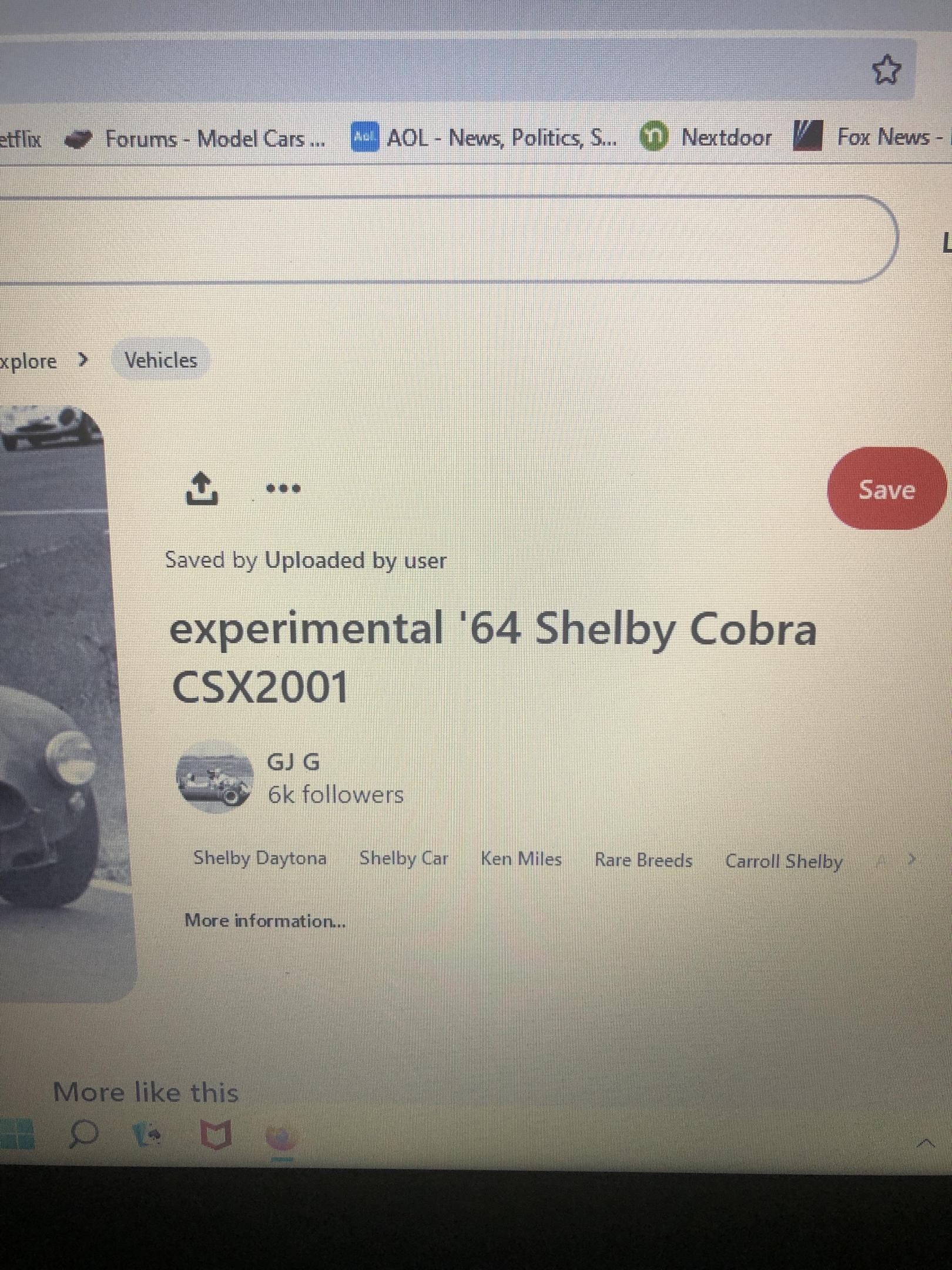 CSX 2001 64 Shelby Cobra when it has the experimental roof on it . Found this one but saw others in the past but can’t locate them now . There was/is a good photo from the rear . Thankful for any help .