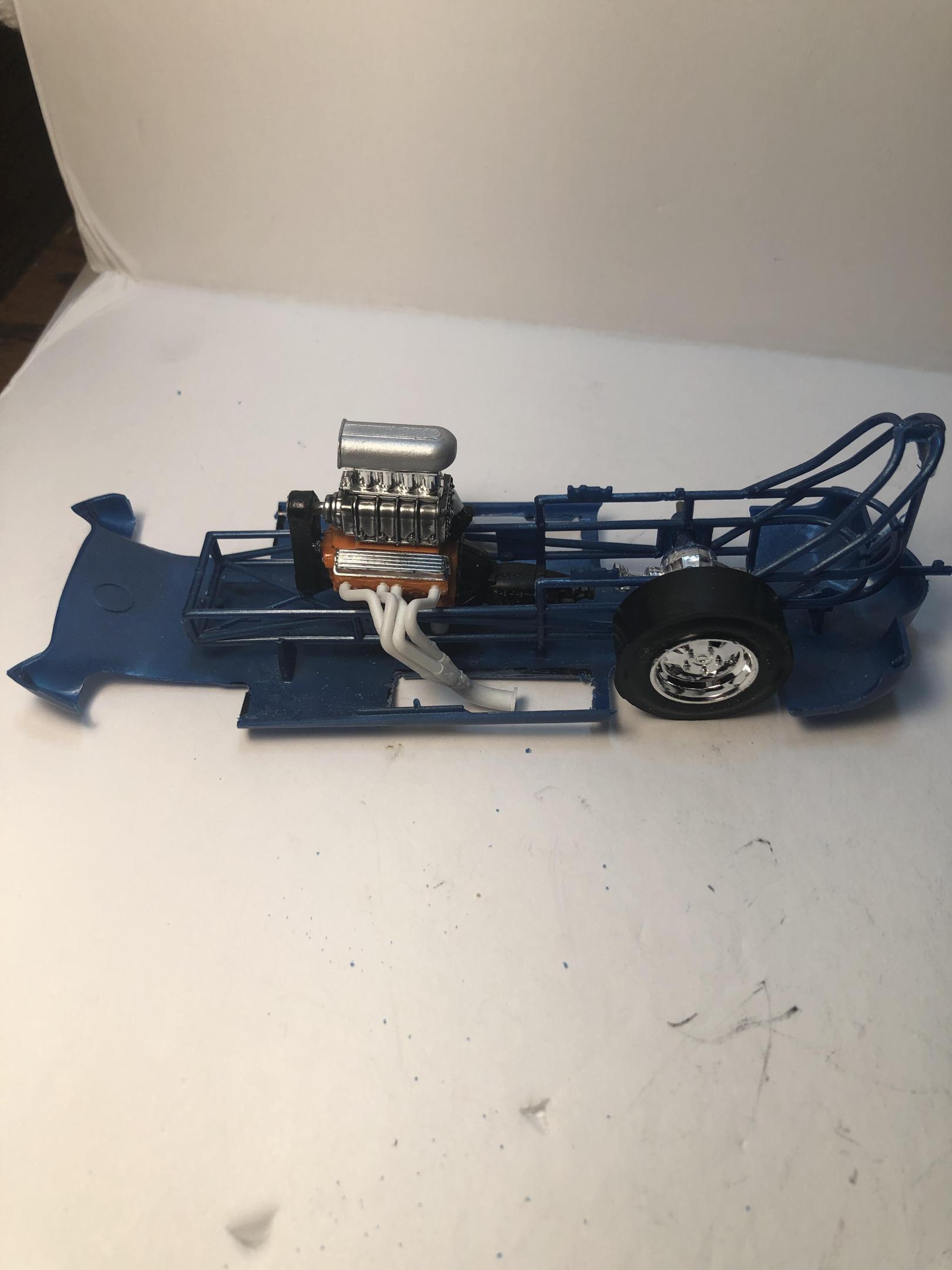 Got this kit off of eBay a couple months ago thinking I would build a replica . I never took the time to check it out . My mistake . Said to be complete but it was not . What to do with the incomplete kit ? I decided just to make a custom and see what I could come up with . Several body mods have been done or will be done . Deciding if I want to open up those rear wheel metal ( plastic ) . Engine will be from the Chevy ll gasser kit . Rest including paint I will make up as I go along .