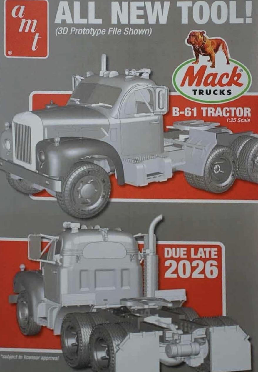 This AMT future release means a lot to me as I own a 1:1 Mack B61. Mine is a 1966 model (last year of production) with a 711 thermodyne, quadruplex gearbox, single drive. Honestly, regarding the integrated sleeper version, I would prefer the aftermarket look after that. Let AMT get the fundamental truck “right”. I’m going to have to use Auslowe aftermarket parts to make an accurate version of Australian versions I’m planning. There’s a few engine options. In my opinion, a 711 thermodyne with a quad box would be ideal. The engine is likely a 673 thermodyne which I believe were more common earlier on in the production run which is what I believe the model is likely to be based on. The set up in the provided picture looks very similar to the First Gear Mack. They’re likely scanning and using the same truck it was based on from what I can tell in the pictures. (See pictures) The options are endless. Some B61 versions even had a DM600 like “fishbelly” shaped chassis. Hopefully they don’t give us that version as we didn’t get them in Australia, but if you want to make that version you could simply use a DM600 chassis. Things I’d like to see AMT do with this project would be separate spider wheels from the rims. Also, have the dash multiple piece so it can be made right hand drive (although the Australian aftermarket will definitely sort that). I’ll get 2 initially, one to build out of the box and the second will be made to my real 1:1 spec in my granddad’s Mack B61 colours/livery. Cheers Ben -