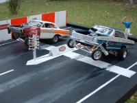 hey guys and girls new here i figured you all might look at what im building these photos are my reference for the dragstrip iv started. its 7feet by 10feet i got the conrtol tower almost done and a speed shop/gas station/paint shop/double service 2bay all in one .grandstands and pit area are next.maybe i should of posted this in the diorama section but drag strip people look here more often. iwill post more progress photos in the near future .thanks