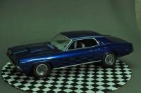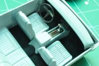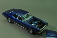 Greetings, This is the first plastic build I have done in 20 years. This was my real car back in 1972 that I saved my pennies for after having blown up the engine in my previous car street racing (that was a 65 Ford Galixey XL with a 427). An interesting story behind my Cougar that you may find amusing (I didn't at the time). After buying the car from a private owner who orderd the car without any of the Eliminator graphics or rear wing (what we use to call a sleeper). I had the car for about 3 months and was fully enjoying it when one day coming home from work I was about a half of a mile from home when I heard this horrible clatter. Nothing like I had ever heard before but I knew it was not good so I shut the key off and coasted as far as I could. I made it about 3 blocks from my apartment and coased to a stop. I got out and popped the hood... everything looked fine there so I looked under the car to see if it was leaking anything... there was nothing out of the ordinary. So I got my buddy and we pushed home. I worked in a body shop and one of my friends I worked with was a mechanic so I asked him to look at it. He was a serious motor head and had a 64 Buick Special that he raced on the weekends. So I hauled the car to him and in a few days he came to me with these little tiny pieces of what appeared to be a threaded bolt of some sort... It turned out the bold that holds the ram air on jiggled loose and dropped down into the carb. From there it went through one of the intake ports and broke up into 3 different pieces. Two of the pieces some how came back up through the intake valve and went into 2 other cylinders. Surprisingly the 3 pieces never touched any of the cylinder walls or did they break or bend the valves. Dan said he could not bieleve all it did was crack 2 pistons and beat the ###### out of the other. Fortunately I was smart enough to shut it down as soon as I heard it. I ended up letting him do a few modifications to the motor as much as my budget could handle. I had a race cam put in it as well as having the heads shaved, a new double pumper Holly carb, headers and a new coil. When all was said and done I was running the 1/4 mile in 11.60 at 115mph. So I found this model on Ebay and decided to make this my first build in almost 20 years. It is pretty much box stock except it didn't have a center consol in the kit (strange) so i built one up. The paint is automotive laquer and I started with a black base with a very light pearl over it. I then used Candy Apple Blue and over that I dusted some Flip Flop blue. The color in most of these shots really don't show off the flip flop and it actually appears lighter blue than it really is. This is also my first time playing with Alclad Chrome. All the chrome has been done with Alclad and I am pretty happy with how it came out (althought I had to redo them 3 times) You can see that I pinned the instructions on the wall behind the car so you can see how smooth it is. I did this pretty much how I use to do my custom paint jobs. Prime and block, Color and block. Clear and block and then rubbed it out with ultra fine compound and then a final rub out with toothpaste and then a rub out with swirl mark remover. I hope you enjoy. Bob