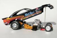 Thanks to everyone for the great responses.Some of you have asked about how I made the decals.I only used Photoshop to make these. I'm in the process of learning vector programs for future stuff. So here is what I did for the Black Magic.First I started with the best profile shot of the car then I took a profile photo and a top view of the model car, in Photoshop I put a transparent layer of the real car over the model body and got em lined up and added a measurement grid over that. That's my master photo. I then used the pencil drawing effect in Photoshop to mak a colorless "blueprint" for the decals. I made scaled prints of the profile and top views, went to Kinkos copy and made 300% enlargements.Using large black posterboard I transfered the images to the board with white chalck paper. I then used frisket paper and tape ,painted the decals with an airbrush. After that I scanned the artwork on a Epson Stylus scanner reassembled and reduced the images to fit back into the master photo. The top of the car was all freehand and french curve templates. I printed the compiled sheet on a Canon Pixma iP4500 inkjet printer using Bare Metal Foil white inkjet paper on glossy photo setting. It seems real tedious but this was the way I came up with not knowing graphics programs. I would really like these to be redone on a proper Alps printer, maybe I could work something out with Chuck Boerne, but I'm sure I missed a few steps in explaining this clearly but feel free to ask me for further clarification if ya need to.