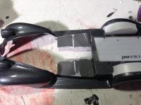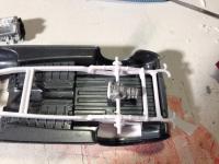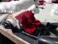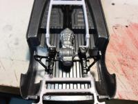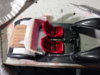 Started looking at the stock Chevy interior and decided it didn't fit the theme of what was happening underneath it. So out came the saw and the styrene started flying. At one point I imagined the beginning of the movie Glory where the soldier was having his leg cut off with a saw and he was pleading for the doctor to stop cutting, can styrene feel pain? I figured that I have already stretched my skills to their breaking point so why not complicate things more? I cut the stock interior out from the base of the Chevy. Then I removed the cockpit from the Enzo and began slicing away at that too. I think the Enzo dash will look pretty decent in this car... Eventually. The last project from last night was to remove the rumble seat from the back and re-skin the back seat area flat. I will be utilizing this space for the battery and a nitrous tank... Why not eh?