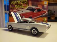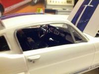 This kit is a Revell 1966 Ford Shelby GT350. When I picked up the kit at Hobby Lobby, I bought some Pearl Green airbrush paint for it. Upon opening the kit I saw the blue racing decals and decided white was the way to go for the body color. I really should have went back and got Pearl White airbrush paint, but I rattle-canned it gloss white and applied several coats of gloss clear over it. This kit went went together really well and I did a better job on the dash panel than usual as my hands are not very steady. I really enjoyed this kit and thought it turned out pretty well. Thanks for looking.
