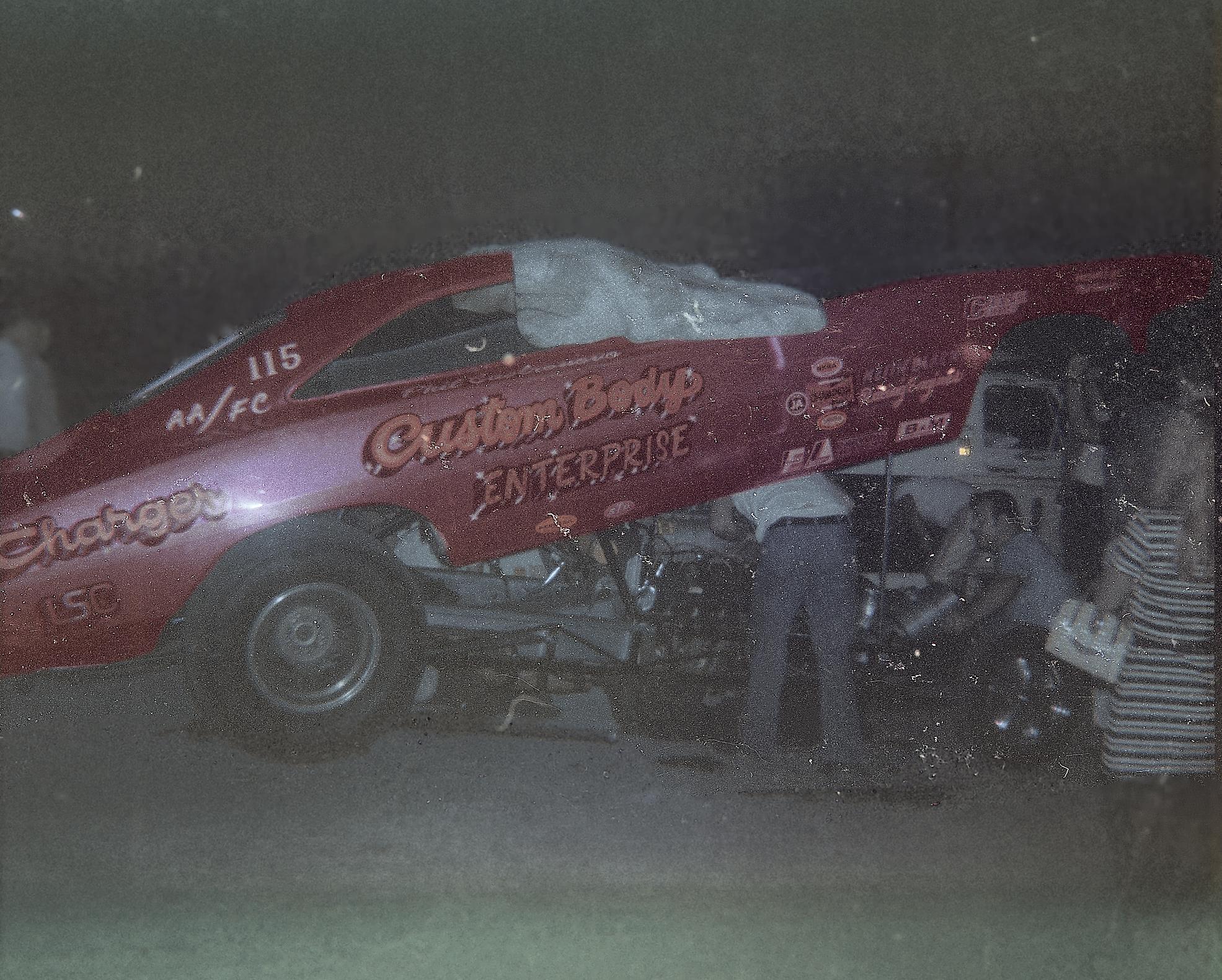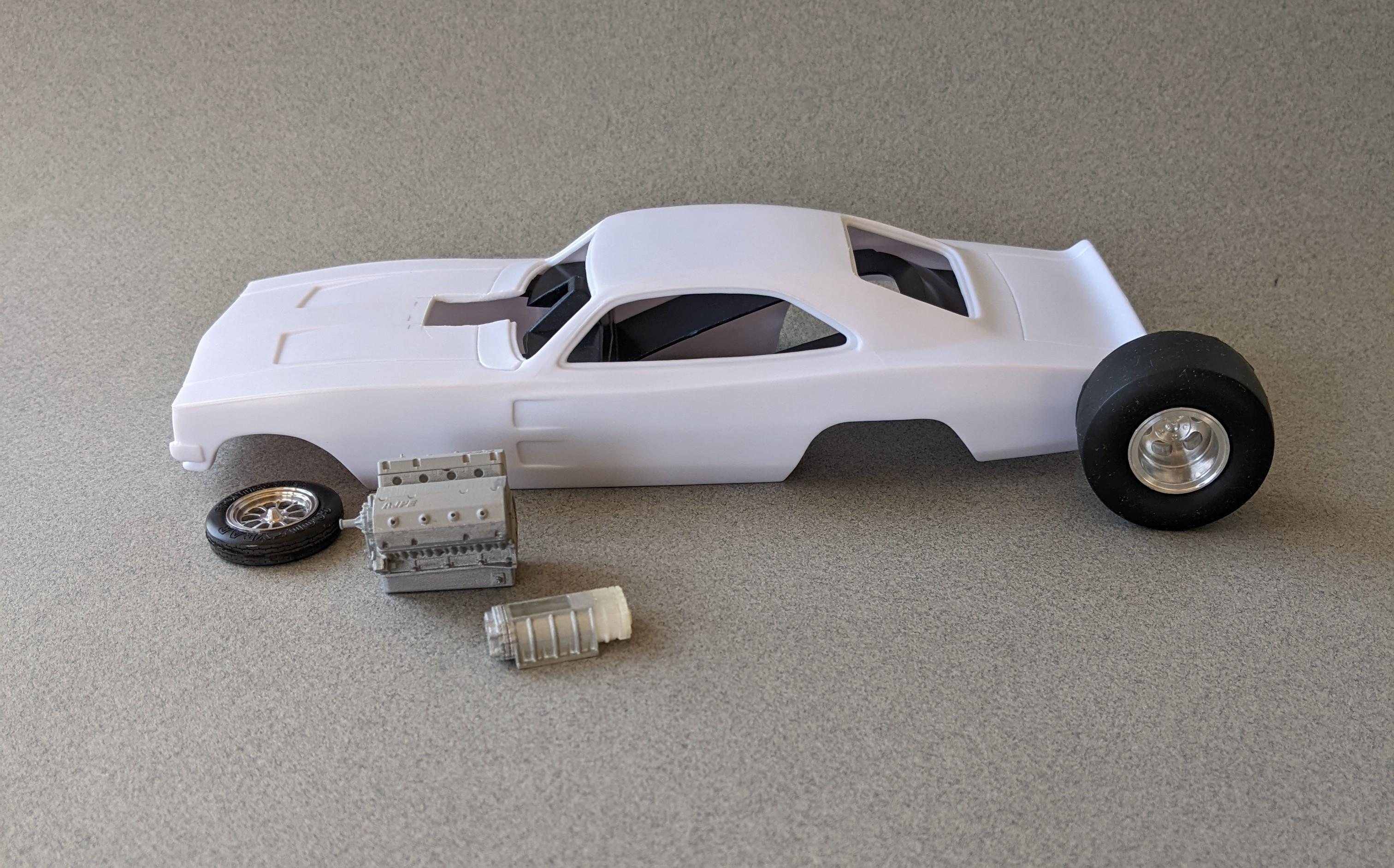 This build will be a nostalgia car with a narrow frame, Hemi engine with single plug/cylinder, etc. Inspired by the first nitro cars I saw in the early 70s at Utica-Rome Speedway in upstate NY. The original car was based in Utica. The body came from an ebay find, the 3D printed engine, rear slicks, rims and front rims donated by my good friend and master builder Codi. The chassis and engine is somewhat modeled after the Stone, Woods, Cook Mustang F/C. The dark nighttime image is one I took at that race at Utica-Rome. The car he ran against that night was Paula Murphy's STP Duster. The race that got me hooked! Now my son, grandson, and I go to Maple Grove every September.
