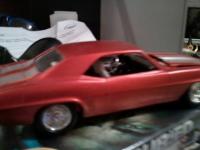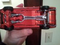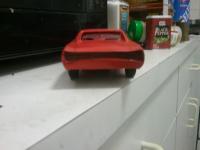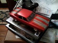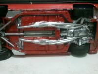 ok so this one i know is a bit of a "bomb" i had this GTO kit laying around half complete since i was about 9 (im 22 now) i recently decided to finish it. i also had a 66 cobra kit that i bashed it with. this is the first time i tried any major custom touches and scratch built type of stuff. so please look past the bad paint :| as you can see i wedge chopped it, built custom roll pans front and back, removed all posts, lowered it, costom suspension, including a triangulated four bar, super long tube headers lol. and a custom interior. probably some other stuff im forgetting about. be gentle lol