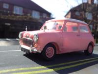 hi i just finished this build. i built it for my girlfriend and she wanted it in pink so here it is. its a box stock tamiya kit apart from the dice on the rear view they are an eyebrow piercing ring.why not! i thought id do just minimal weathering to it so i just airbrushed a dirt shade around the bottom part of the car.