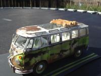 hi everybody. This is my finished samba bus. its the revell kit in 1:24. im not at all impressed with this kit at all. The roof was badly warped and the fit was very poor in places. but I've done my best with it and here are the results, hope you like it. it was all box stock exept the reg plates are made out of beer can to get the thickness correct. ( thats my excuse anyway) i left the inside clean as i like the look of it better that way.