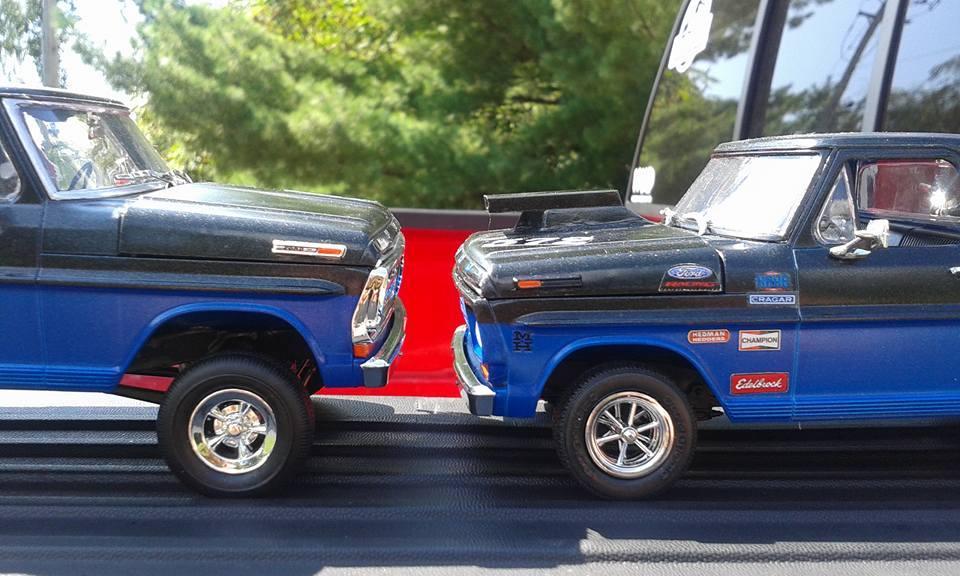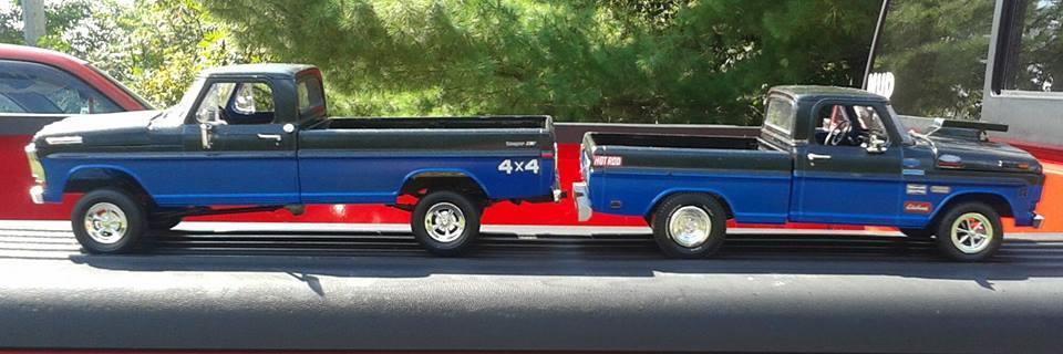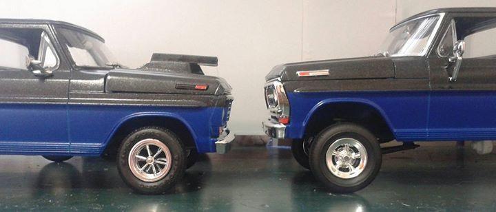I'm finally back to making a topic. Here we have my project that i am almost done with, pretty much just need to make license plates and find a trailer so the 71 can to the 69 around. The 69 is a 572 ci drag truck with dual carbs and the 71 is just a stock 390 converted to 4x4. Also gotta put the shocks on.