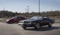 Hi all, Just wanted to share an old model I dusted off and photographed with my real car in the background (2007 Honda Civic Si Sedan). Perched the Trans Am on a gray board, did a little photoshop to blend the board into parking lot. I really need to build a nice realistic parking lot to match better. I made this model sometime around 1980.