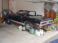 My neighbor owned a '68 Shelby Mustang convertible (GT350). I was a young teen when I first saw it and thought it looked like a Mustang, but with funny grill and tail lights. He kept that car garaged for about 30 years and recently sold it. It was in stock condition and probably needed restoration, but he got $70 grand for it! I visited him a few months before he sold it. It was awesome to get to check it out one last time. That was in 2006. Here are some photos. I was thinking of trying my first "modded" model and take one of those Shelby Mustang (fastbacks) kits and cut it to make a convertible and replica of my this. -