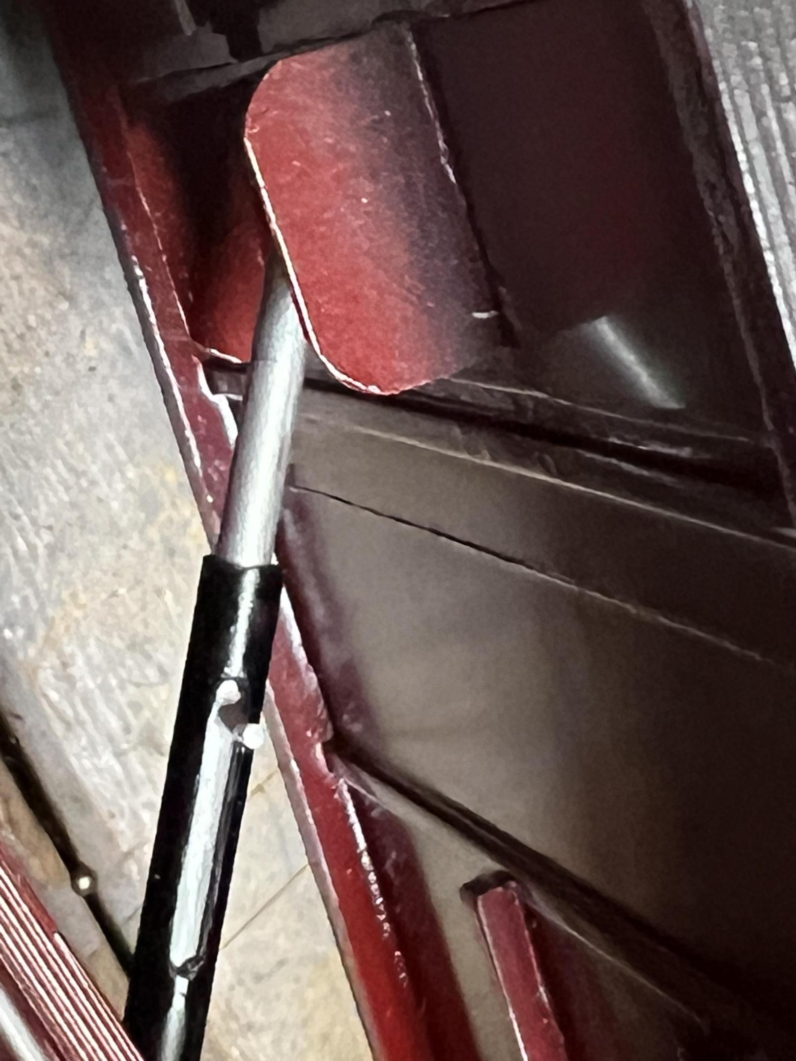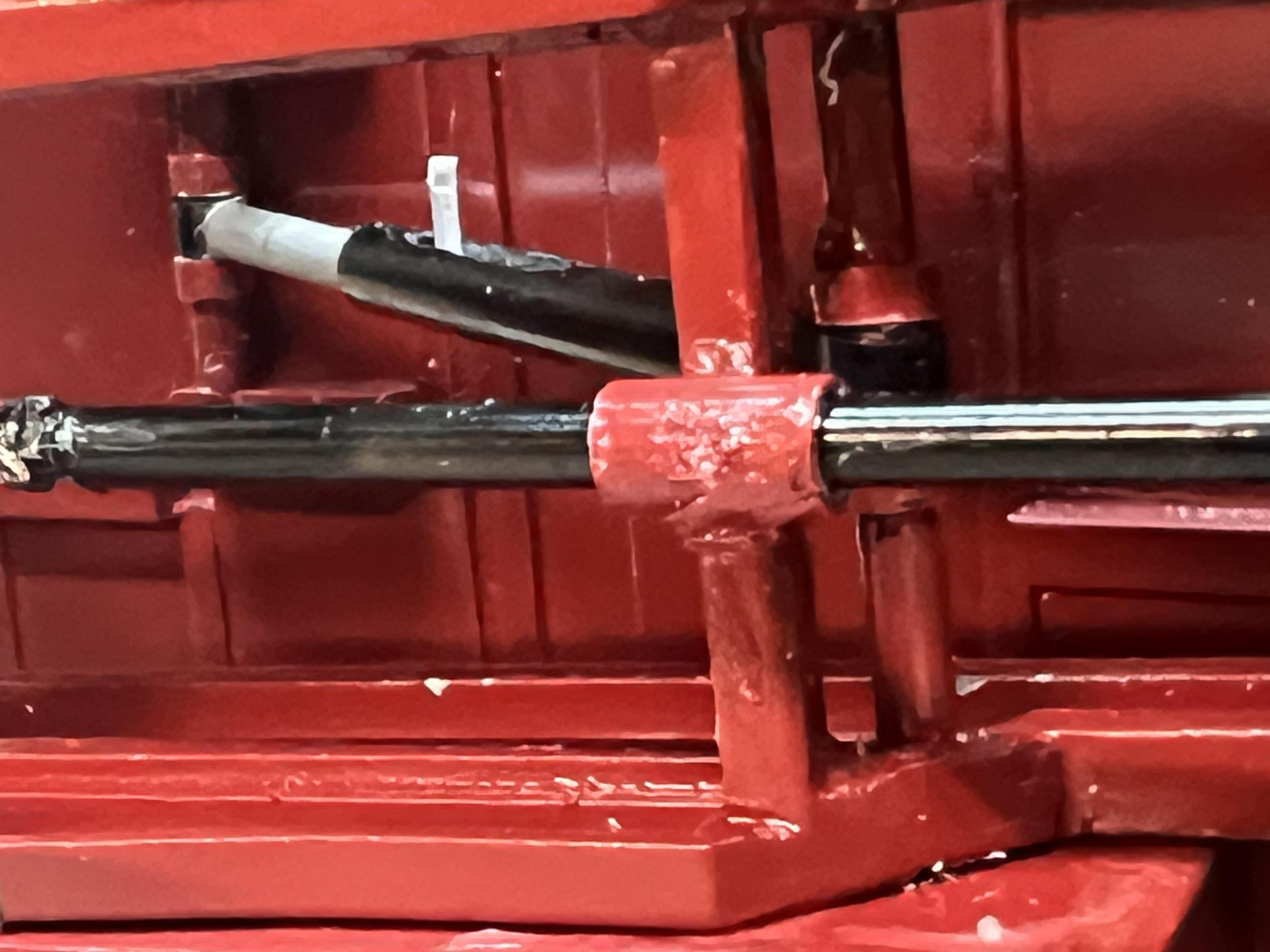 Here are three pics i I started with a 3/16 tube and a 1/8” rod.Then two narrow (1/16) sections of the tube were cut. One mounted 90 degrees to the end of the tube and on to the end of the rod creating “eyes” I could pass rod through going from side to side of the frame and the bed. To limit the extent of the rod travel inside the hydraulic tube to prevent it from coming out I made a slot in the tube and drilled a peg into the rod. I hope these help -