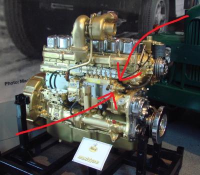 18. Here is the location of the air compressor on the ENDT 675 Mack gear driven early style...............................Mark