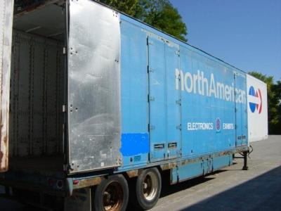 20. The "white thing" under the trailer is indeed a loading ramp,more commonly called a "walk-board" by movers,i was leased to Atlas Van Lines for 23 years. The trailer pictured is an older model,newer moving van ramp carriers are now fully enclosed,the underhang under the trailer is commonly called a "belly-box" used for storage of the ramp,plywood,decking bars,extra equipment,etc............................Mark