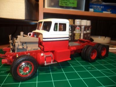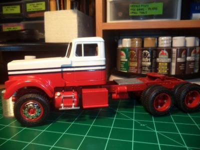 AMT White Road BossMackvision replied to Mackvision's topic in WIP: Model Trucks: Big Rigs and Heavy Equipment Finally have some updates on the Boss to share! I got the cab/hood re-painted and decaled last night,got everything mocked up for final assembly. been a long uphill battle with this one! if I never see a set of these mirrors again,it will be too soon! they sorely tested my patience I ended up stripping the chrome and will repaint them with Alclad,the attachment points were just too bad and looked terrible when assembled..Same thing with the grille and cab marker lights. Well,here are a few pictures of my progress!........................Mark