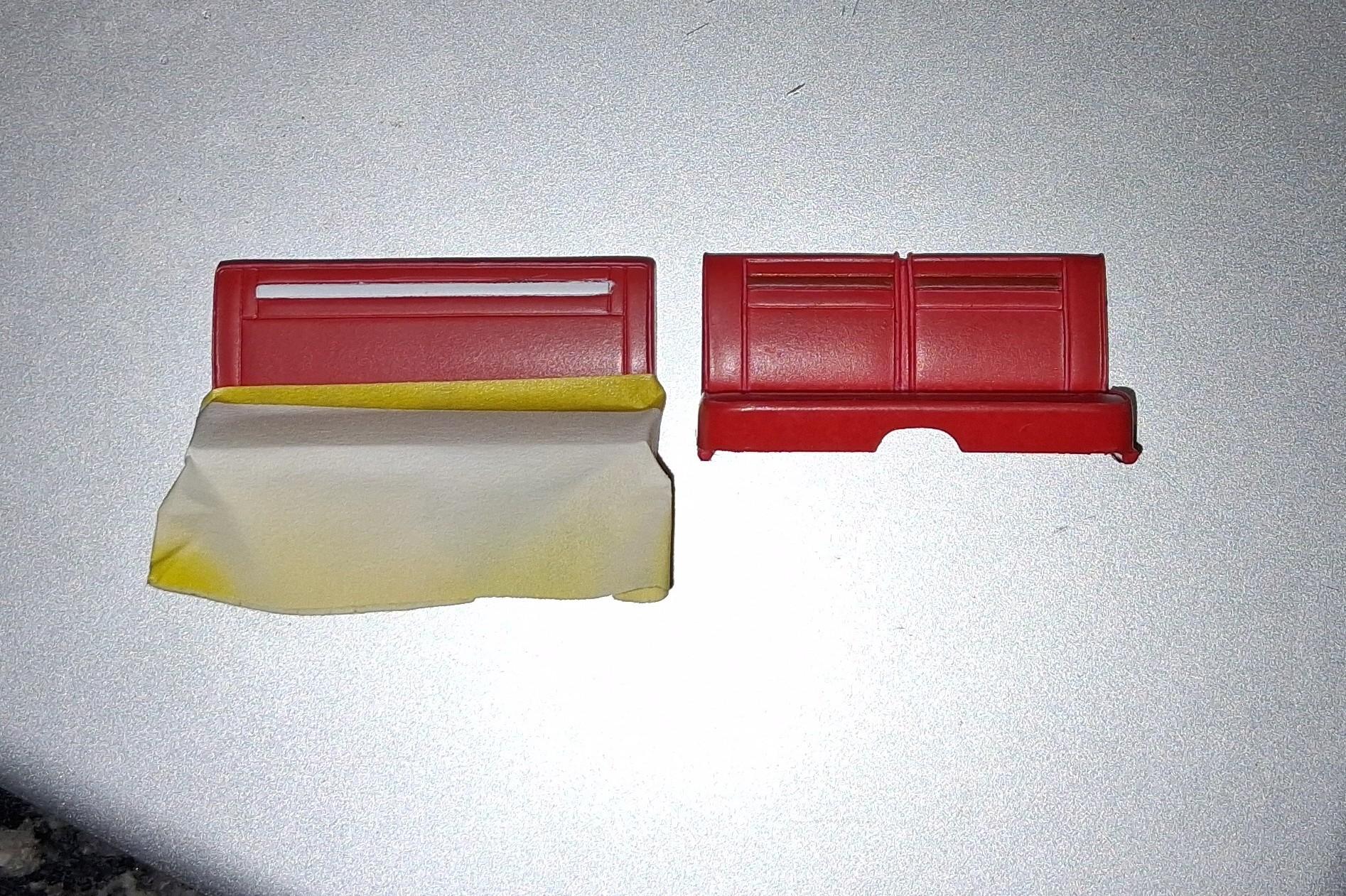 A minor set back Found out this morning the seats are supposed to have a white band where I had painted dark red stripe. Where as the dark red is in lower band. After some struggling with myself I decided to correct it. Aka not fun.