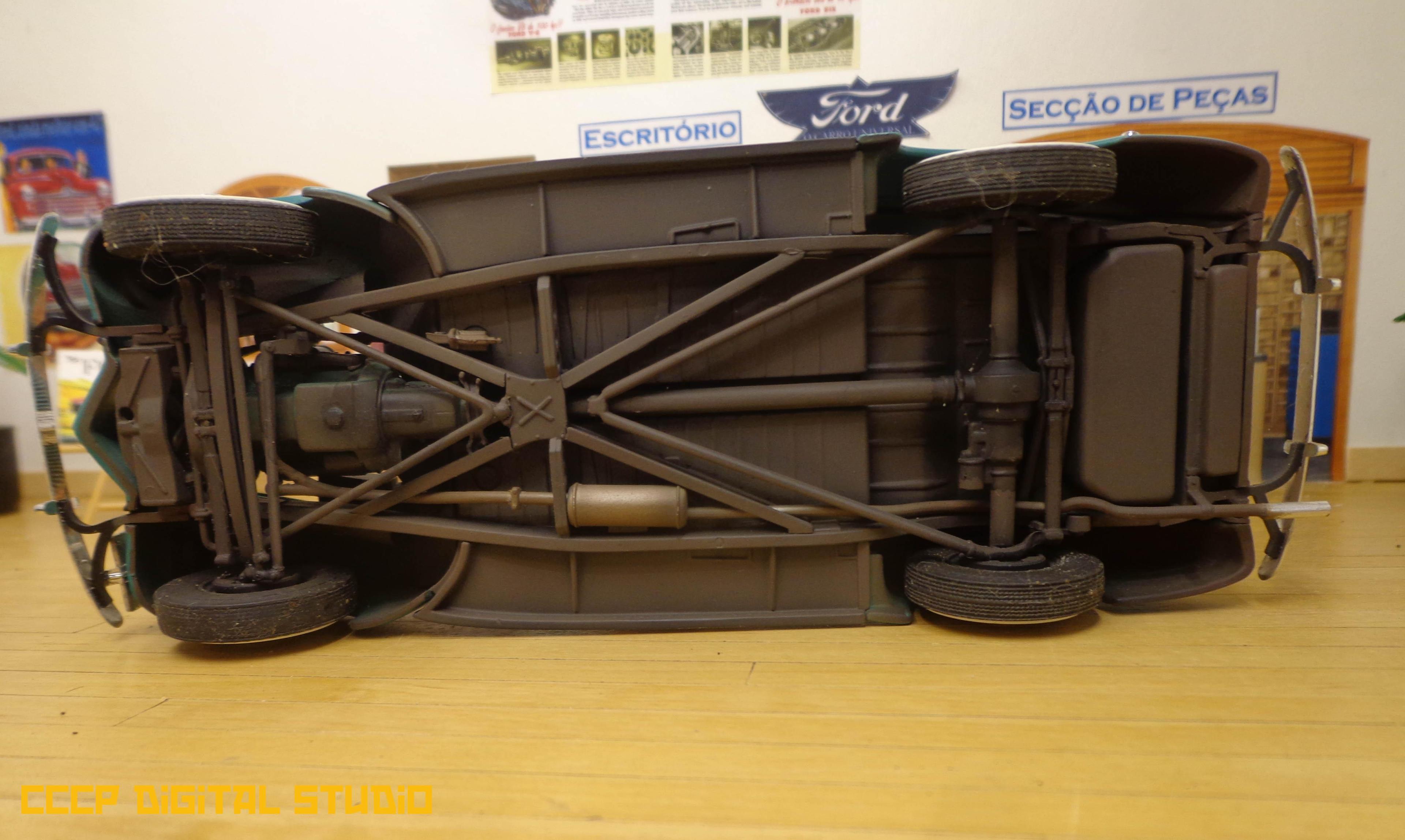 Another one I was able to buy back. The model car collector that had it installed red wheels and wide whites. I liked that. Decided to leave as it is. All weathering was done by brush over a flat black base. This car is made out of parts I was going to trow away, so it's kind of a mix. AMT body and frame, Lindberg fenders and interior.
