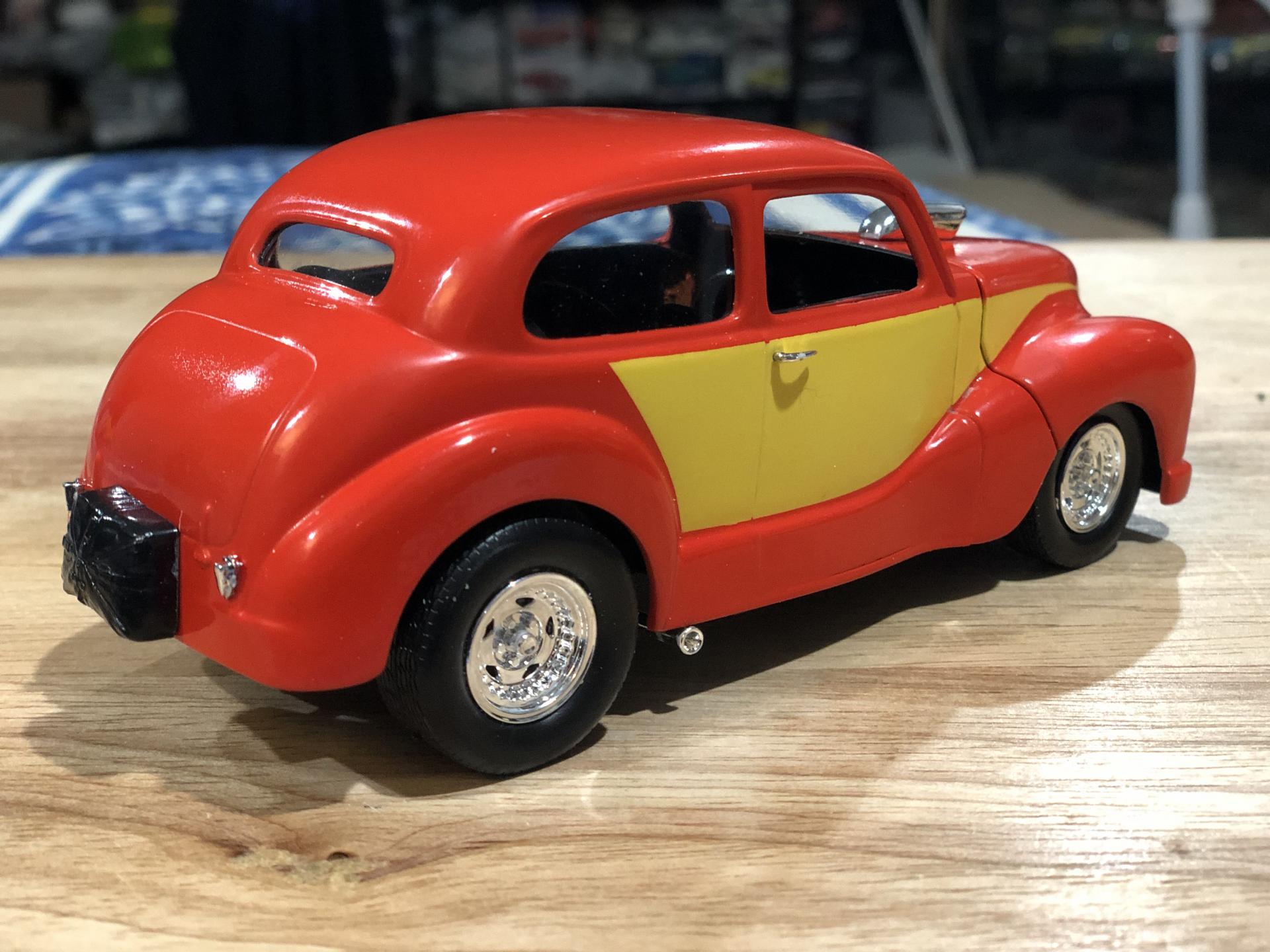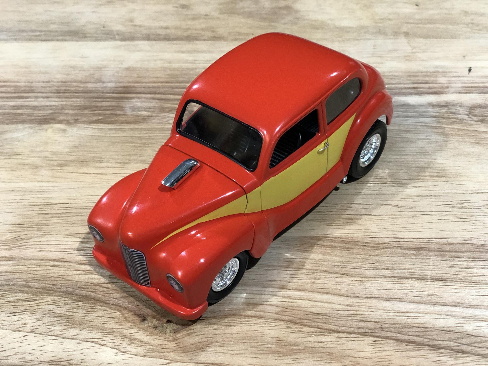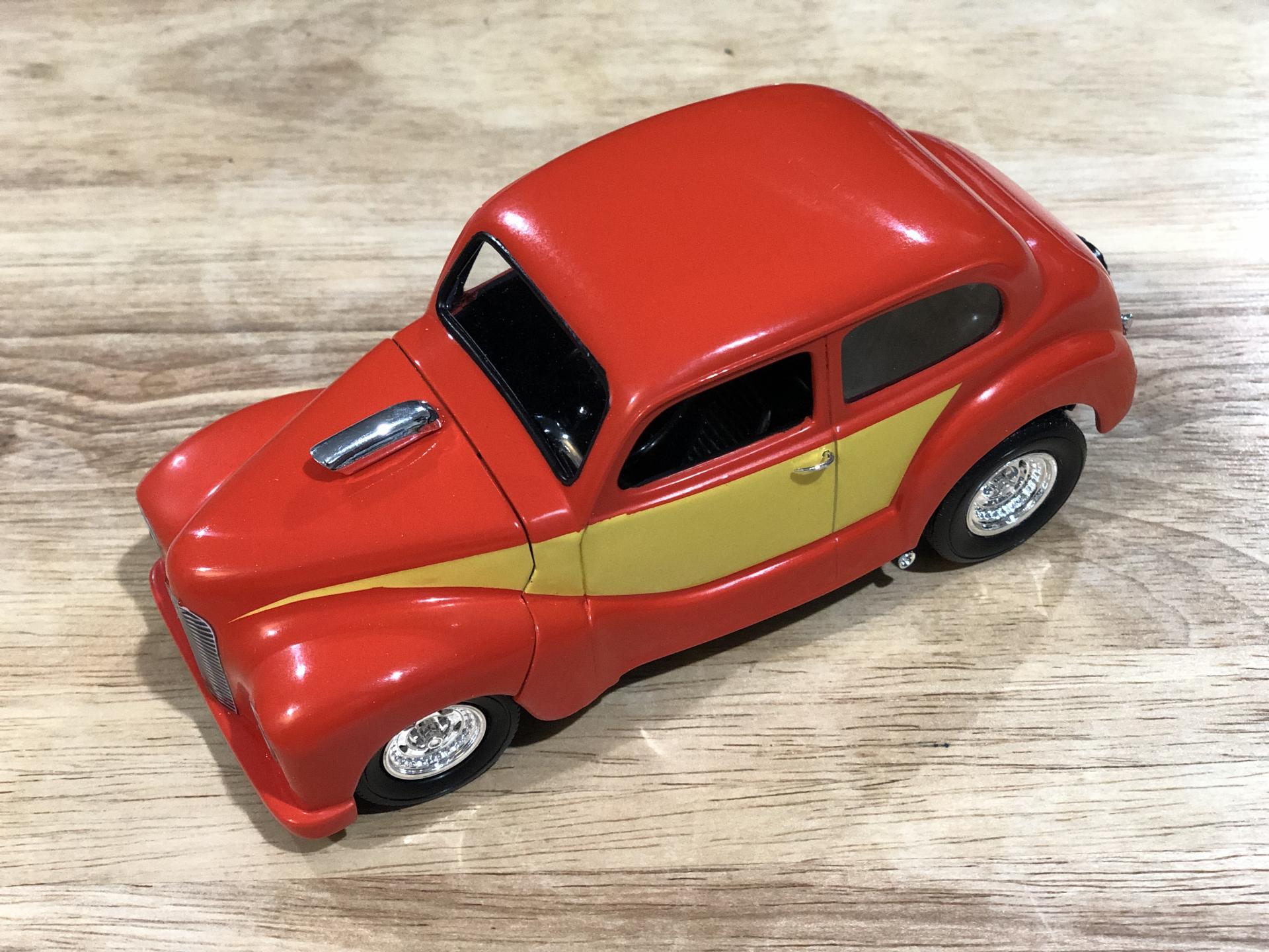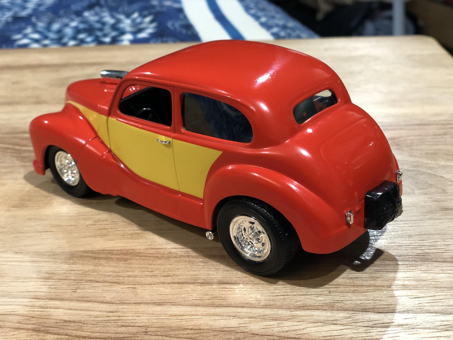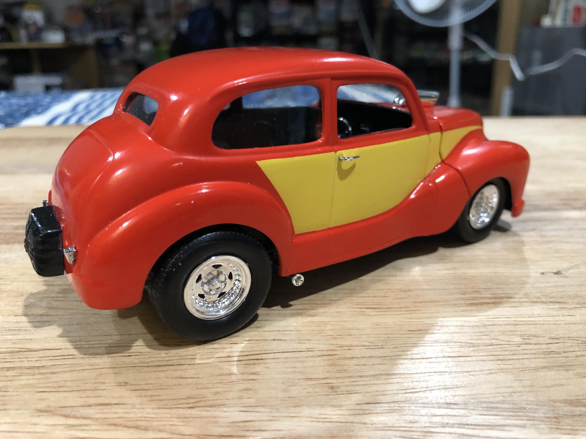 Revell Drag Austin... I've got a soft spot for slow English cars. So now I'm going to "restockify" this Austin. Gluing the doors shut because I hate hinges... New seats, new wheels, smaller diameter rear wheel well, taillights, grille... Cosworth 4 cylinder engine? Hmmm.... Here's what I'm starting with.