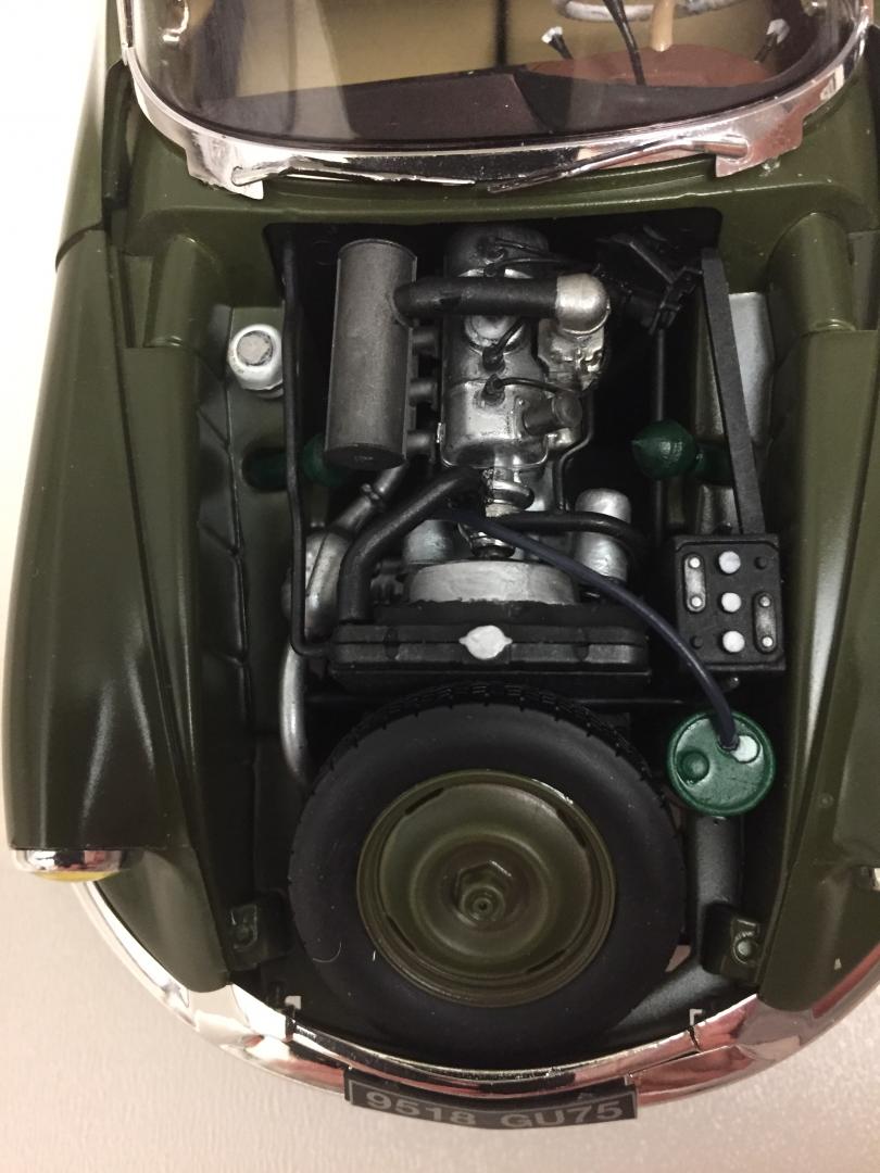 I needed an antidote to all the chrome, candy and flake I've been using on my recent builds. weathering makes a nice change from polishing. It was fun. I shall do more. I wired the engine and detail painted it. I don't know why. It can't be seen, now the body is on. I just enjoy the whole process, I guess. there's a bit of junk chucked in the back and in the cab and some delinquent garçons have tagged it, while it sat in a Paris suburb. a while ago, the tail light lens was broken. The lens hasn't been replaced and a bare bulb now shows. A Gauloise was lit in its honour. The note on the windshield says they're at lunch,( which is from about 11am to 4:30 pm. Longer, if it's wet/cold/hot or a weekday.)