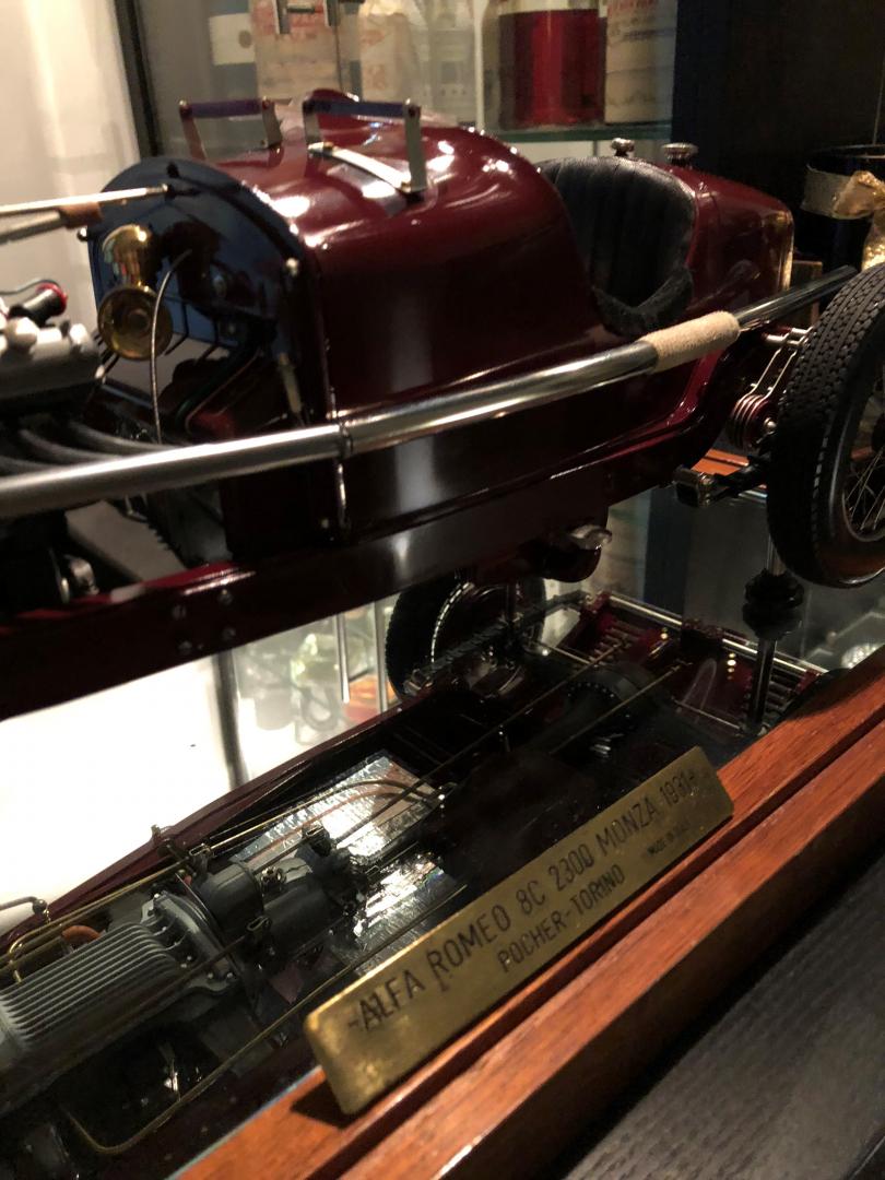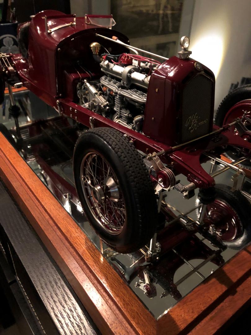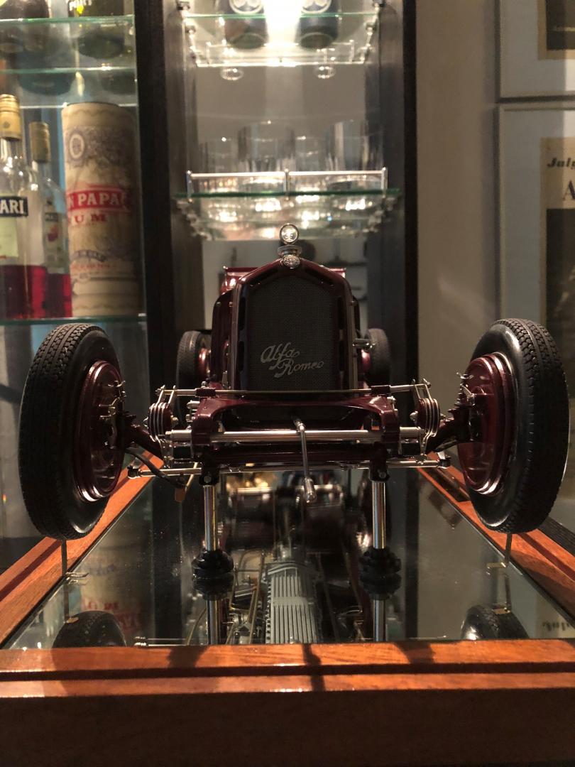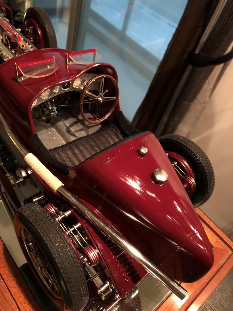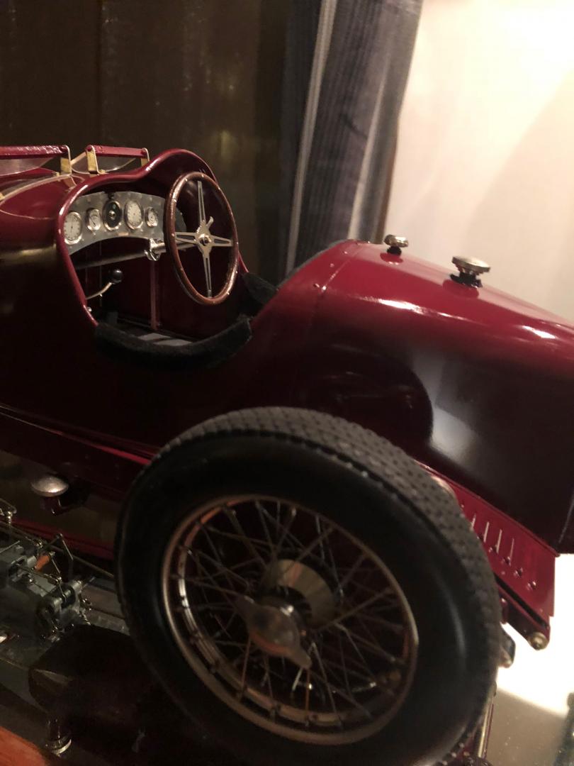 Hi , this model was built in 1968/69 in Torino ( Italy ) factory of Pocher . Then was display in the French Capital famous toy shop ( Gallerie Prinptemps Haussman ) , the grandmother of the person I bought it , told me it stay in the family shelf of at least 4 decades . It was an original model with the fender , basic red, if you are expert you will notice the display case identical as some pictures of the line production at the time in Torino on some Pocher website telling the history of the company. bought it in 2016 , brought it back in Dubai , and dismantle it , first time I was doing a model ( and a Pocher not a easy task at all for a beginner. ) luckily it was built buy the factory , so the quality of built was quite good. proof it was still standing straight ( except the wheels, , heavy to support) after 50 years . I decided to to the model on a more racing mode , without the fender , and front lights, and painting it in the dark red of Alpha Romeo at that time , ( a Mr .Enzo was a test pilot on those beauty ), Ferrari was the sport department of Alpha Romeo , who will became later the Scuderia . - grey primer was first then I repainted it with Tamiya spray can . - dashboard and floor cabin in Aluminium . - upgrade with black leather seat . - steering wheels upgrade from modelmotorcars. Hope you enjoy this little peace of history . John
