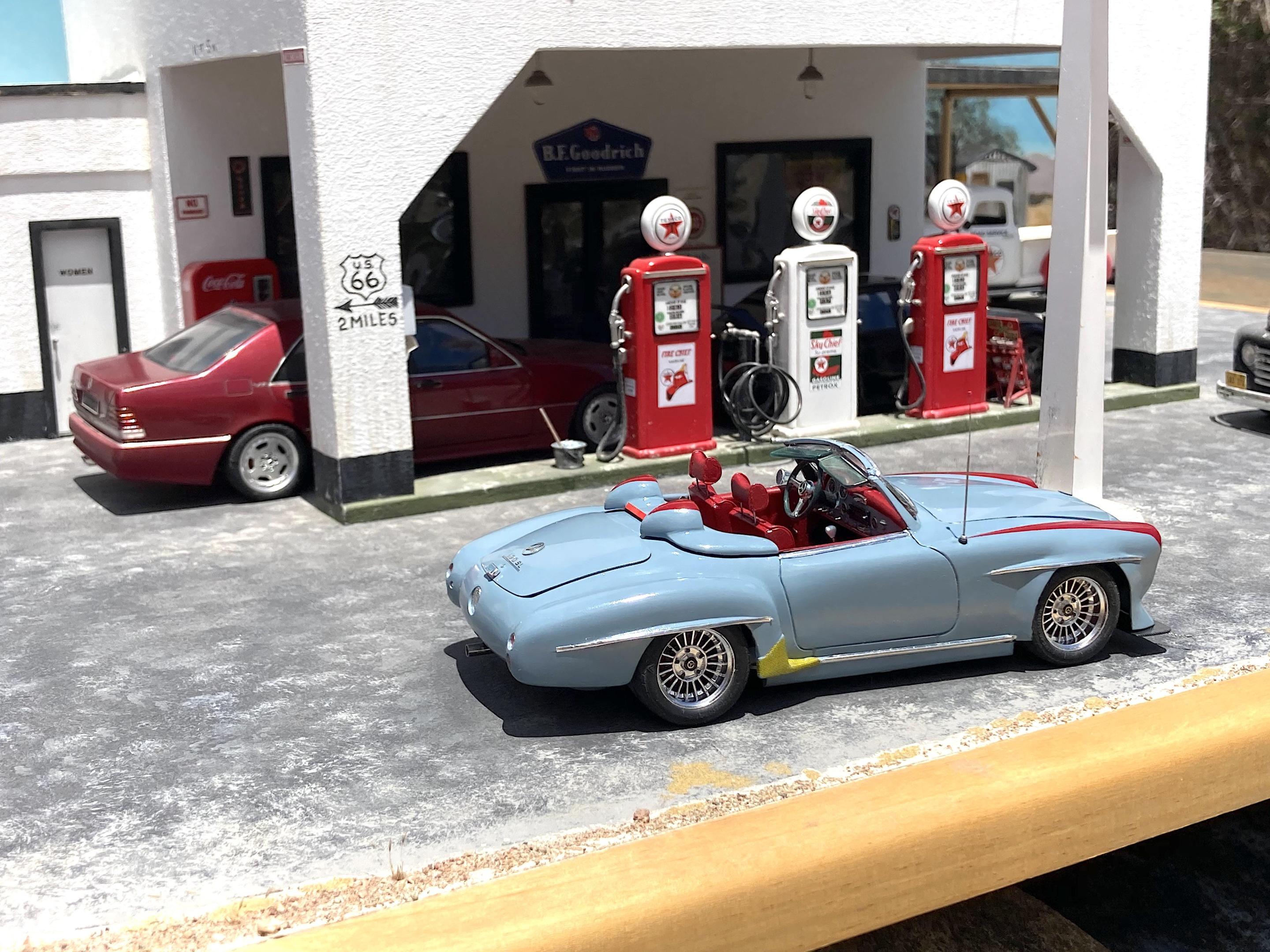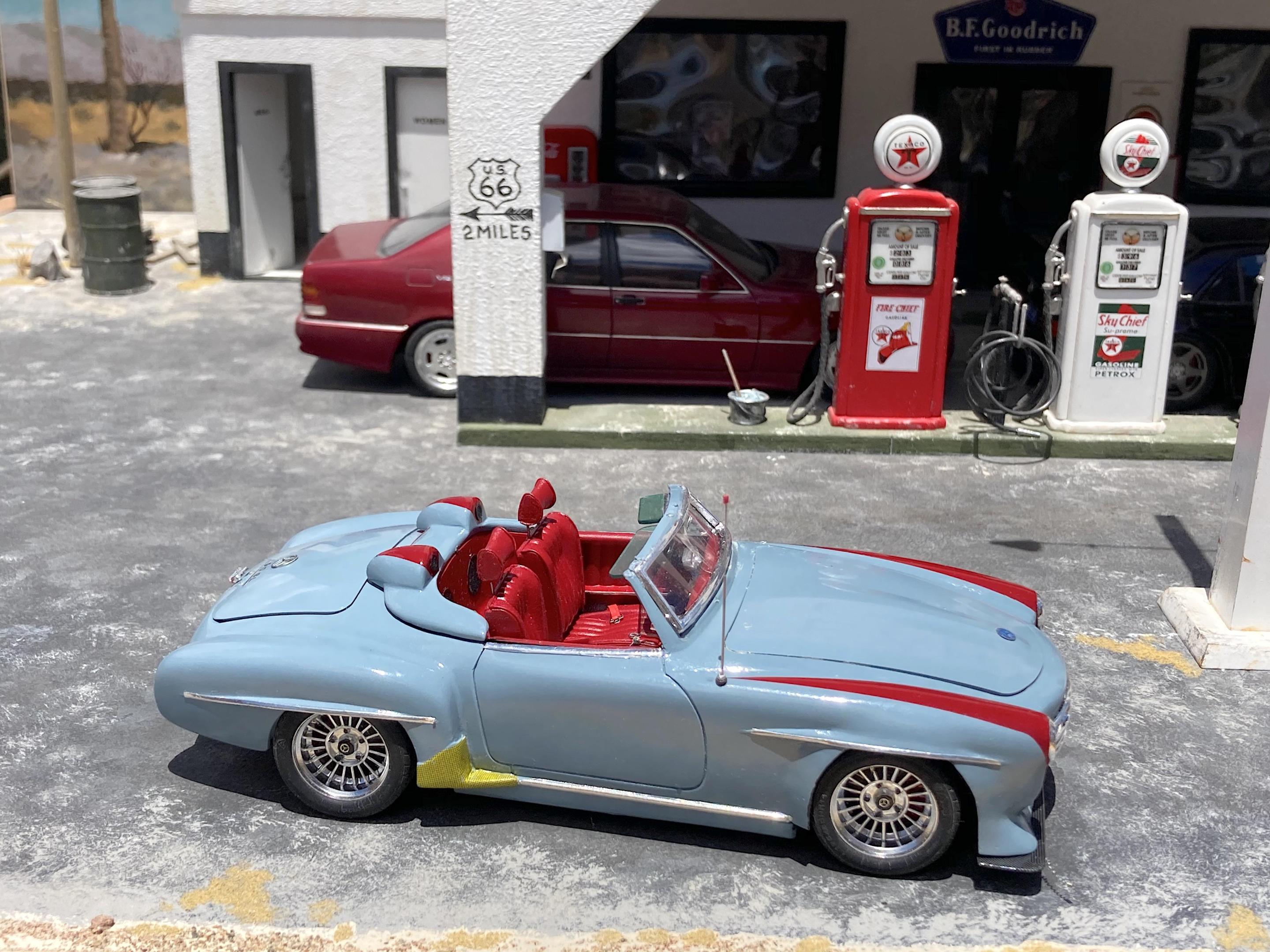 Inspiration for this build: The 2022 Cannonball Run Year of Birth Build Thread WIP: 1961 Mercedes Benz 190SL - Revell with a few modifications Diorama: California Pit Stop, I switch out the cars depending on the car. This time it's like a shake down run with the Mercedes club, stopping somewhere in CA.