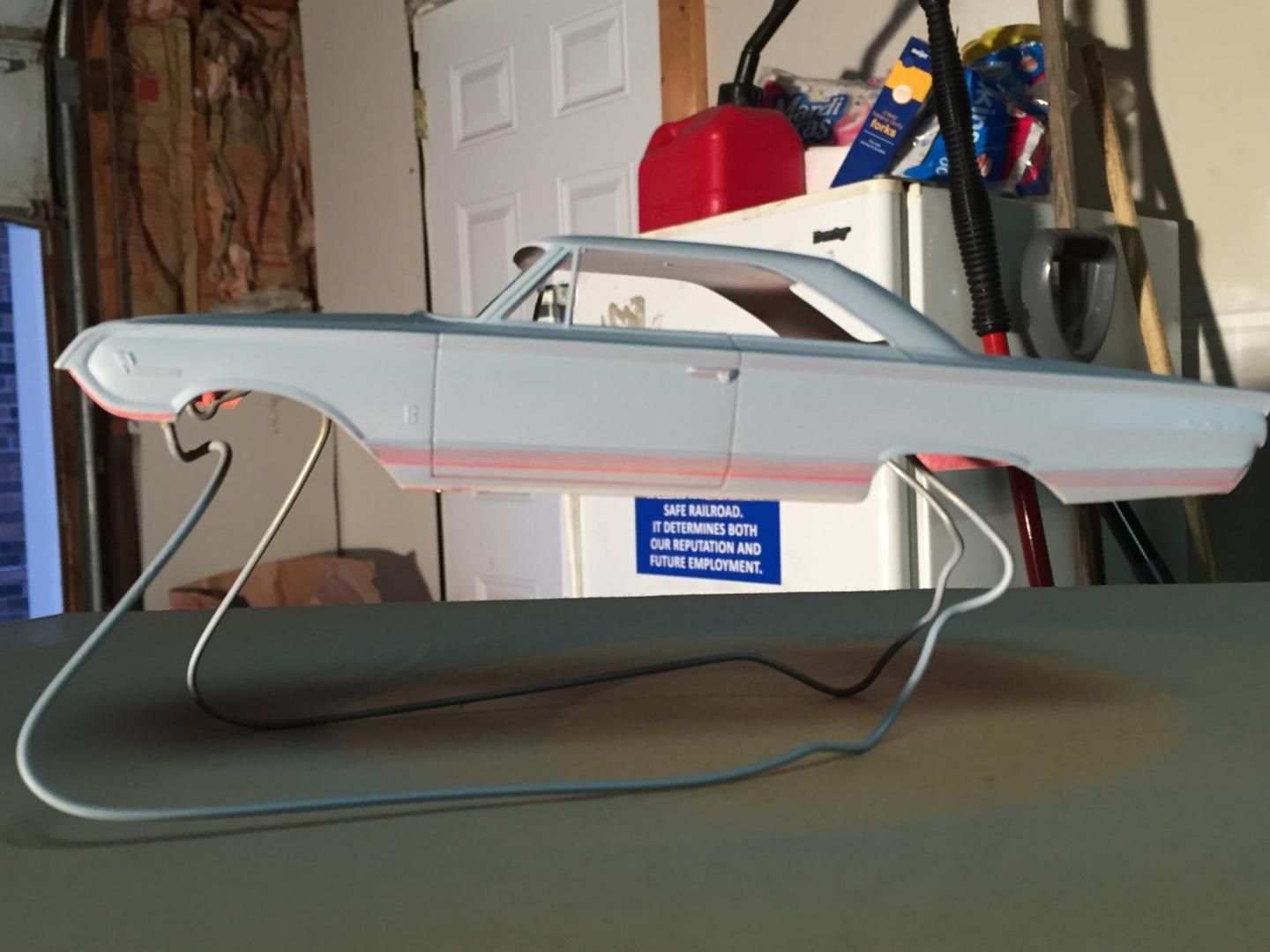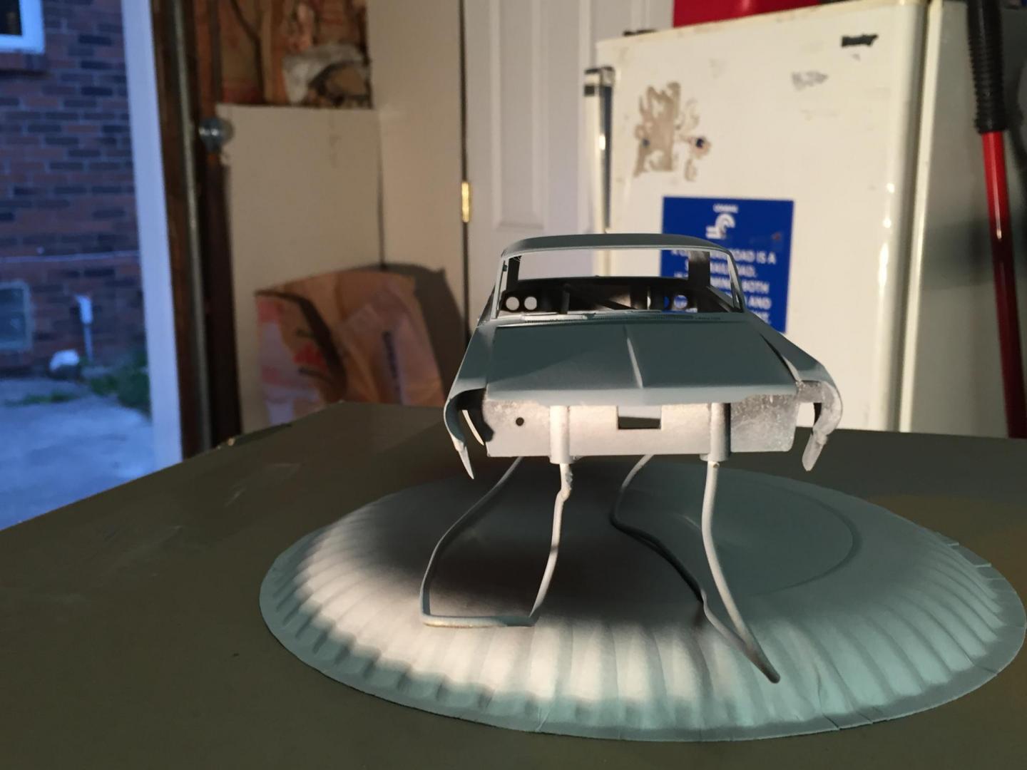I bought this kit back in 2001. I dug this kit outta my mom's garage a couple weeks ago. I had originally painted it with a Testors Red and didn't like how it looked. It spent some time in the purple pond (you may begin to see a trend here) and I stripped and sanded it all down. I sprayed it with Duplicolor Primer/Sealer and will sand it down tomorrow and spray the second coat. In currently undecided on what color I should do this car in! I've been researching it like crazy and just can't choose one. Hopefully I'll figure that out soon.