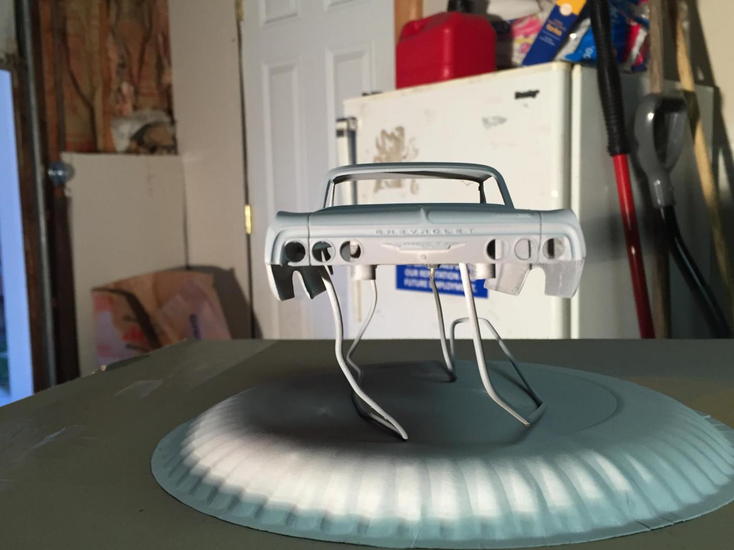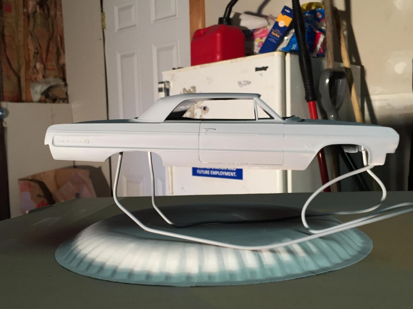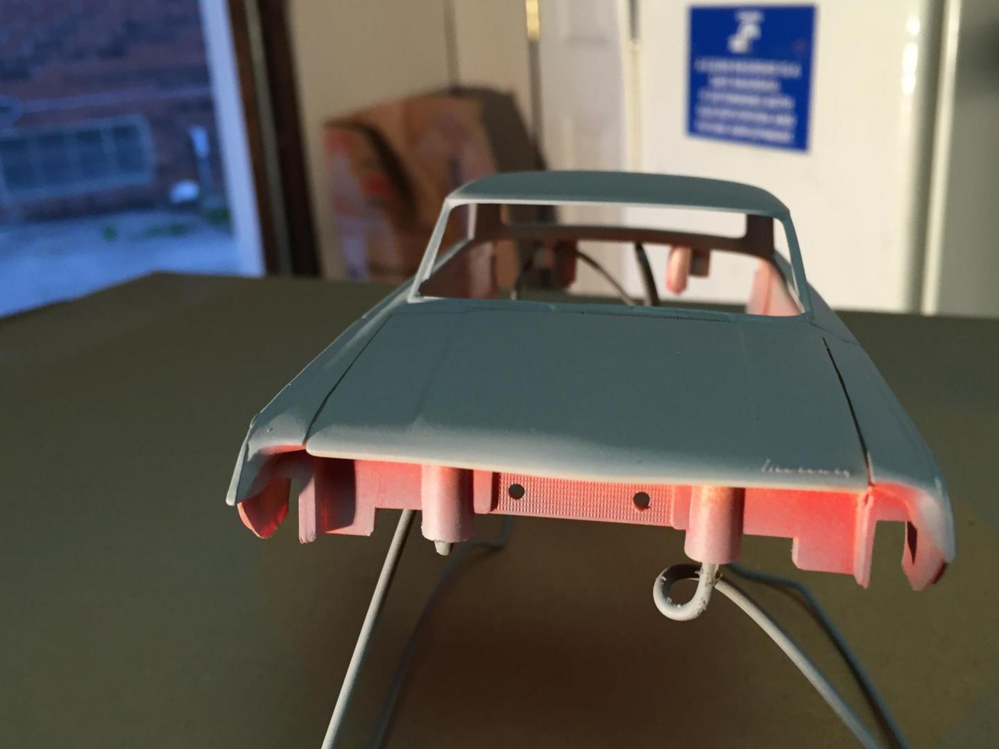 I was almost finished with the paint on this car and made some pretty dumb mistakes. This was the first car I chose since getting back into the hobby. She spent a few days in the purple pond and then Dawn Detergent and water. I've decided to spray Duplicolor Primer/Sealer to hopefully ensure that I don't have ant issues from the previous work. I'll sand her down tomorrow and shoot the second coat. Then it'll be time for Duplicolor Universal Black! I'm posting from my iPhone and it isn't very friendly with the text box and adding attachments. Here's some before and after and then after the strip down pictures. After those are photos with the new primer.