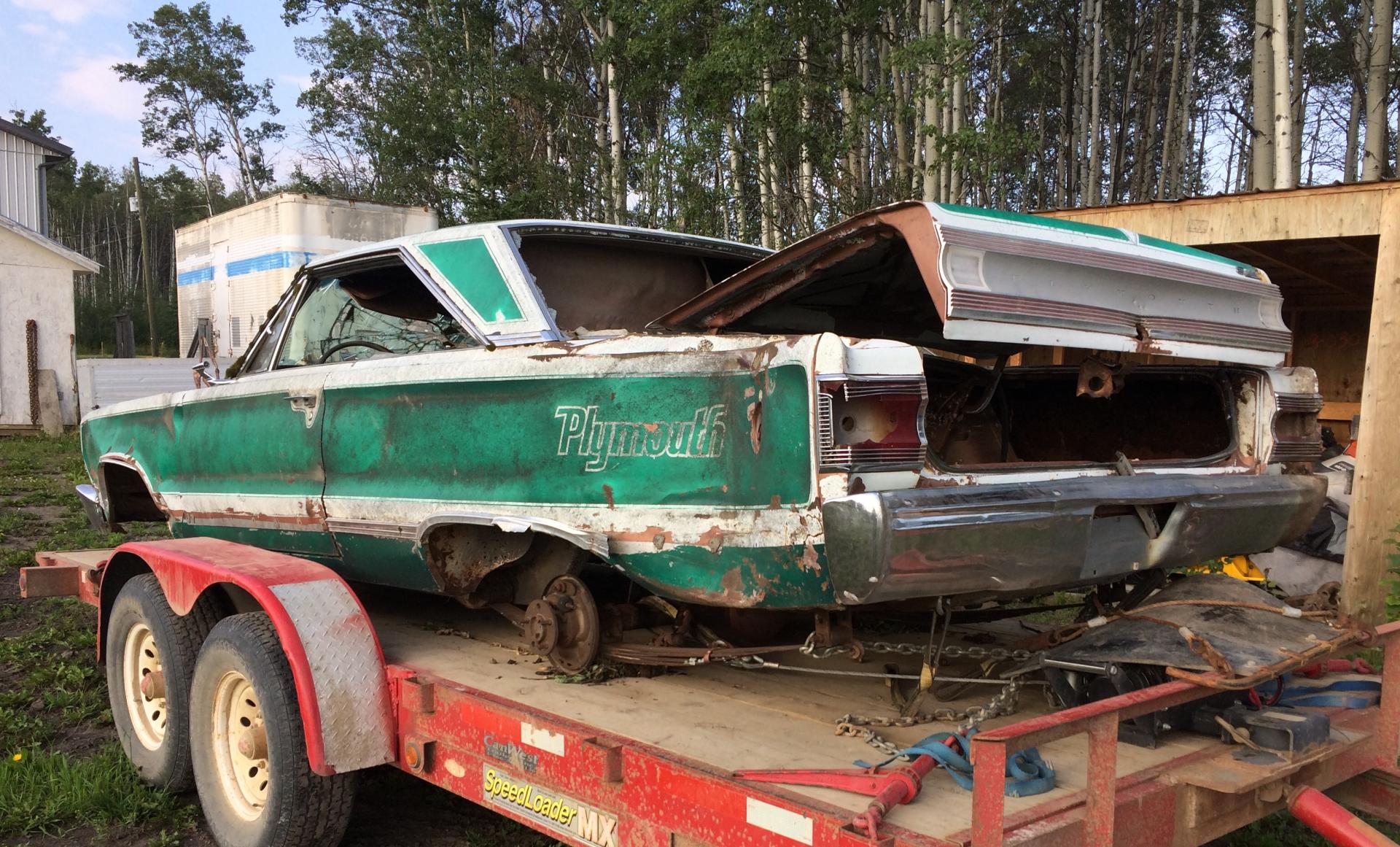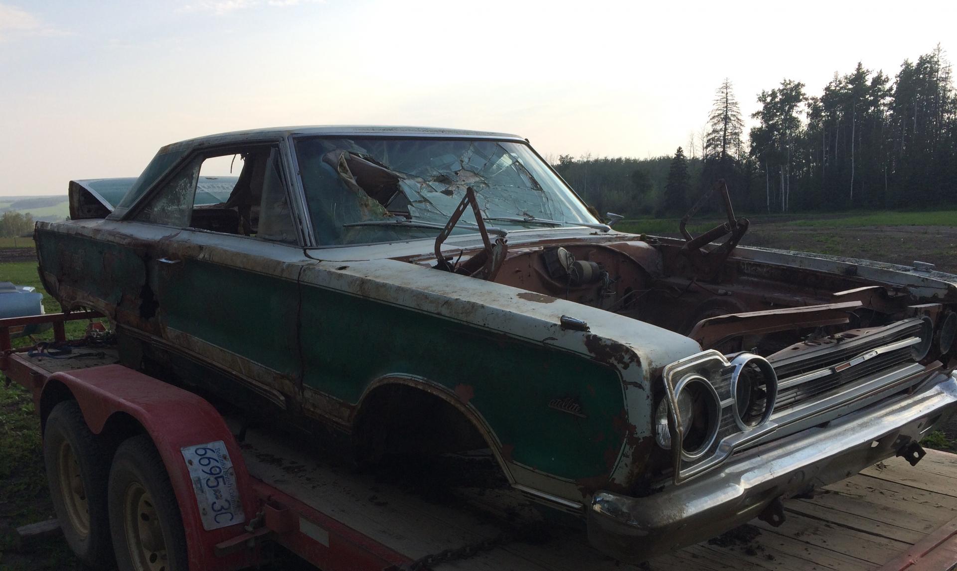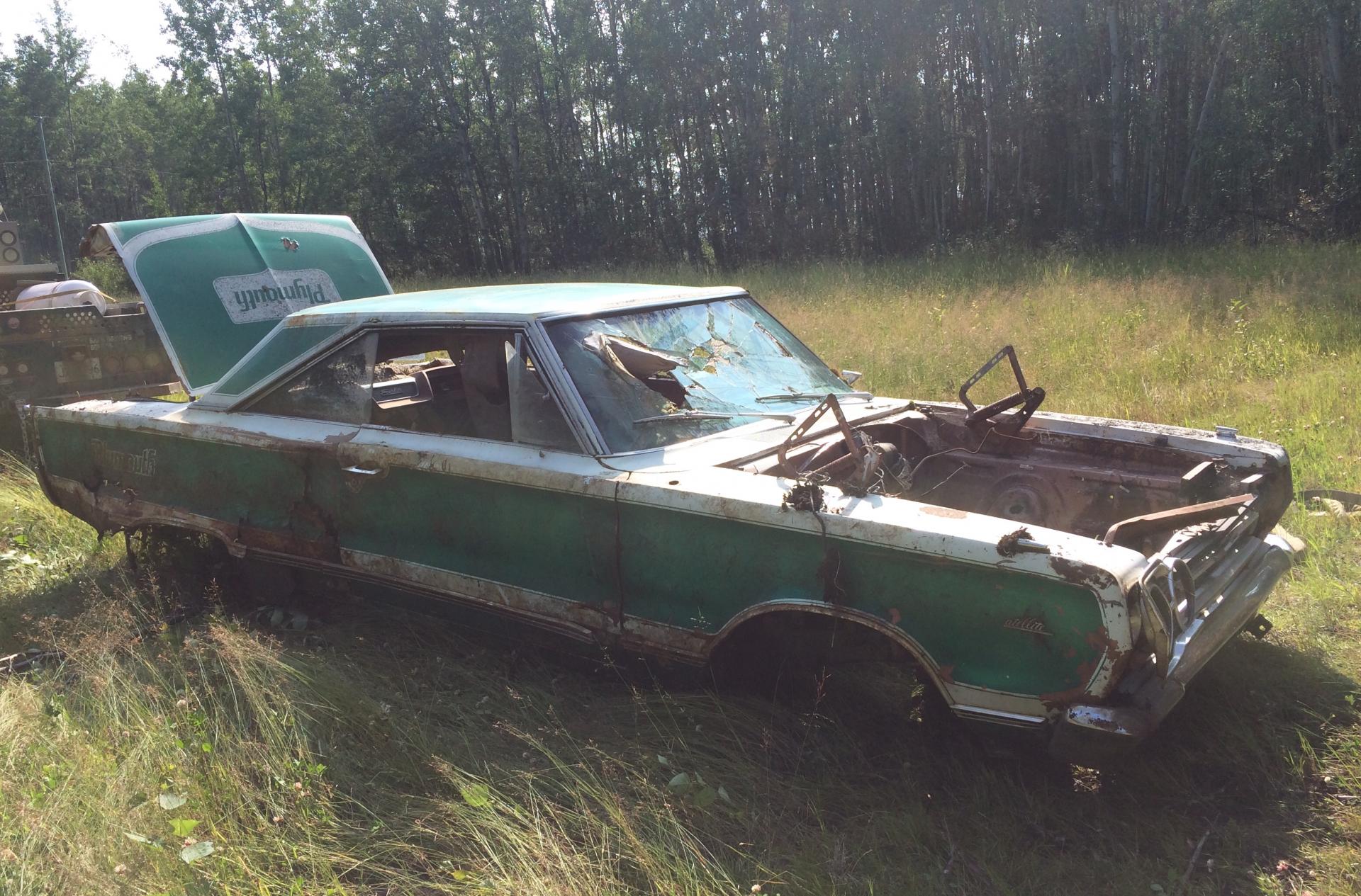 Today I got the 1967ish Plymouth satellite for $50. I have now fulfilled a dream of mine to own a 60s mopar muscle car and I am crazy happy!!!!!!! I will be posting some pics of the car on a local drag race Facebook group in on to see if anyone can identify the car so I can get some more info on it and try and learn some history on it. Unfortunately the hood was used as a trailer for behind a quad/snowmobile. Mid you have any question I will do my best to try and answer them. the car will be called the Satellite that fell out of orbit.