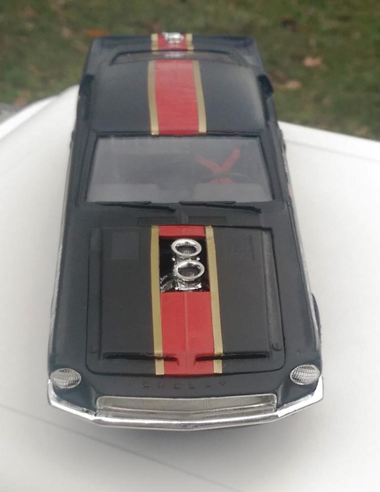 My latest is a black 1968 Mustang GT-500 Drag car. It’s an older AMT kit and I found it to be a bit challenging. It took me about 2 months to finish this one as I put it down many times because it frustrated me. I made the drag version of the car and put the larger engine in it. I could never get the drag exhaust to fit properly and since I had worked on the car for so long and was so far along I simply did not put an exhaust on it in favor of tossing the entire model in the trash. The sponsor stickers on the side came from other kits, such as the AMT Lowboy and the Revell Peterbilt 359 Conventional. I found the gold strips in an old model kit of the Titanic that my father gave me a long time ago. I have a trailer that I have customized that the car will go on and be towed around by a modified ’65 Chevy I am currently working on. Hopefully I will have that done soon and you guys can get a look at the entire package.