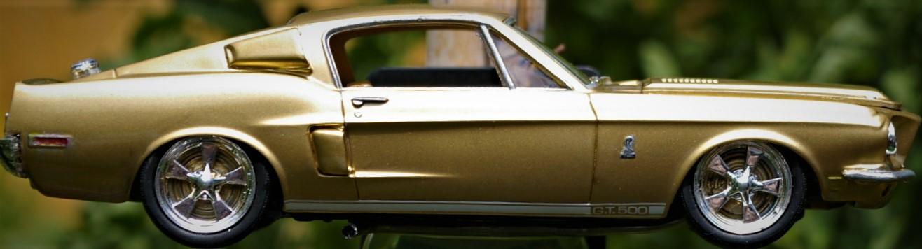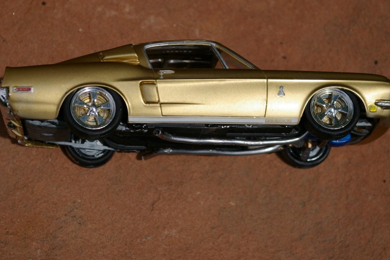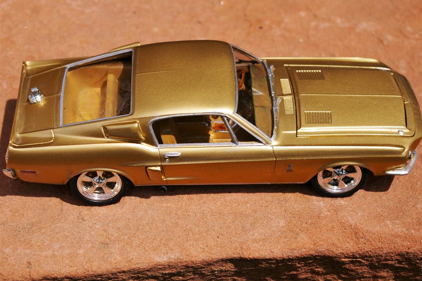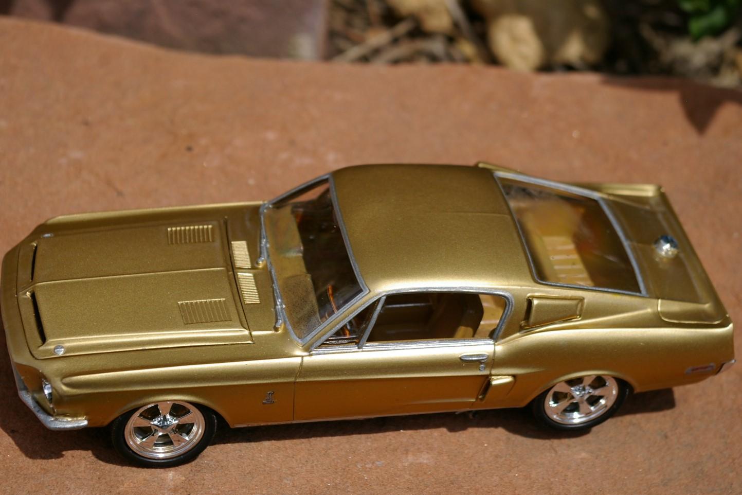 After much hard work, stress, and then more work I finally finished my 68 Shelby Gt 500. First mistake you ask? I let my wife decide how to finish the interior tub...never again! Second mistake? I tried to make this model into a silk purse but forgot how to spin silk! All kidding aside it took about 5 months to finish but that was mostly because of getting my greenhouse going this spring, then rebuilding all of my raised bed garden boxes and bringing in new soil etc and getting the beds ready, then along came the hail storm on the 6th of May that tore up allot of my hard work, fixed that with much gnashing of teeth, hand wringing, and I swear if I had been younger I would have smacked the insurance adjuster in the mouth! Then came camping season, had to replace brakes, tires, wheel bearings, and oh so much more work than I anticipated on my pop up camping trailer. But lo and behold all is well and I finished the car with a flourish a week ago. Anyway, I am going to try to post some pics of it, I can't go through photobucket because for what ever reason I cannot sign in. Please be nice in your criticisms but I can take some punishment as well so I hope you all "like" this car. On to the next project....