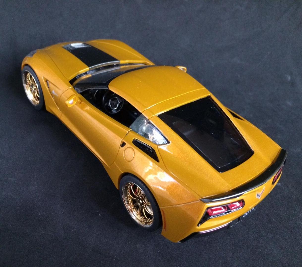 Quickie build last Fall. Yes, it's the SnapTite but looks nice in a case on the shelf. Testors Inca Gold with Tamyia Pearl Clear Pegasus Gold/Chrome Vantage wheels Spent some extra time to get the headlight glass flush, the kit has them recessed. Just need to trim them off the one-piece molded assembly and install from the top instead of the bottom.