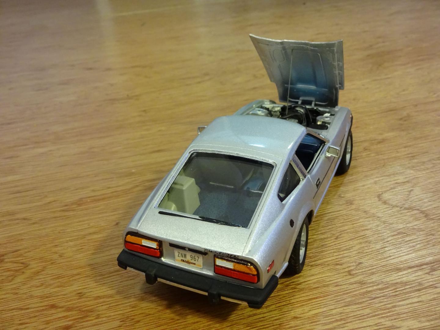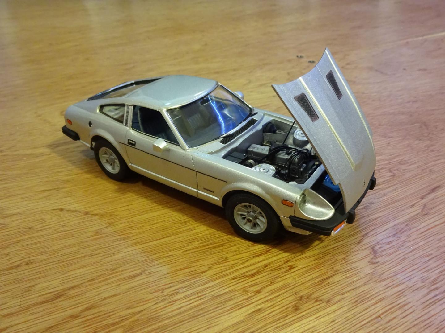 This project replicates a 280ZX I owned in the early 1990s. It's taken me nearly that long to find all the pieces I needed and get to the point to give it a try. I finished this in late 2017, a little too long ago to qualify as a "last year" build. Body: Scratchbuilding non-turbo vents is beyond me at this point, as is cutting out and adapting the vents from the Tamiya glue bomb I scored for parts. I puttied over the Turbo vents and made decals from photos of the real thing. Filling in the T-tops was easier than I expected, though the areas near the windows could be a bit neater. Wheels came from the Tamiya kit. Although they're 1/24th scale, they seem to fit the 1/25th body well. Engine: This Frankenstein consists of Revell 240Z block and trans (because the box-stock 280ZX unit depicts an auto.) The valve cover came from a Fujimi 240ZG, and the non-turbo injection setup came from the previously-mentioned Tamiya glue bomb. Most of the rest is box-stock AMT. Interior - Tamiya seats and various interior details make this a different trim level from the box-stock AMT version. This thing pushed my abilities, or maybe exceeded them! It's amazing how the camera can hide some flaws and magnify others. Still, I'm happy with it. This is a great kit! I bought several of the recent Round2 reissue - one to build as a box-stock Turbo version, another for a distant-future stab at this build if my skills are up to it, and another because Hobby Lobby clearance-priced them to can't-say-no levels.