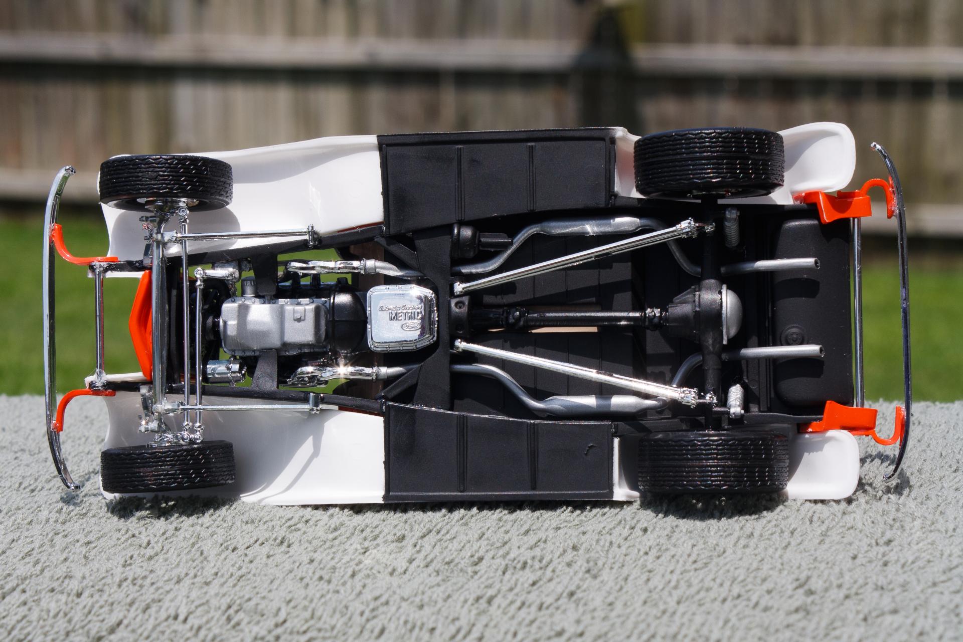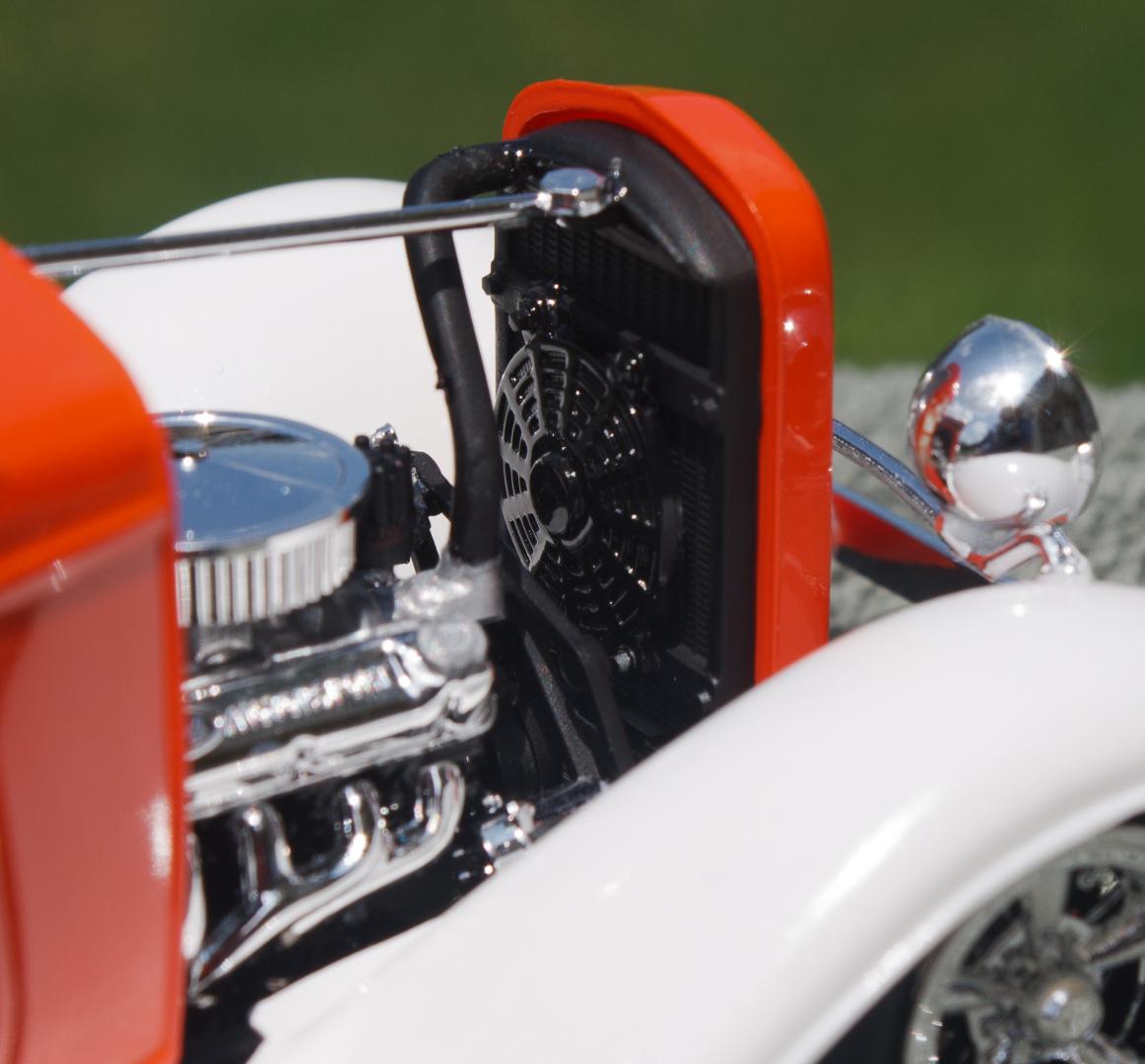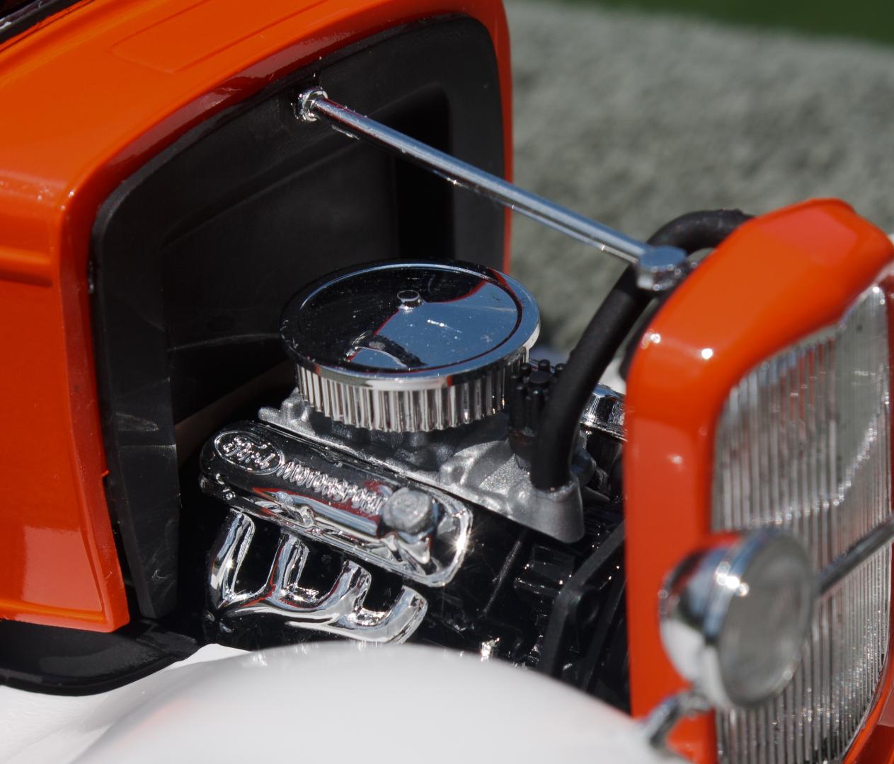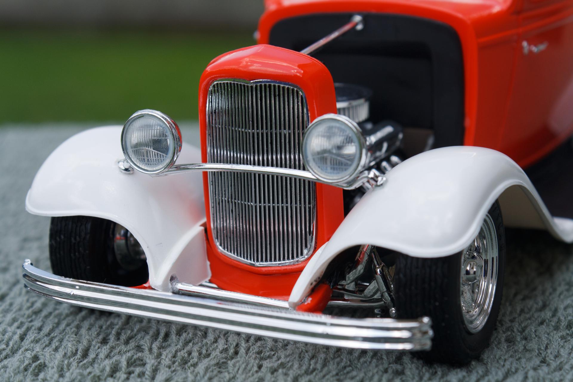 Just finished this '32 Ford 3-Window Coupe kit made by Revell Monogram. The white fenders were a little nod to the Ramblin' Wreck from Georgia Tech, with an orange body instead of gold. Enjoy!